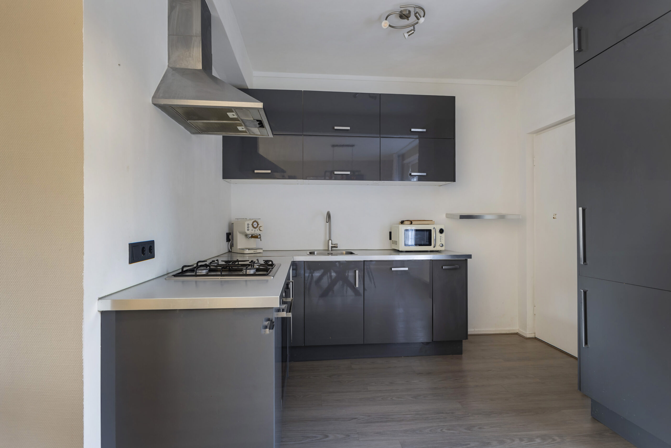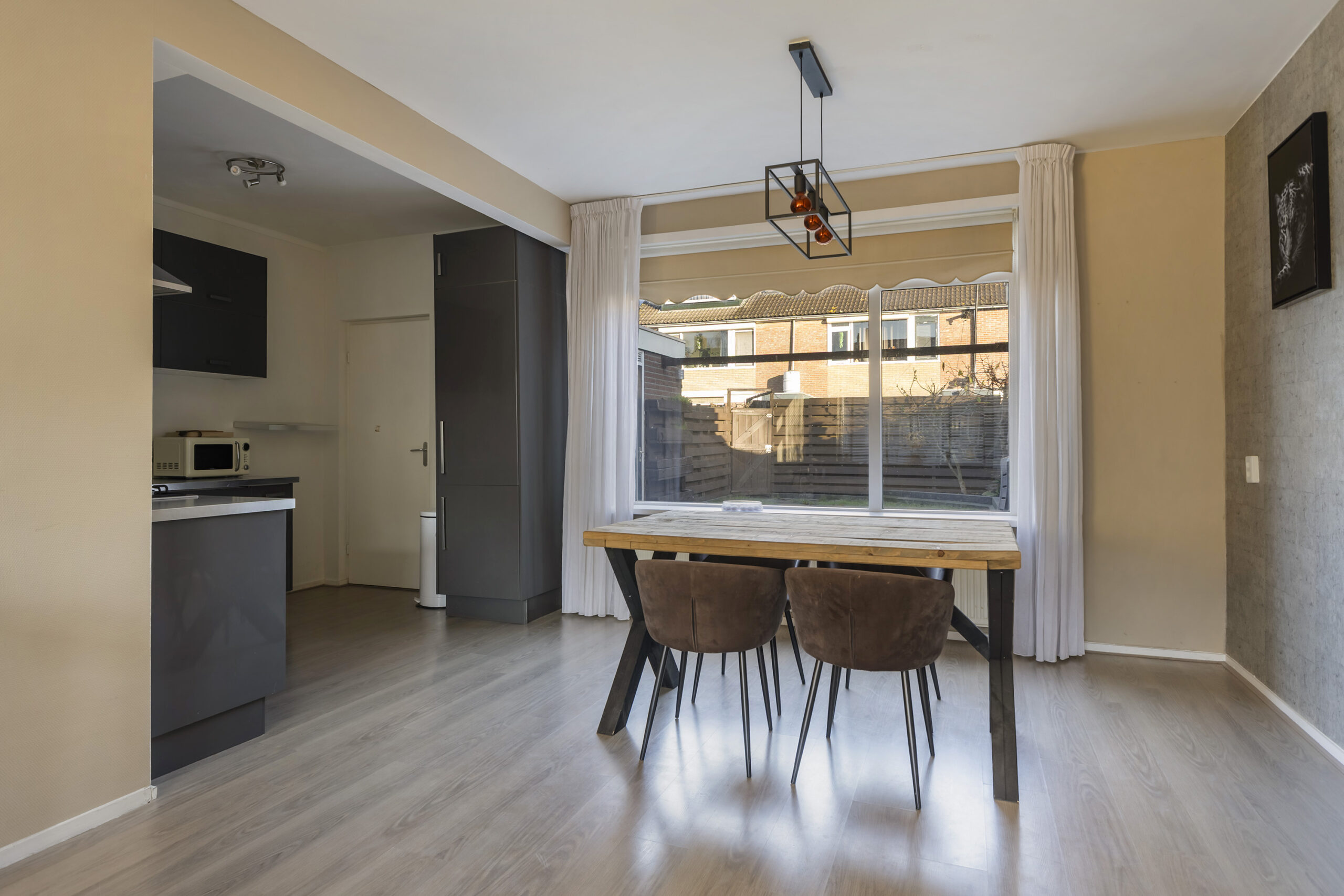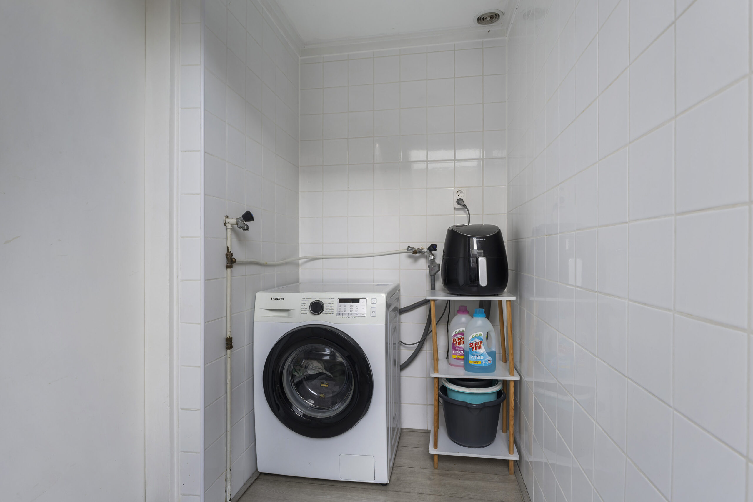 Via de entree kom je in de hal met meterkast, trapkast en een nette toiletruimte met hangend toilet. De lichte woonkamer staat in open verbinding met het eetgedeelte en biedt een prettige leefruimte. De open keuken is praktisch ingericht en voorzien van diverse inbouwapparatuur, waaronder een 4-pits gasstel, afzuigkap en vaatwasser. Aansluitend bevindt zich de bijkeuken met aansluiting voor de wasmachine.