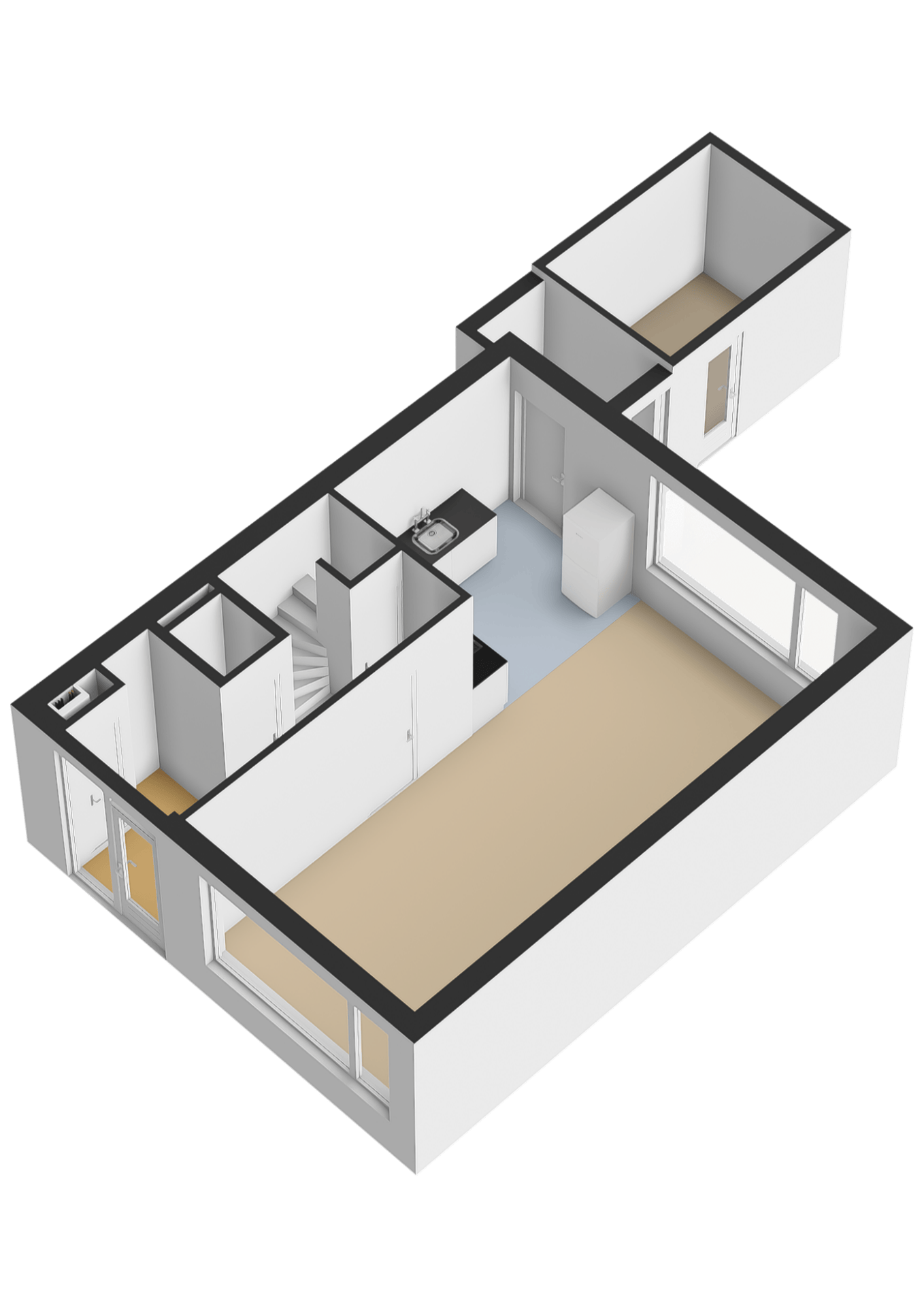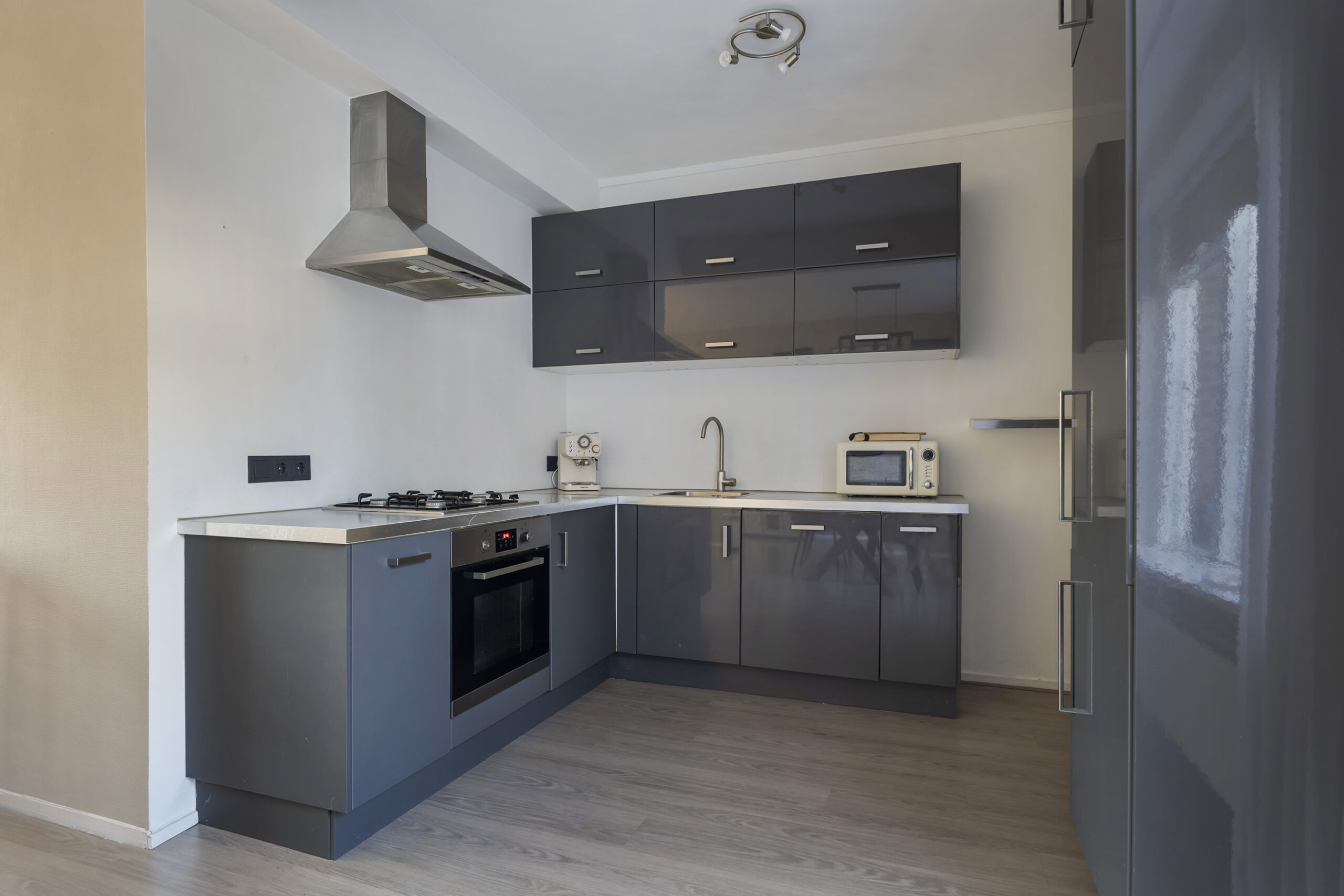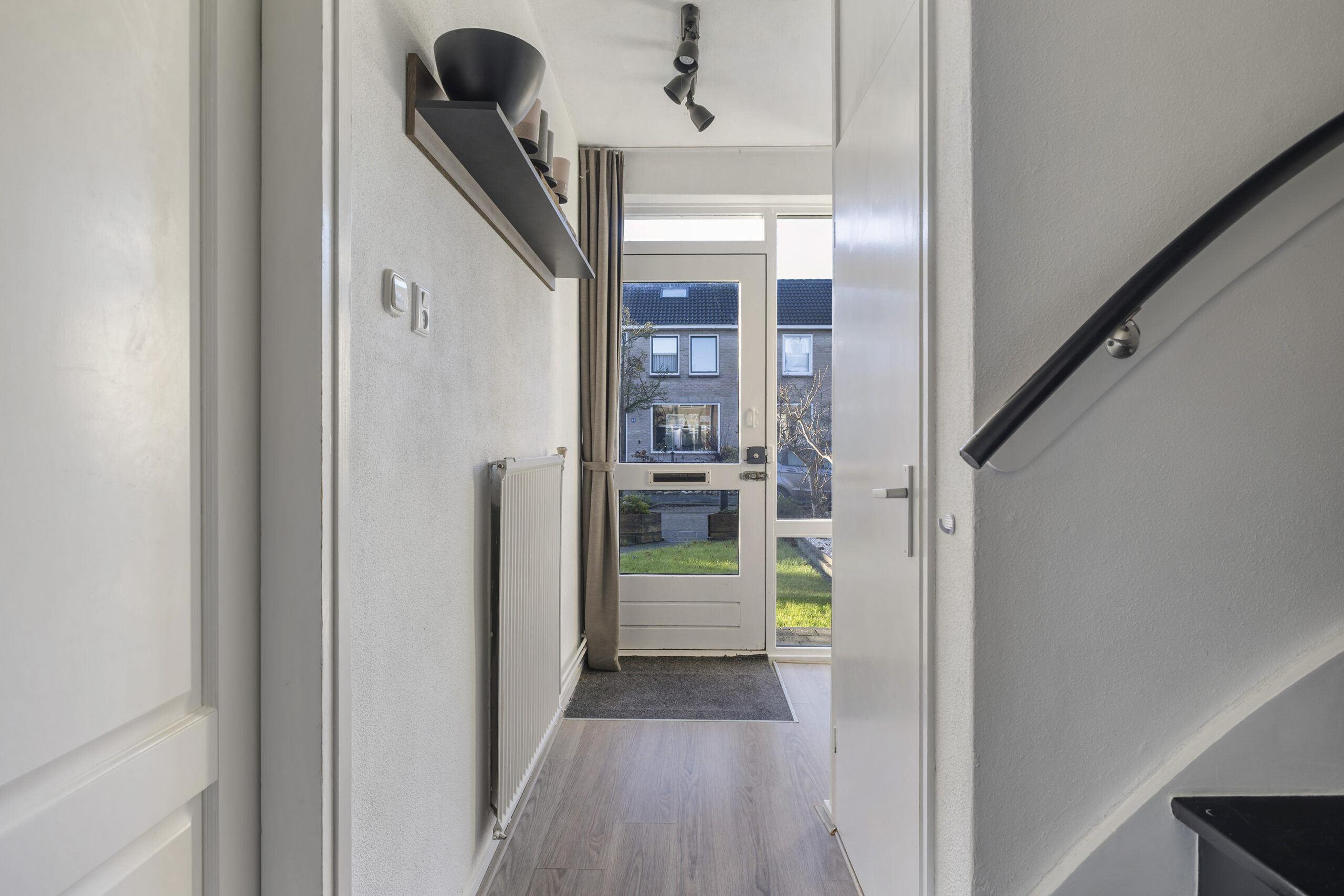 Via de entree kom je in de hal met meterkast, trapkast en een nette toiletruimte met hangend toilet. De lichte woonkamer staat in open verbinding met het eetgedeelte en biedt een prettige leefruimte. De open keuken is praktisch ingericht en voorzien van diverse inbouwapparatuur, waaronder een 4-pits gasstel, afzuigkap en vaatwasser. Aansluitend bevindt zich de bijkeuken met aansluiting voor de wasmachine.