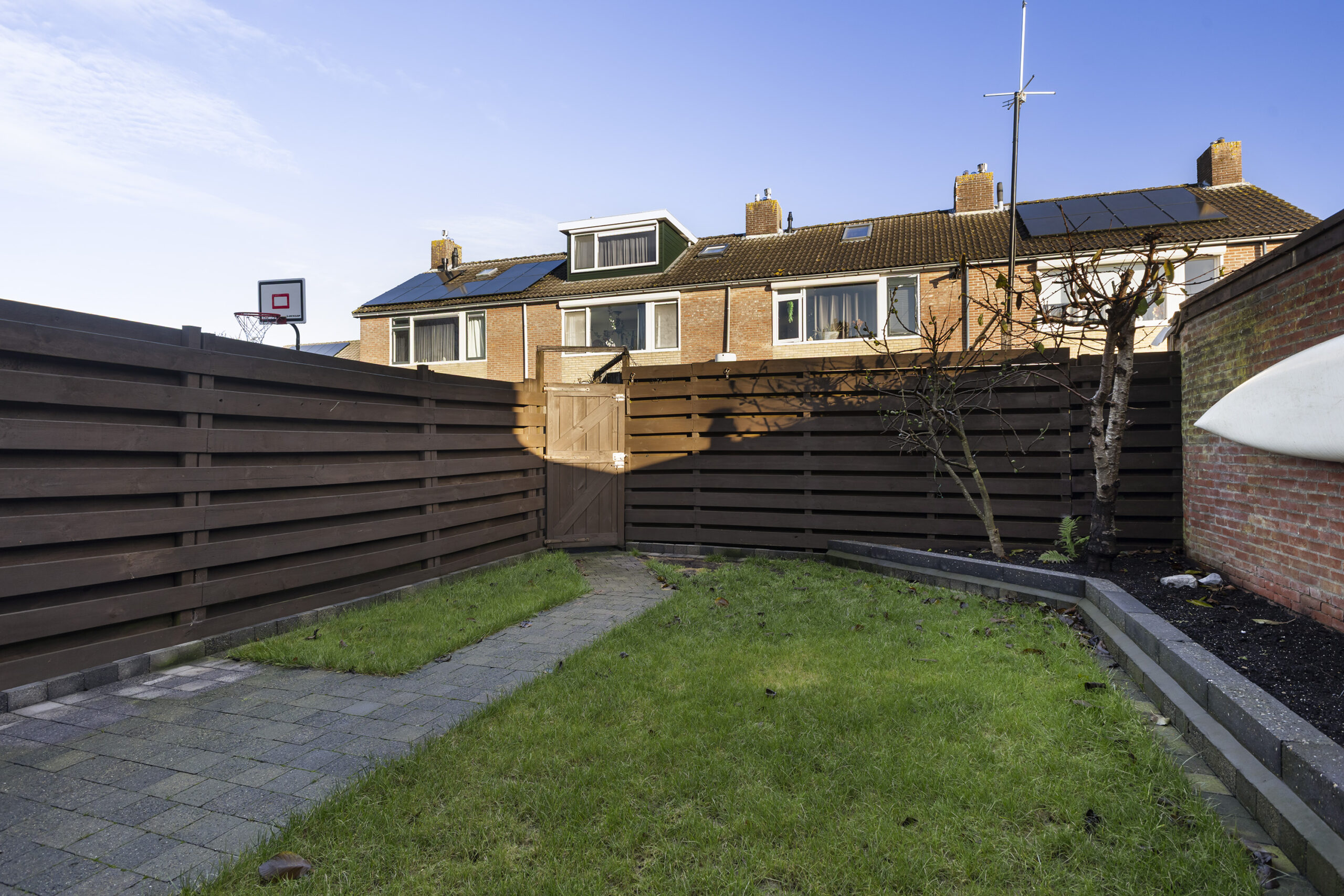 De woning beschikt over een achterom en een aangebouwde stenen berging. Daarnaast is er een buitenkraan aanwezig. Aan de voorzijde op de verdieping zijn de ramen voorzien van screens, wat zorgt voor extra comfort.