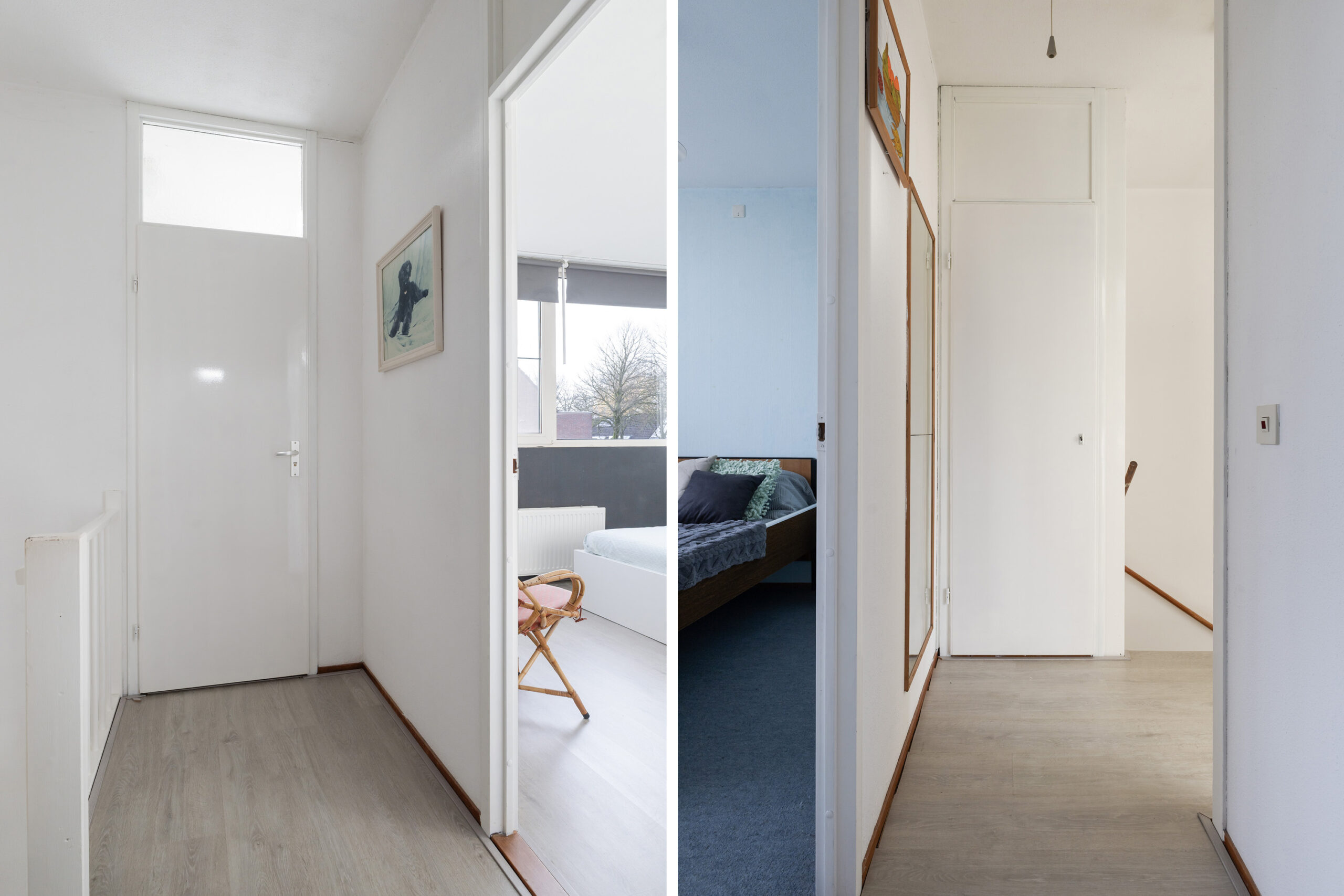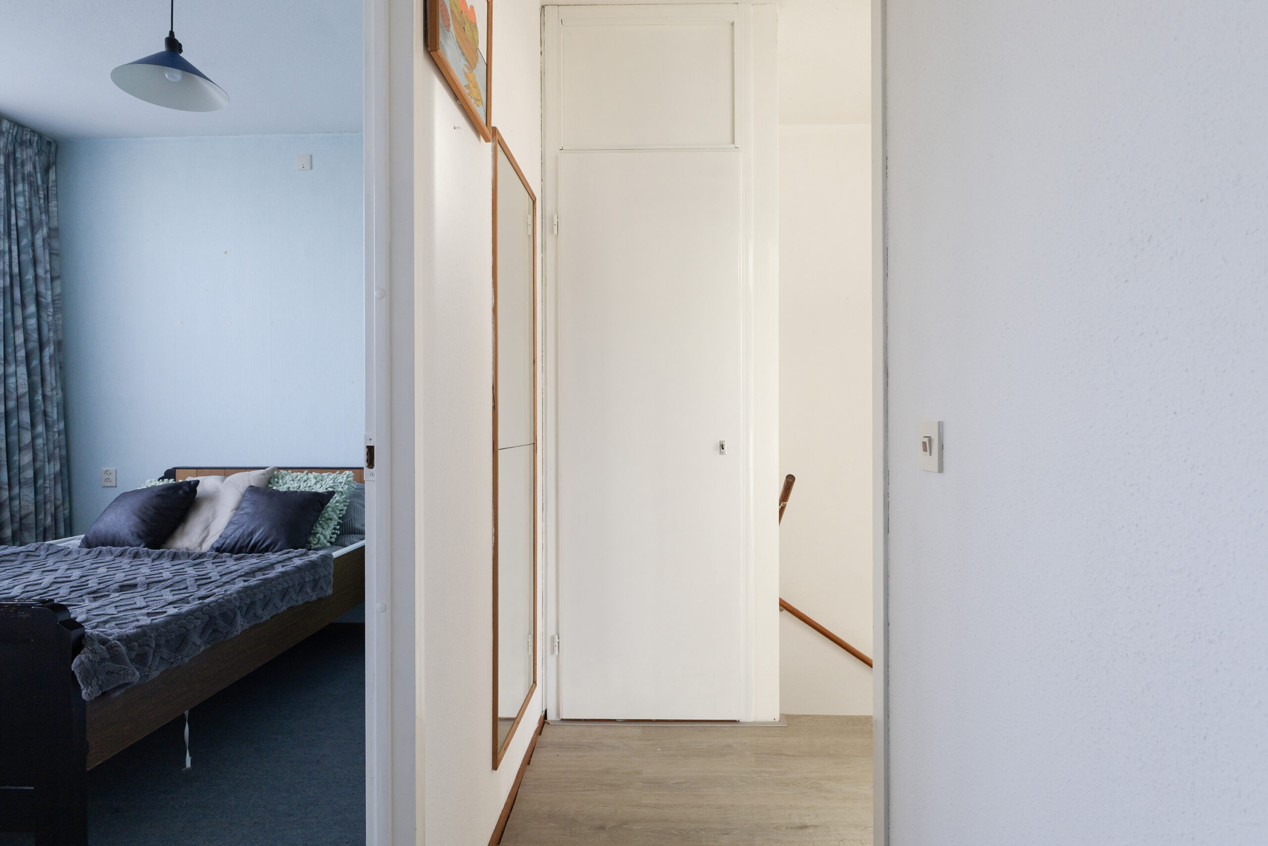 Op de overloop vind je een bergkast en toegang tot de vliering. De badkamer is voorzien van een douche en een wastafelmeubel. Daarnaast zijn er drie slaapkamers, waarvan één met een draaikiepraam en één met toegang tot het balkon.