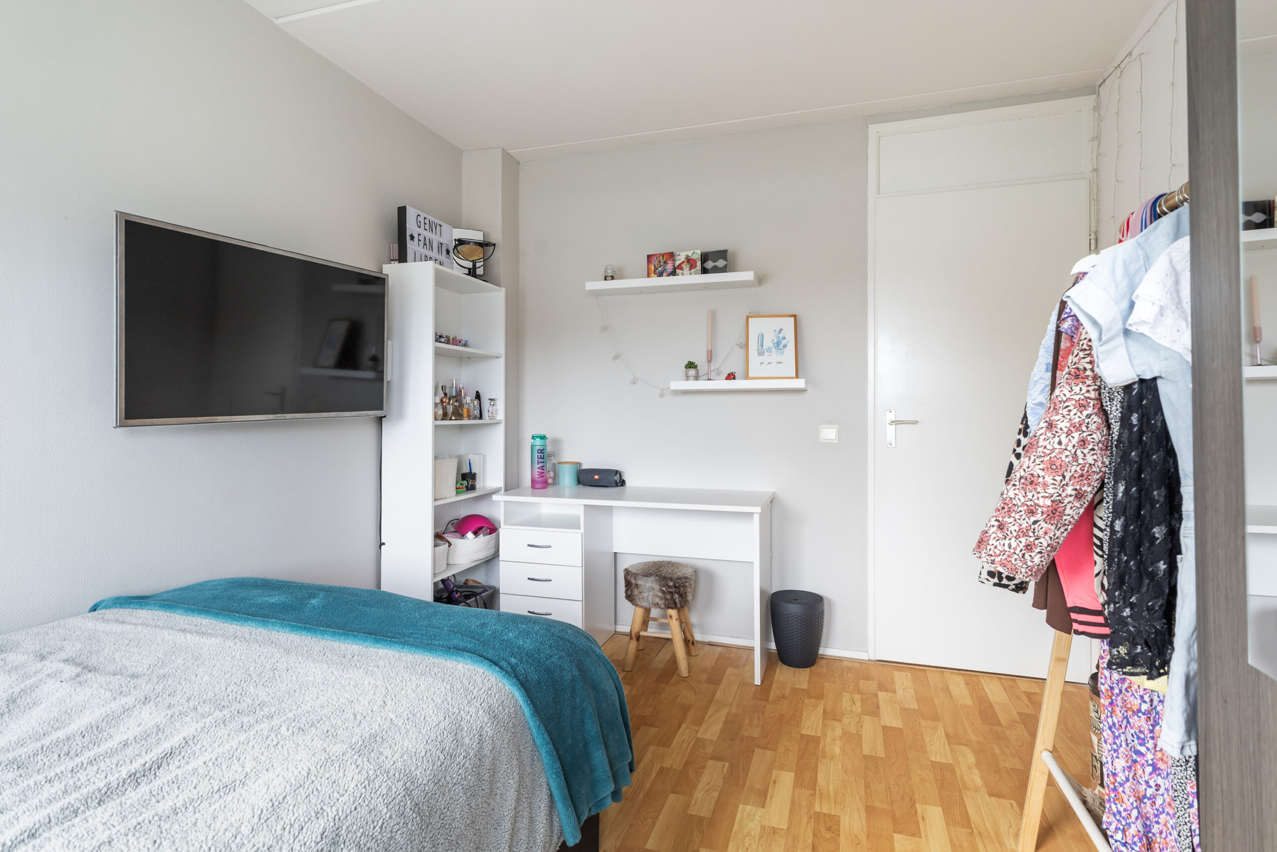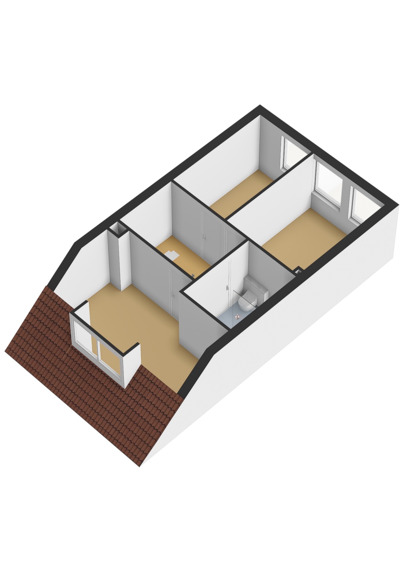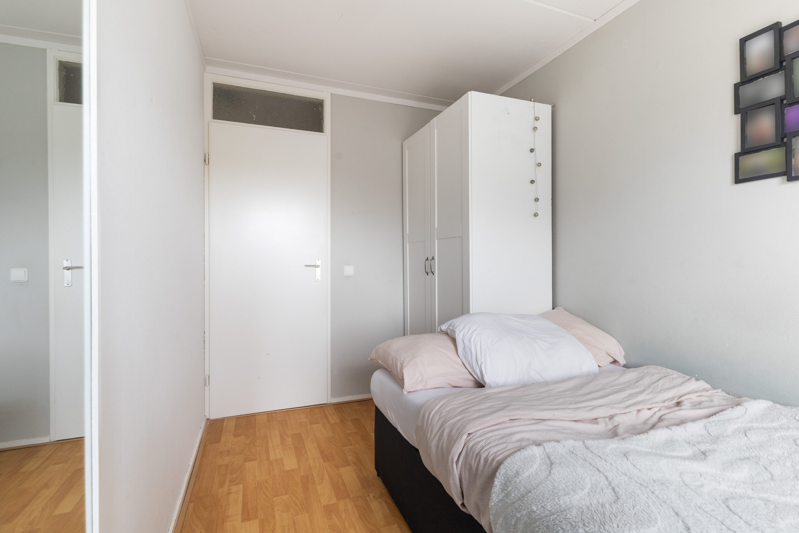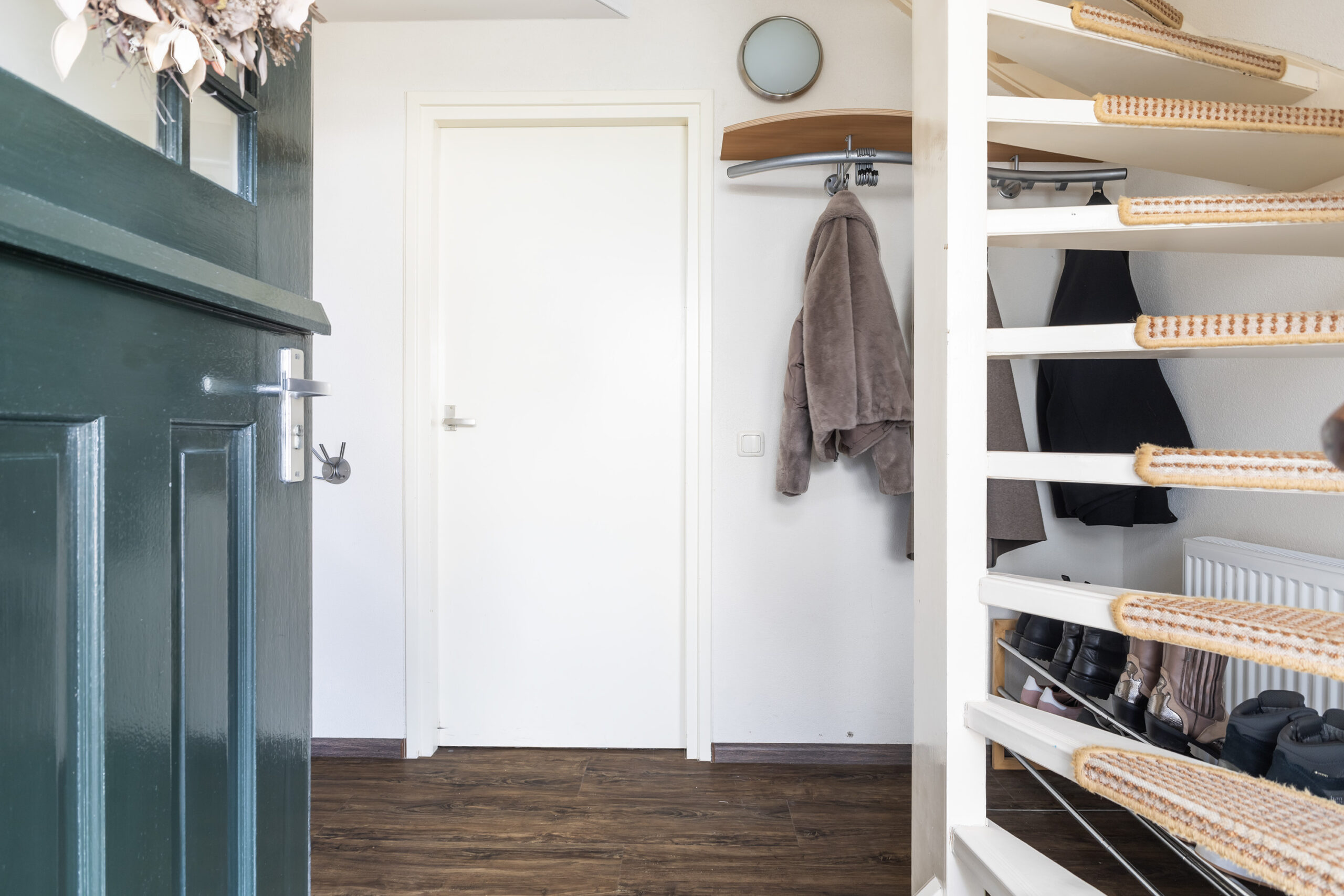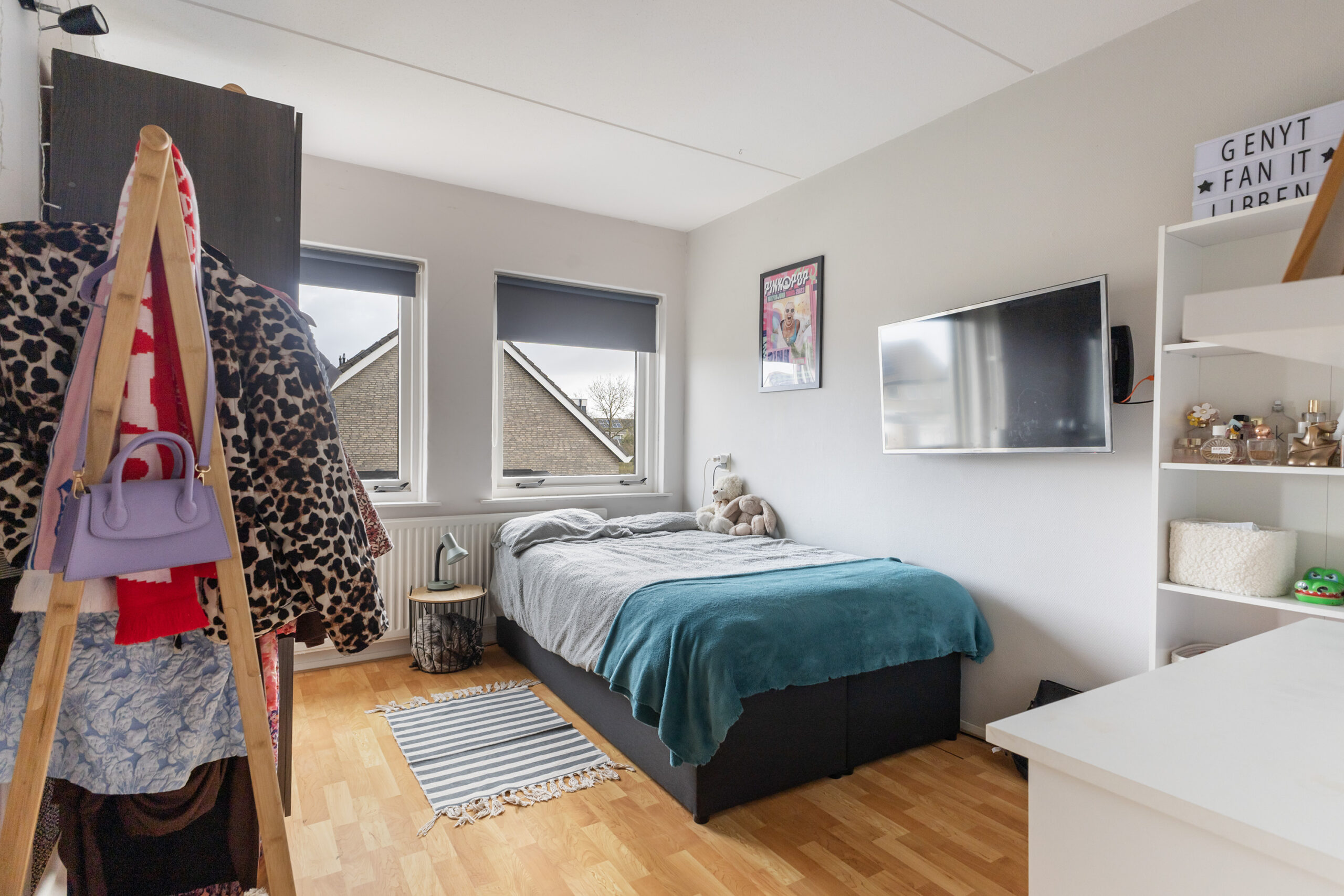 Via een vaste trap bereik je de overloop met toegang tot een praktische bergruimte met cv-opstelling. Hier vind je ook een volwaardige vierde slaapkamer met een vaste kast, airco en een zijraam met screen, waardoor je profiteert van extra comfort.