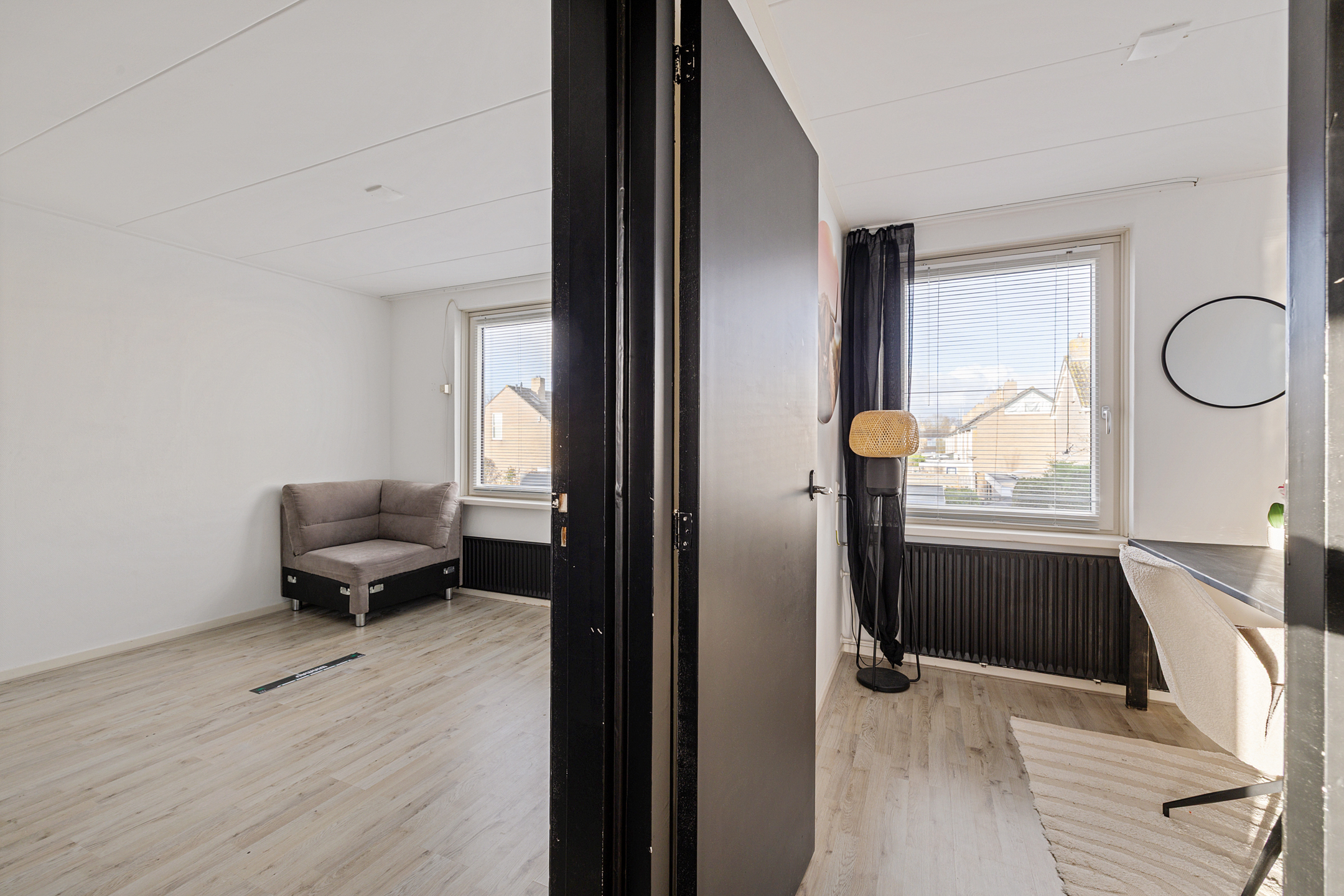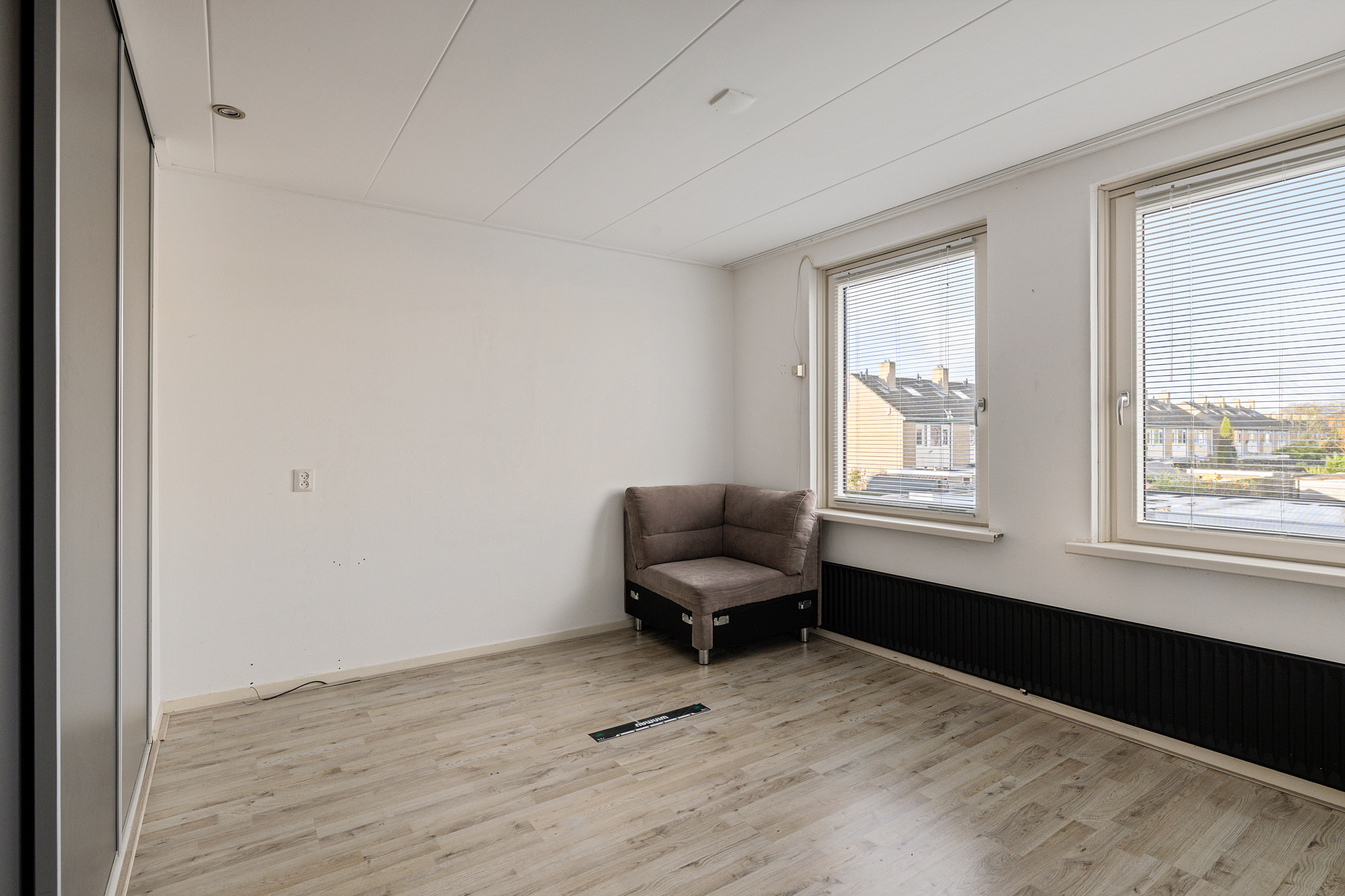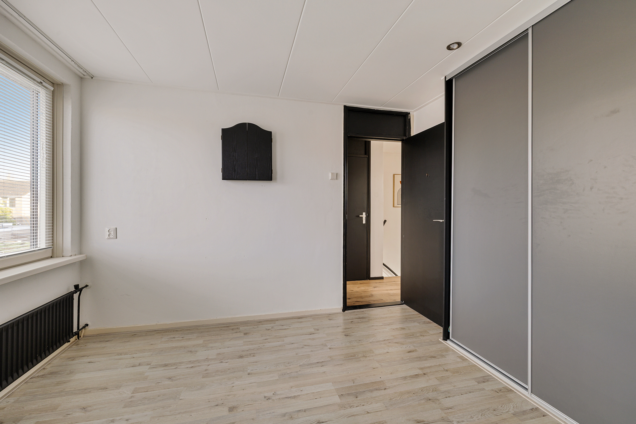 De overloop biedt toegang tot de drie slaapkamers, badkamer een toiletruimte met een staand toilet en vliering. Alle kamers zijn voorzien van kunststof kozijnen met draaikiepramen en horren. Eén van de slaapkamers heeft een vaste kastenwand en een heeft een elektrisch bedienbare screen. De badkamer beschikt over een inloopdouche, wastafelmeubel, design radiator en mechanische ventilatie.