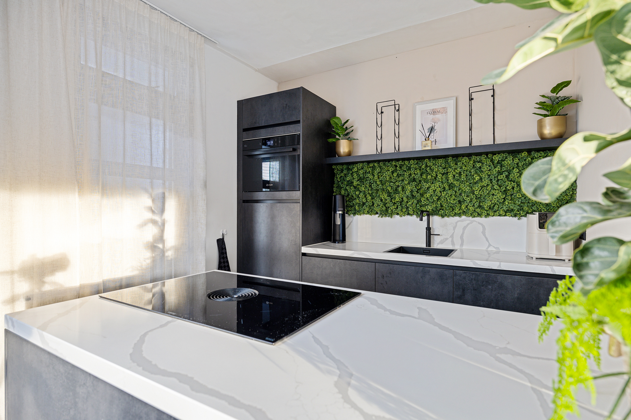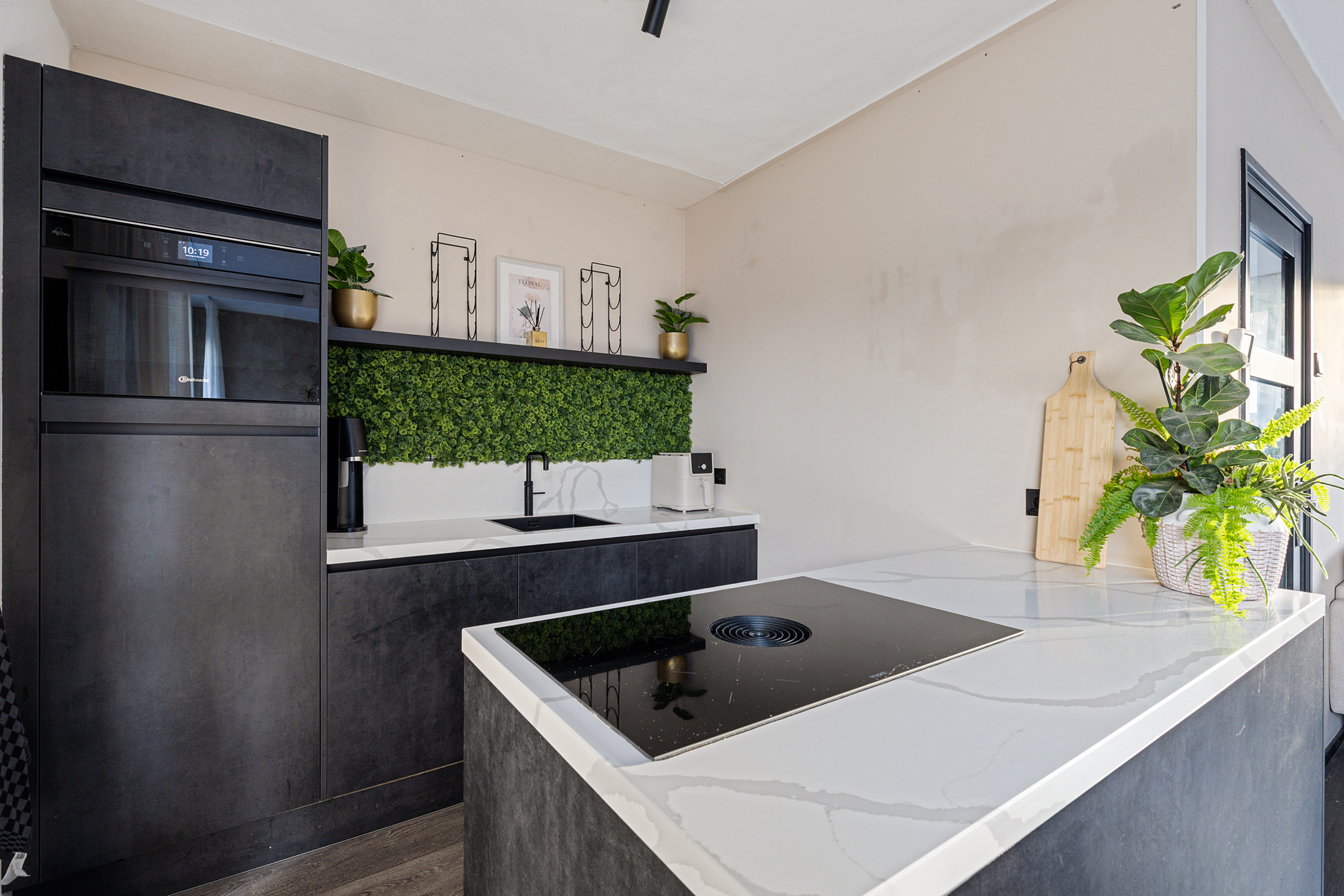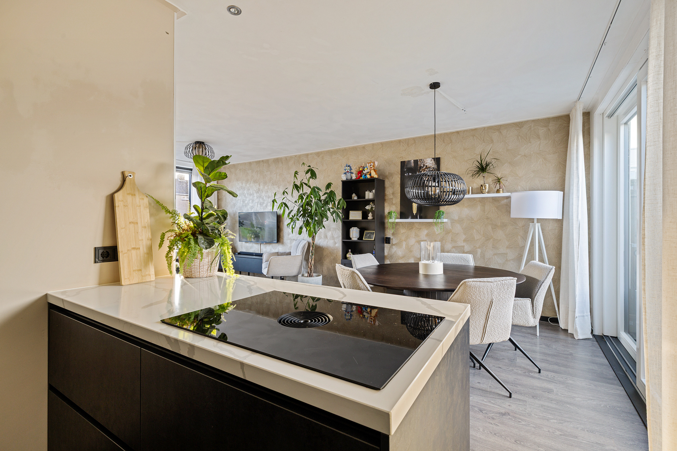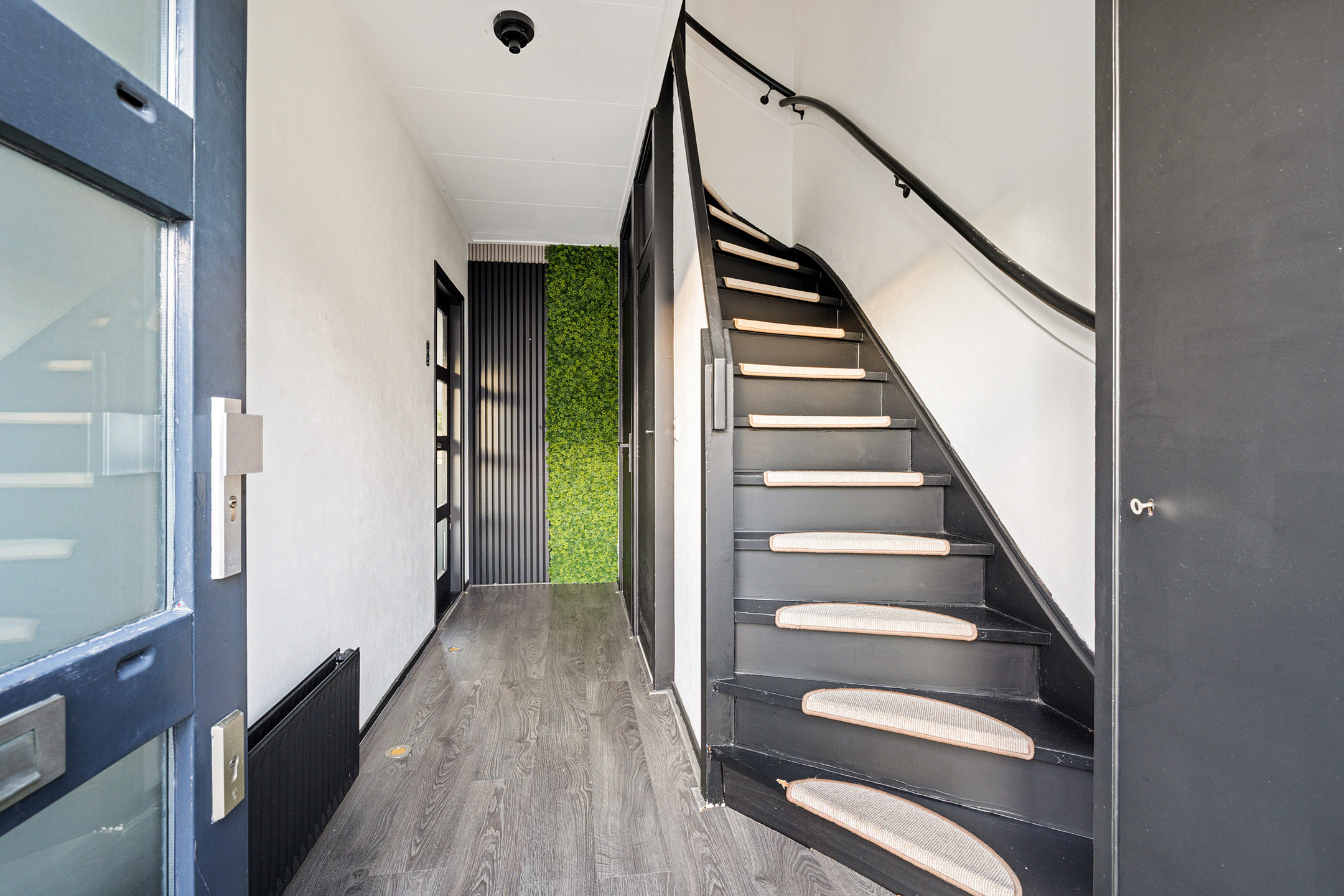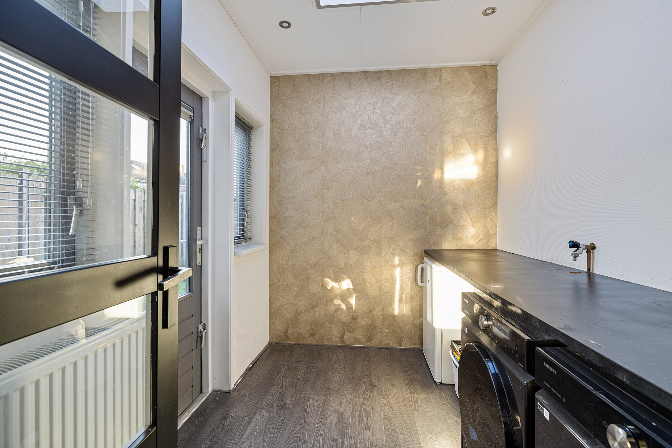 Bij binnenkomst stap je in de hal met meterkast, toiletruimte met hangend toilet en fonteintje, een ruime trapkast en heb je toegang tot de woonkamer en eerste verdieping. De woonkamer heeft veel natuurlijk lichtinval dankzij het grote raam aan de voorzijde en de nieuwe kunststof schuifpui aan de achterzijde. De moderne openkeuken met kookeiland is strak afgewerkt met marmeren werkblad en beschikt over diverse inbouwapparatuur zoals: een 4-pits BORA inductiekookplaat met geïntegreerd afzuigsysteem, combi-oven, koelkast, vaatwasser en Quooker kraan. Aansluitend vind je de bijkeuken met de witgoedaansluiting en toegang tot de tuin.