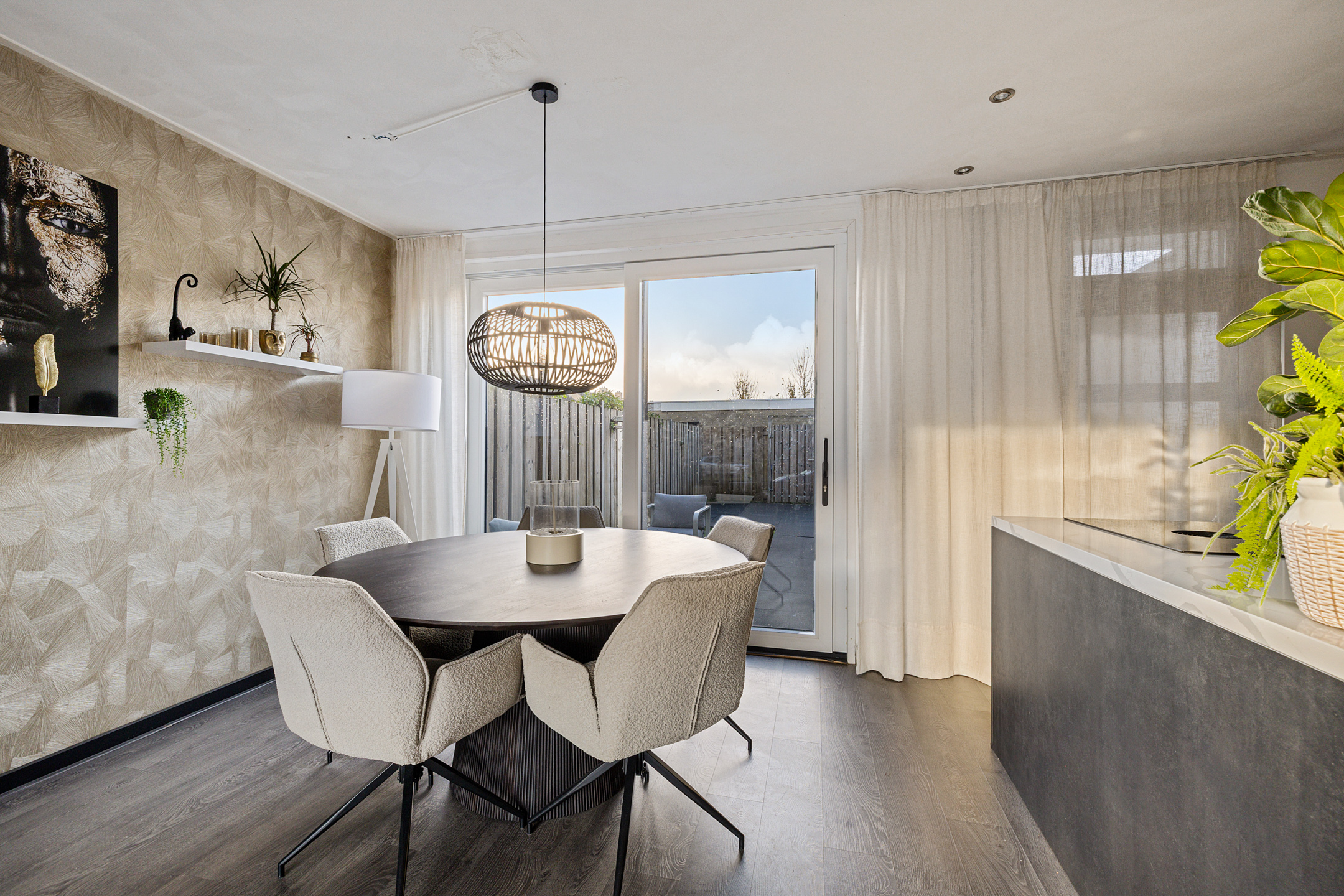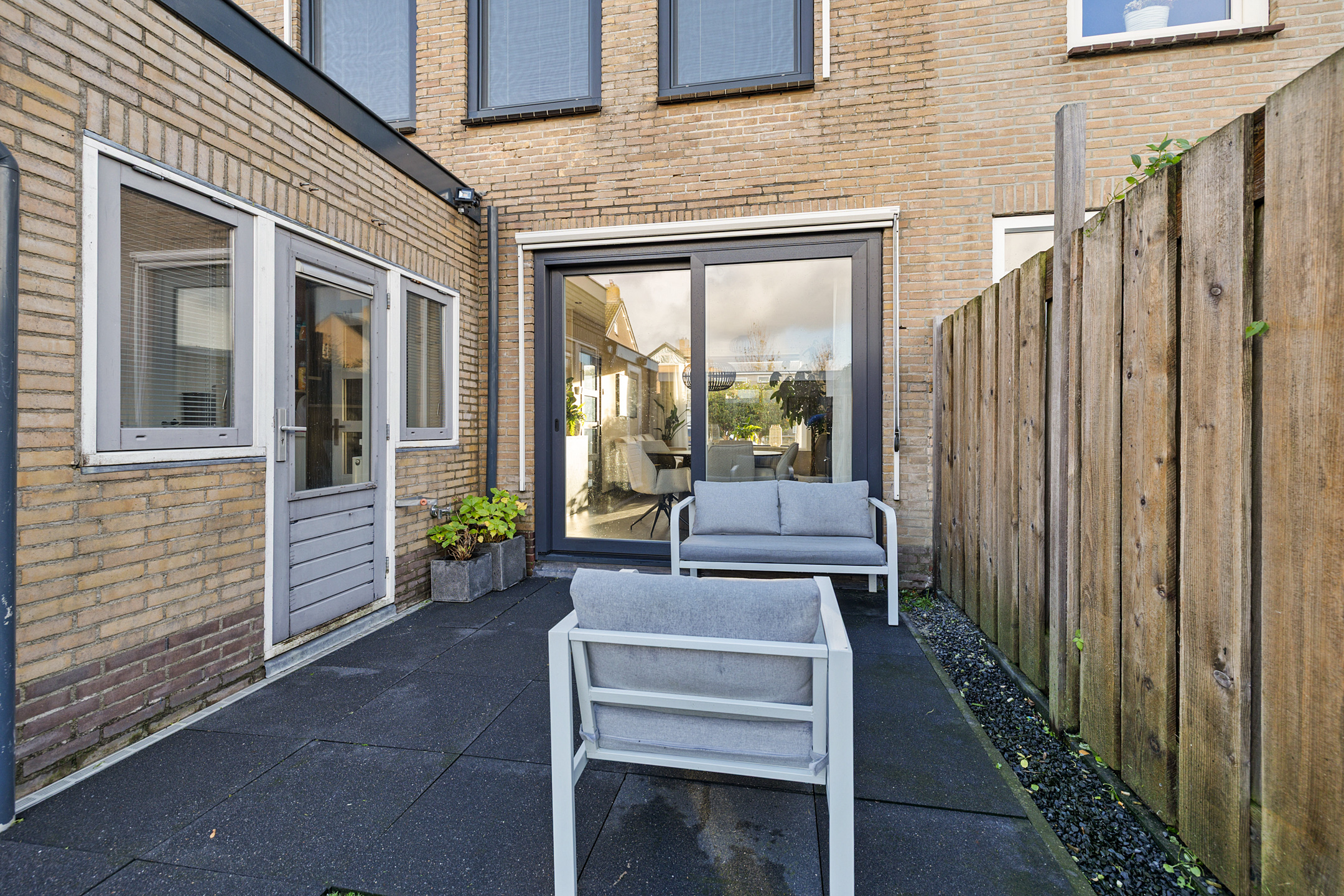 Ben je op zoek naar een instapklare woning op een fijne plek midden in het dorp? Dan is deze sfeervolle tussenwoning in een rustige, kindvriendelijke straat met vrij uitzicht op een groen plantsoen echt iets voor jou. De woning beschikt over energielabel A, 10 zonnepanelen, een moderne open keuken, drie slaapkamers, een nette badkamer, een ruime bijkeuken met lichtkoepel, grote zolderberging en een onderhoudsvriendelijke achtertuin met drainage. Kortom: een huis waar je zó in kunt. Indeling: Begane grond: Bij binnenkomst stap je in de hal met meterkast, toiletruimte met hangend toilet en fonteintje, een ruime trapkast en heb je toegang tot de woonkamer en eerste verdieping. De woonkamer heeft veel natuurlijk lichtinval dankzij het grote raam aan de voorzijde en de nieuwe kunststof schuifpui aan de achterzijde. De moderne openkeuken met kookeiland is strak afgewerkt met marmeren werkblad en beschikt over diverse inbouwapparatuur zoals: een 4-pits BORA inductiekookplaat met geïntegreerd afzuigsysteem, combi-oven, koelkast, vaatwasser en Quooker kraan. Aansluitend vind je de bijkeuken met de witgoedaansluiting en toegang tot de tuin.…