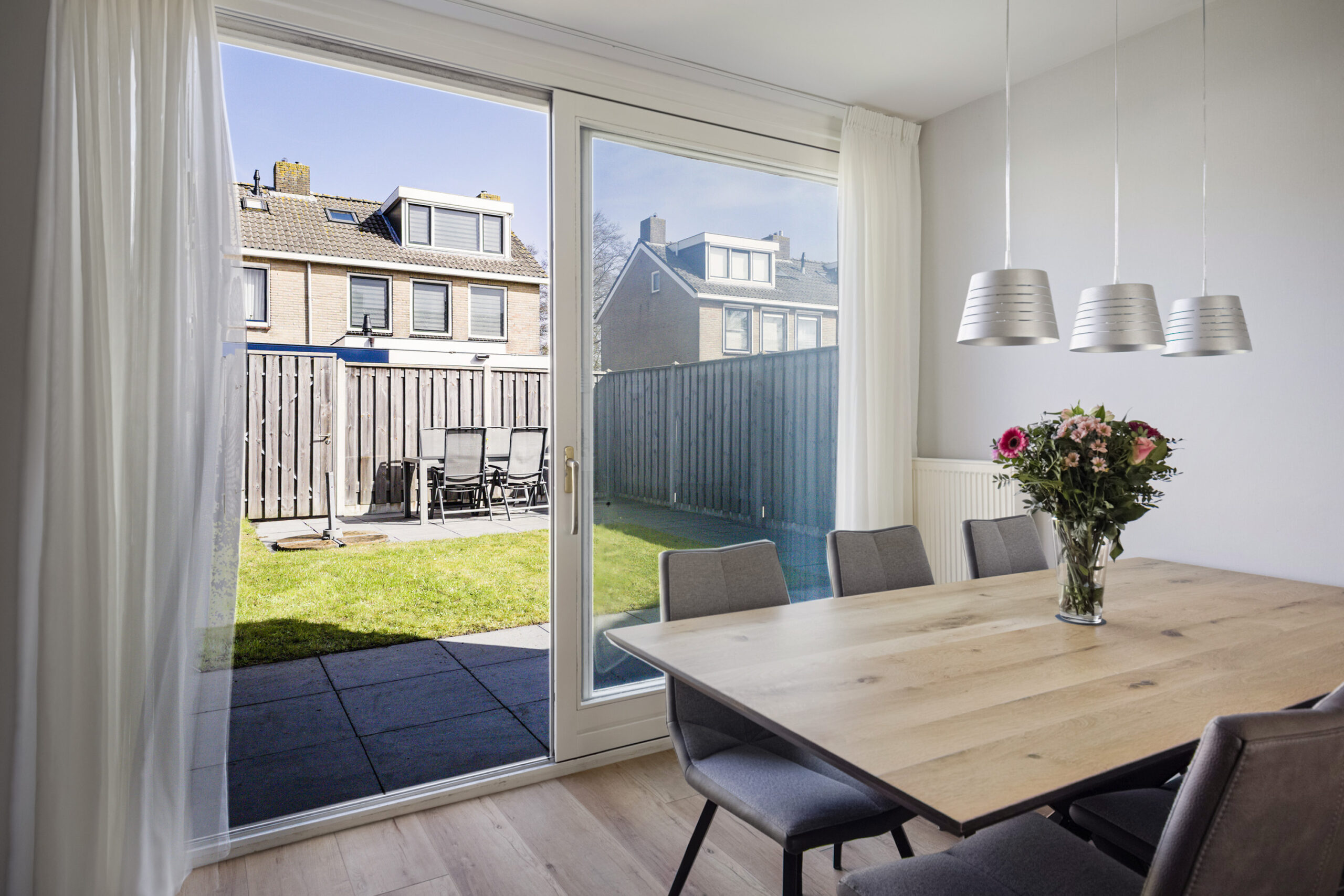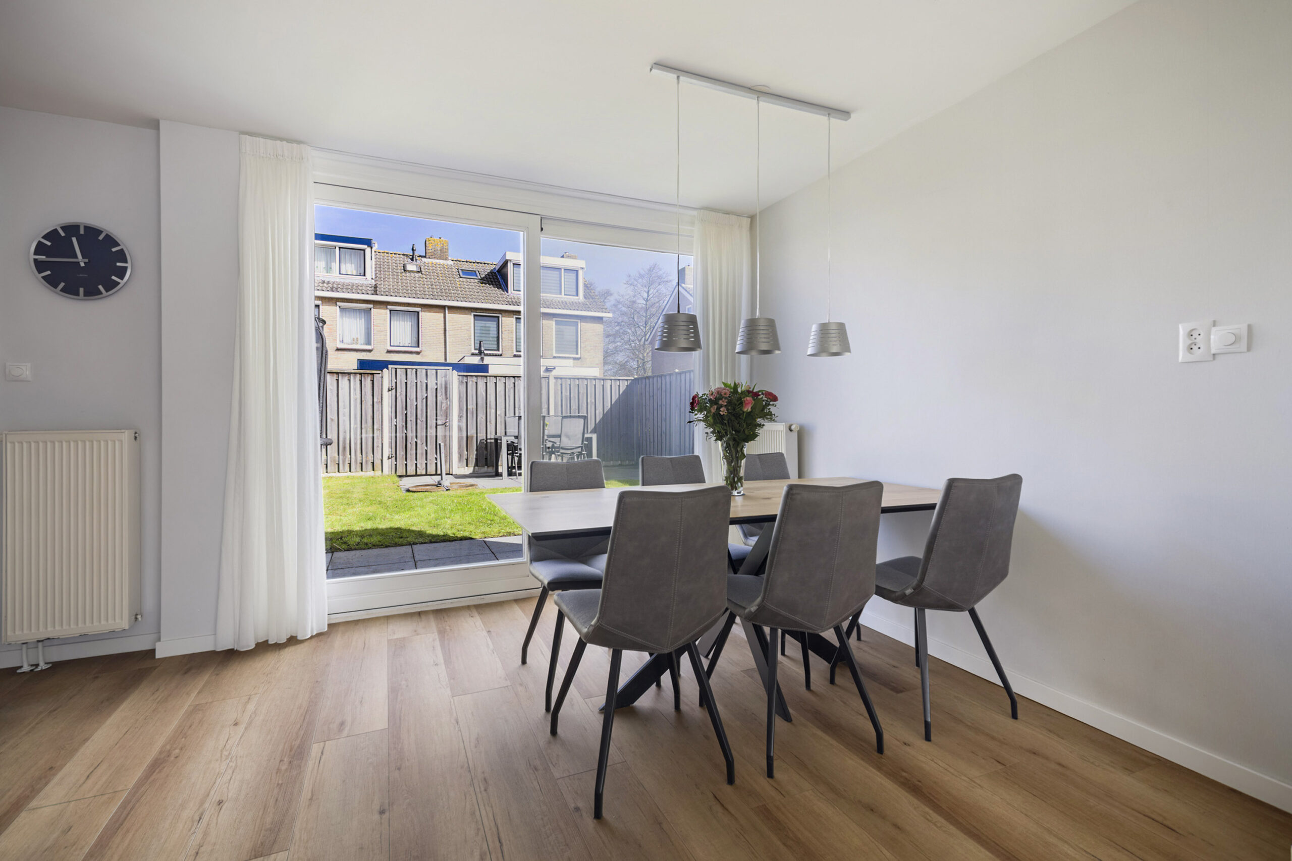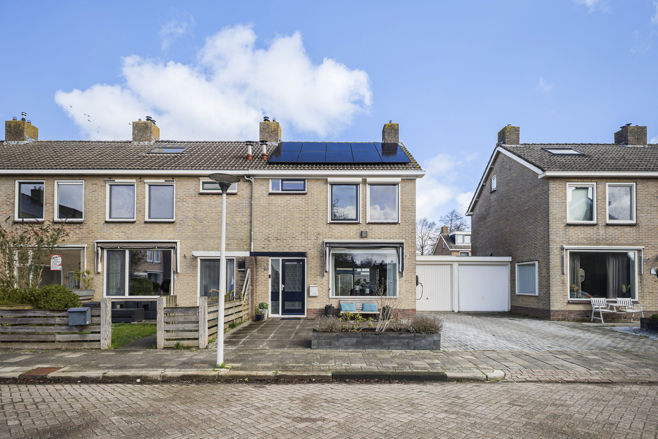 De verzorgde achtertuin op het noordoosten biedt een heerlijk terras en een praktische achterom, ideaal om buiten te ontspannen. Aan de voorzijde vind je een onderhoudsarme voortuin en een ruime oprit met oplaadpunt voor je elektrische auto en directe toegang tot de aangebouwde stenen garage, praktisch én toekomstbestendig.