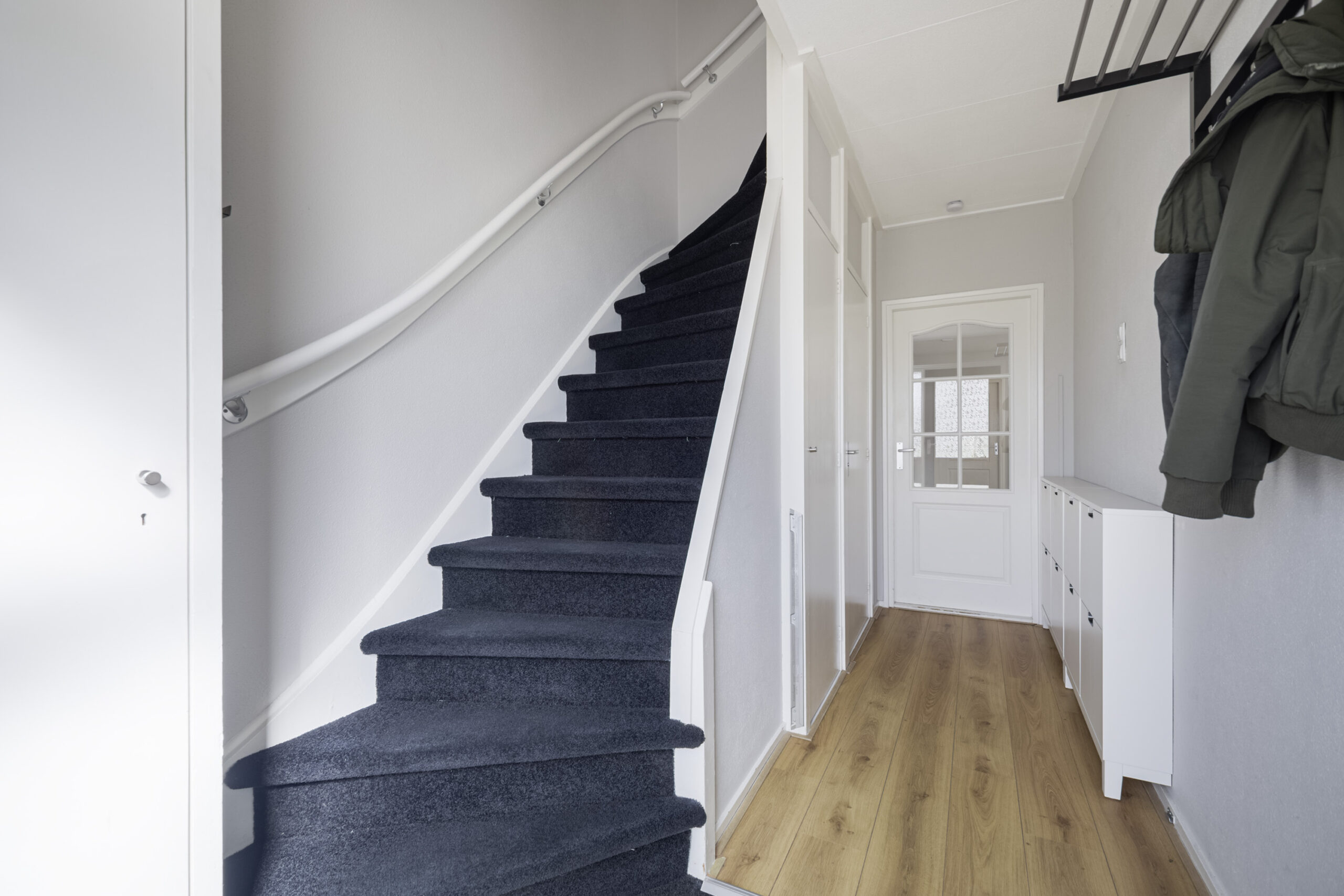 Op de eerste verdieping kom je via de overloop met handige vaste kast bij drie comfortabele slaapkamers, waarvan de hoofdslaapkamer is voorzien van een eigen vaste kast. De badkamer is praktisch ingericht en beschikt over een douche, wastafel en een designradiator.