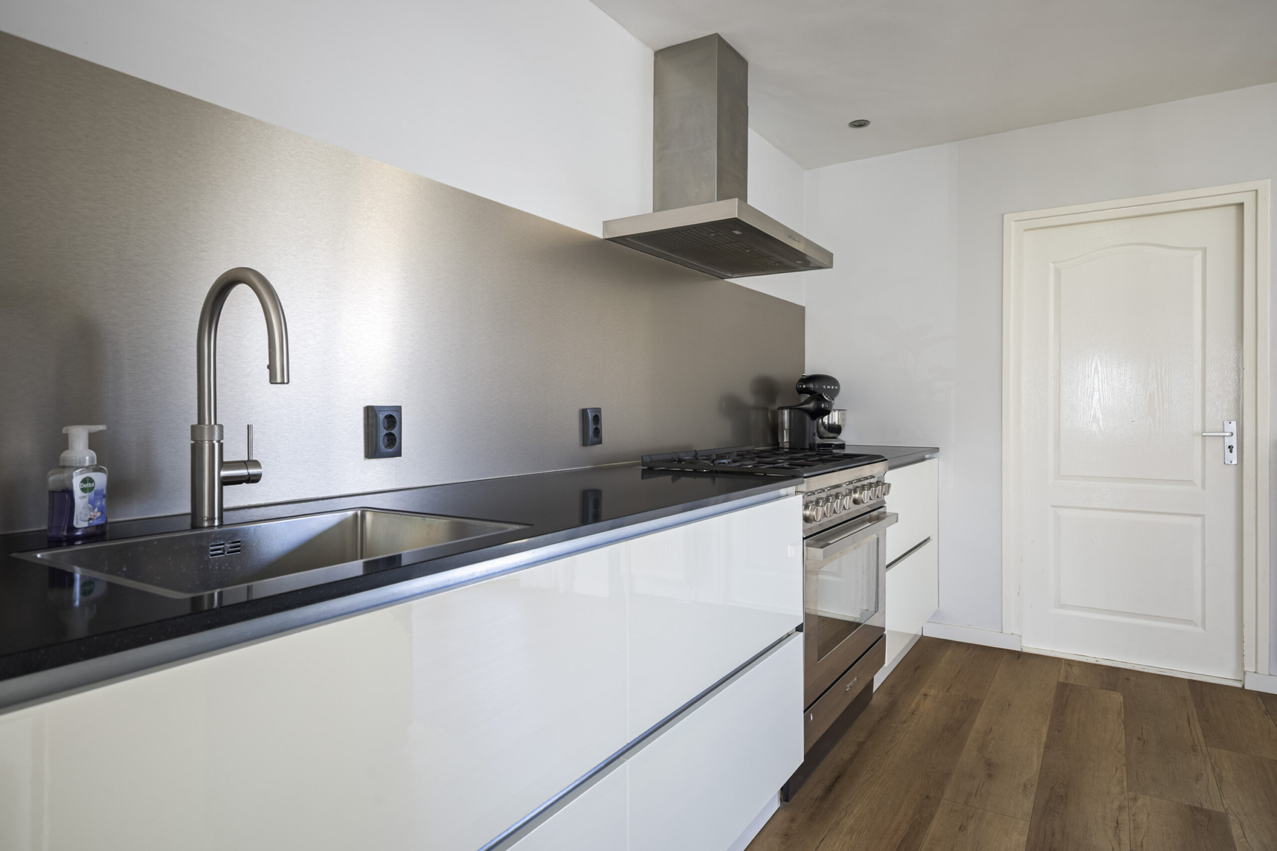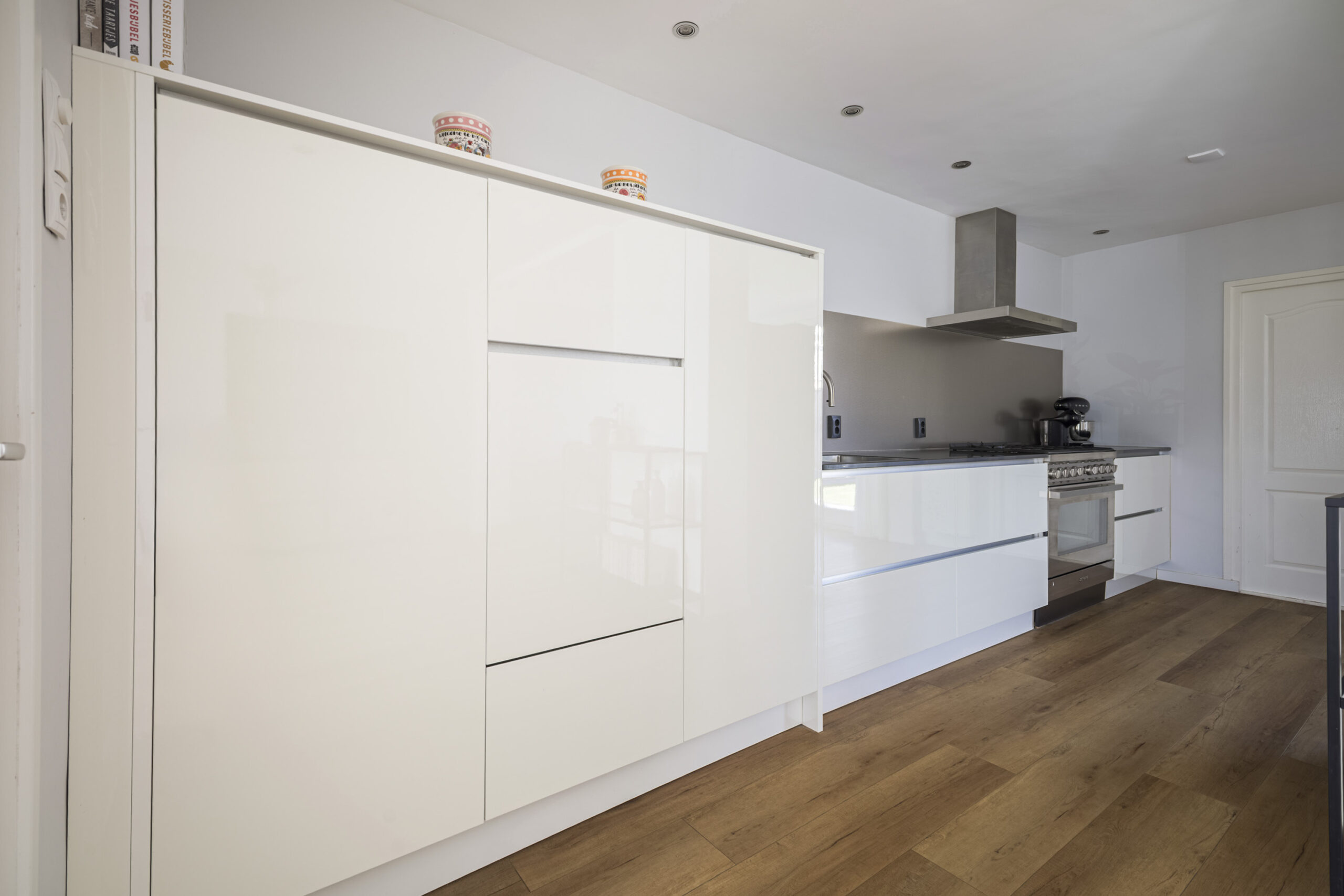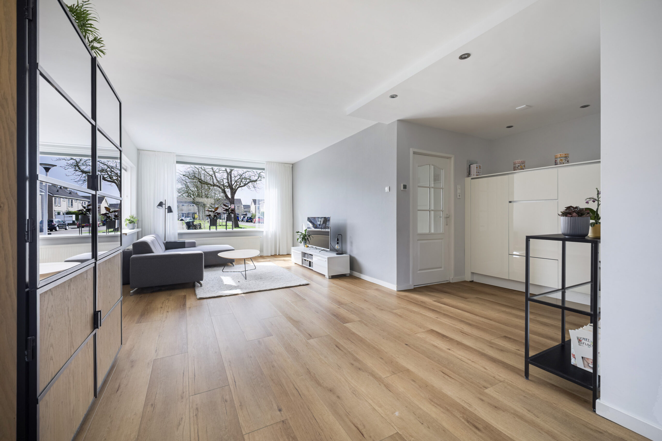 Je komt binnen in een nette hal met meterkast, trapkast en een modern toilet met fonteintje. Vanuit hier stap je de royale, uitgebouwde woonkamer in, waar de pvc-vloer, het markies aan de voorzijde en de grote schuifpui naar de tuin zorgen voor een lichte en comfortabele leefruimte. De moderne open keuken sluit hier naadloos op aan en is van alle gemakken voorzien, zoals een 6-pits gaskookplaat, oven, afzuigkap, Quooker, vaatwasser en volop opbergruimte met lades en sfeervolle spotjes. Aansluitend vind je de praktische bijkeuken met witgoedaansluitingen, de cv-opstelling en een deur naar de achtertuin, wat het wooncomfort compleet maakt.