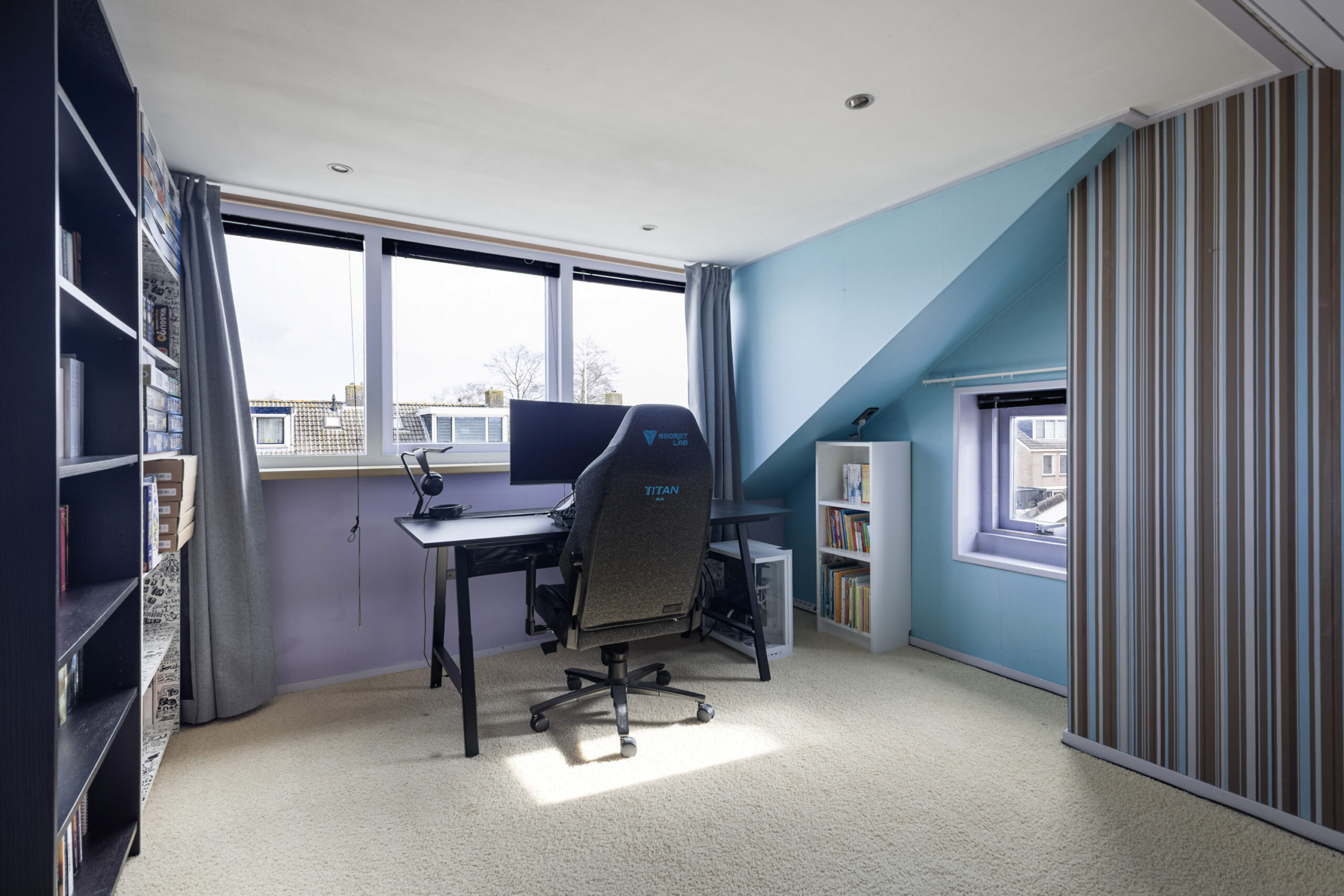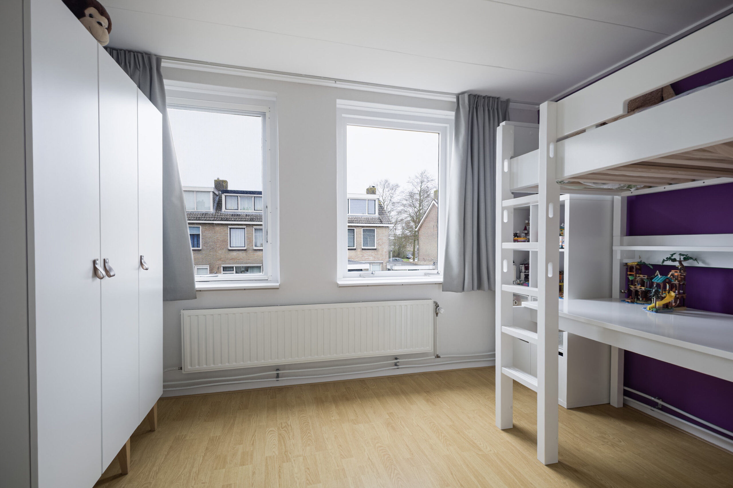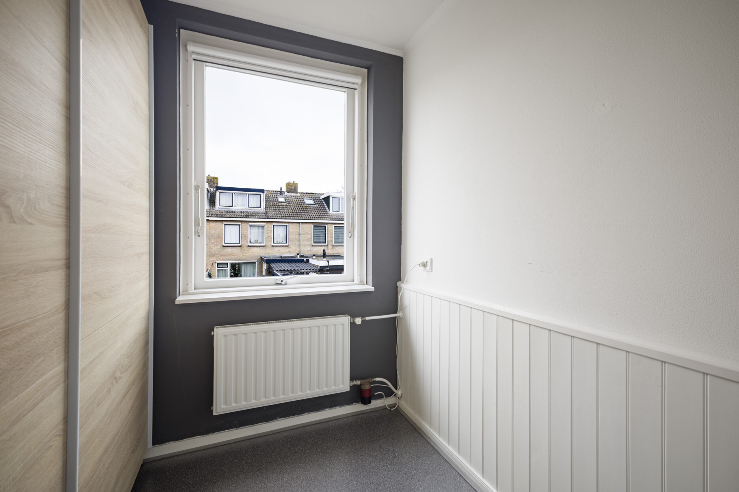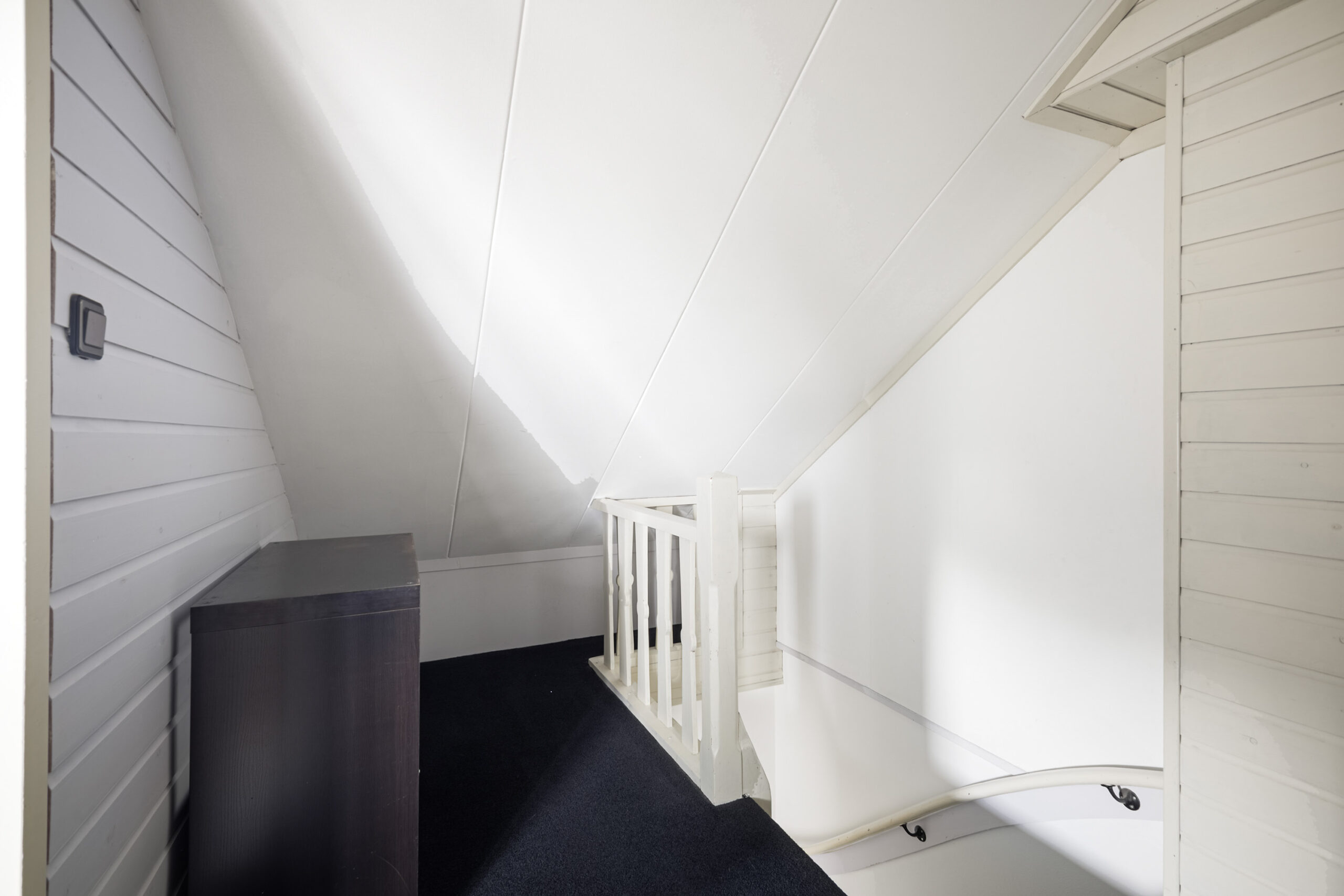 Via een vaste trap bereik je de tweede verdieping, waar je uitkomt op een overloop met praktische bergruimte. Hier vind je tevens een volwaardige vierde slaapkamer met dakkapel, waardoor je geniet van extra licht en ruimte, perfect als slaapkamer, werkplek of hobbykamer.