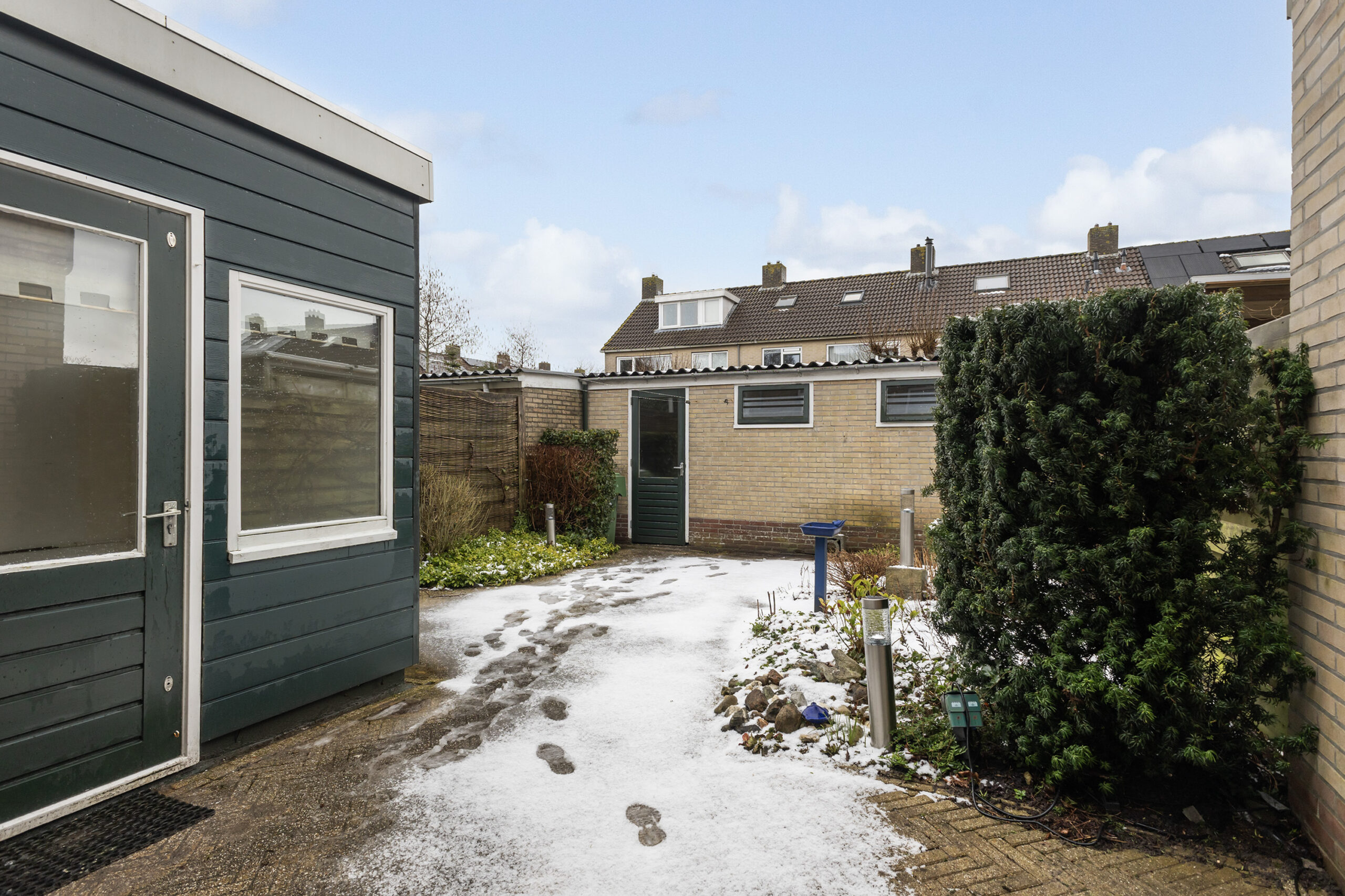 Leuke tussenwoning in een ruime en prettige straat, voorzien van vier slaapkamers, kunststof kozijnen, zonnepanelen en een royale berging in de tuin. De woning vormt de perfecte basis voor wie graag zijn eigen woonstijl wil realiseren en elke ruimte naar wens wil afwerken. Met volop potentie en een fijne ligging is dit dé kans om een comfortabel en duurzaam thuis te creëren dat volledig aansluit op jouw levensstijl en toekomstplannen. Indeling: Begane grond: Bij binnenkomst kom je in de hal met meterkast, praktische trapkast en een toilet met fonteintje. De woonkamer heeft veel lichtinval, een gashaard en verlaagd plafond met inbouwspots. De keuken is voorzien van een inductiekookplaat, afzuigkap en combimagnetron en beschikt bovendien over een handige kleine kelder voor extra bergruimte. Vanuit de keuken bereik je de praktische bijkeuken met witgoedaansluitingen en een deur naar de achtertuin. 1e verdieping: De overloop biedt toegang tot drie comfortabele slaapkamers, waarvan één is voorzien van een praktische vaste kastenwand. De badkamer is verzorgd en functioneel ingericht met een douche, een modern badkamermeubel…