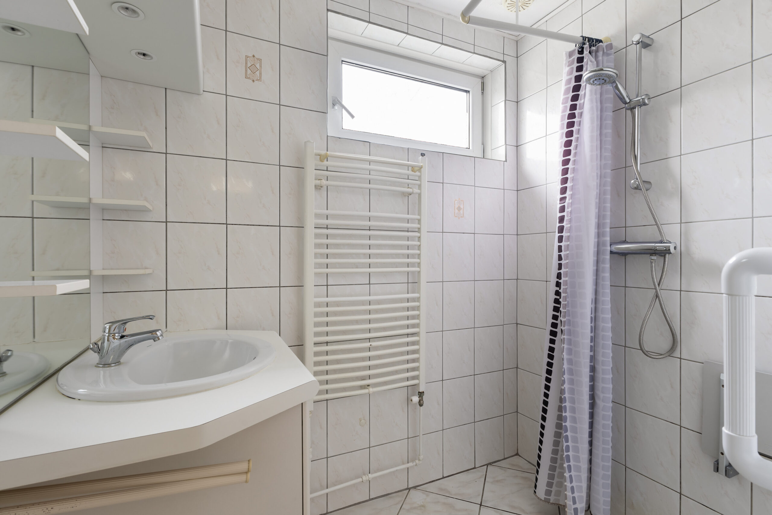 De overloop biedt toegang tot drie comfortabele slaapkamers, waarvan één is voorzien van een praktische vaste kastenwand. De badkamer is verzorgd en functioneel ingericht met een douche, een modern badkamermeubel met wastafel en een designradiator. Daarnaast beschikt deze verdieping over een separaat toilet, wat zorgt voor extra gemak.