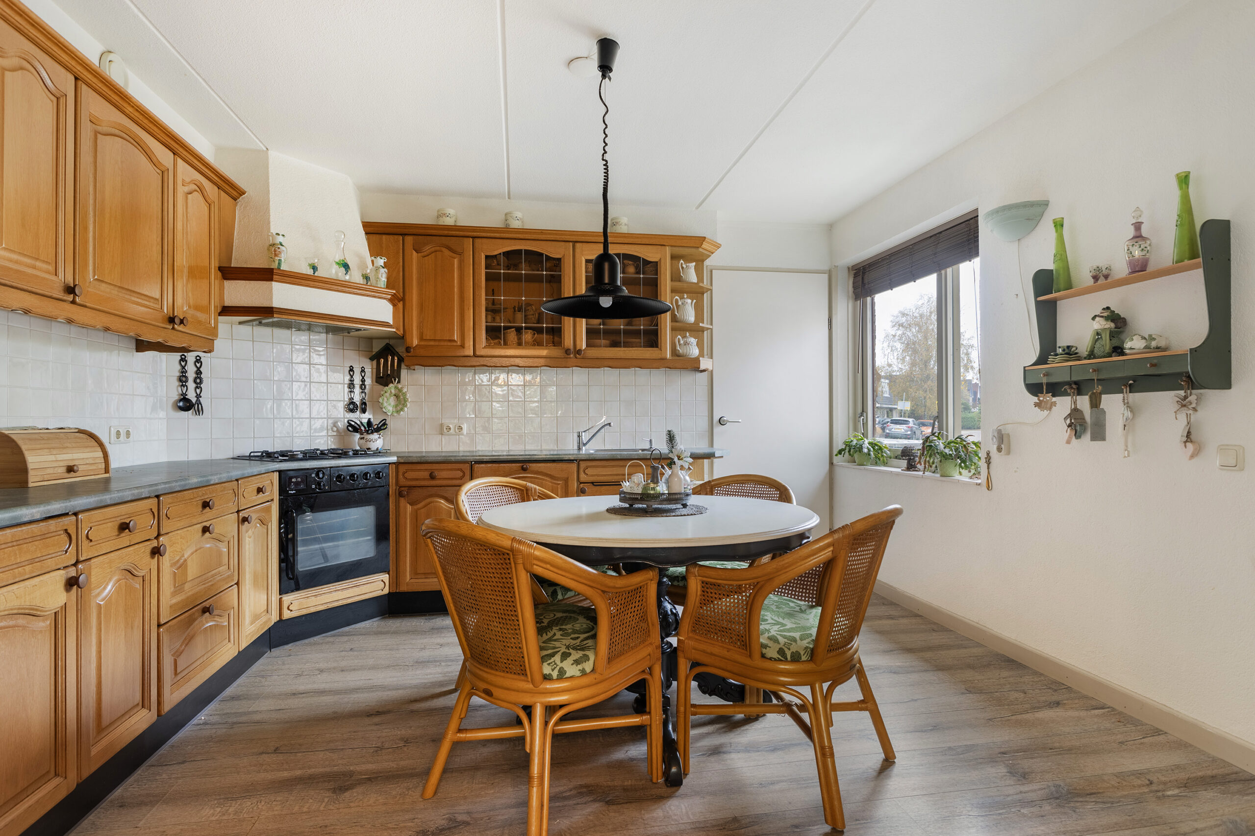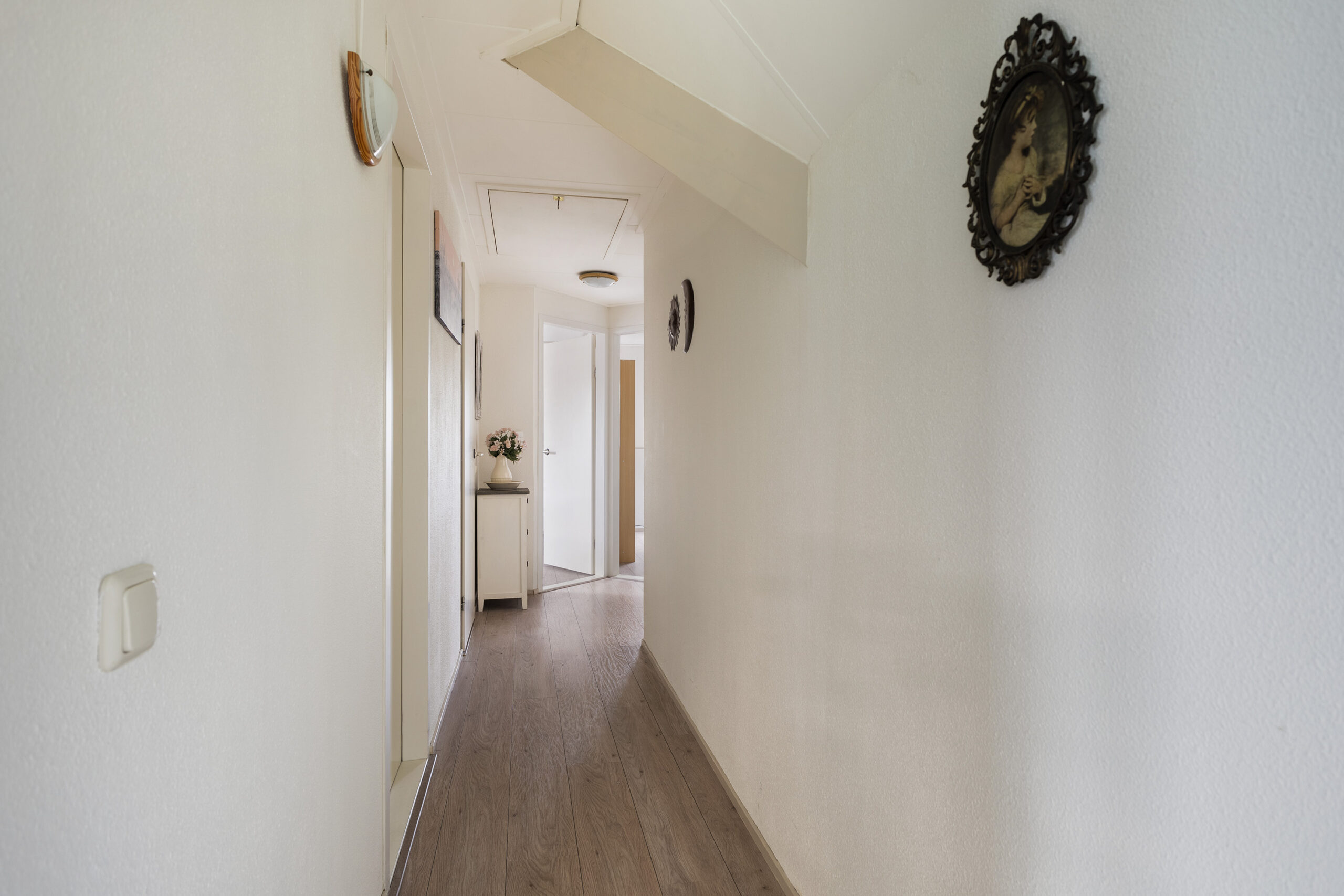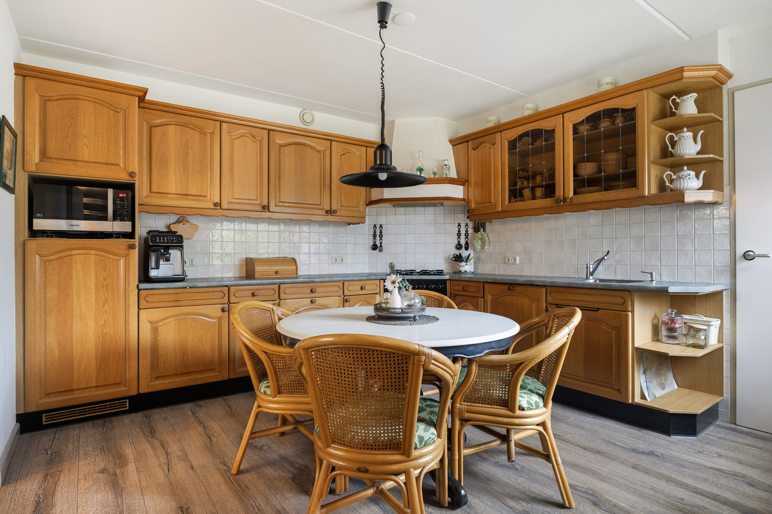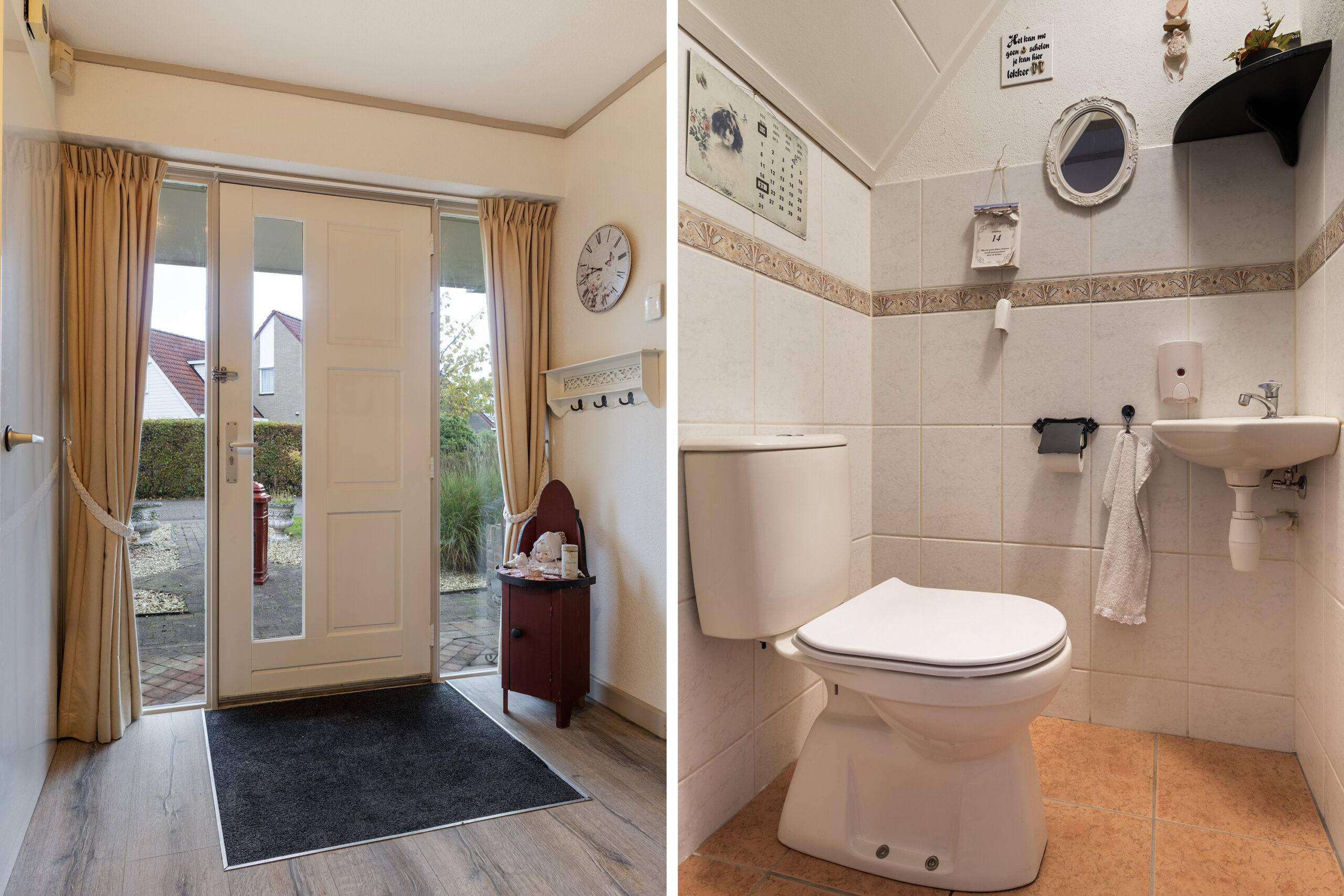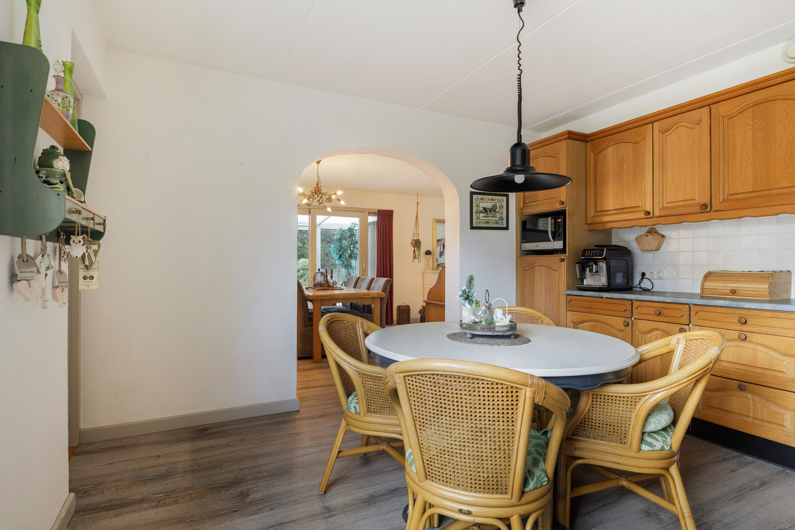 Binnenkomst in een ruime hal binnen met garderobe-nis, trapopgang, een apart toilet en toegang tot een slaap-/werkkamer en de woonkamer. De grote woonkamer met erker met buitenzonwering biedt veel licht en ruimte en uitzicht op de prachtige achtertuin. De aangebouwde serre is bereikbaar via de schuifpui en biedt een heerlijke zitplek, met name bij koude zonnige dagen. Vanuit de serre is er via een tweede schuifpui directe toegang tot de tuin. De keuken is apart en voorzien van inbouwapparatuur, waaronder een oven, afzuigkap, 4-pits gaskookplaat, koelkast en vaatwasser. Vanuit de keuken heb je toegang tot de praktische bijkeuken met witgoed aansluitingen en de cv-opstelling. Daarnaast kun je vanuit de keuken doorlopen naar de garage. Deze ruime garage is voorzien van een geïsoleerde garagedeur met elektrische deuropener, een aparte loopdeur, een keukenblok met warm en koud water toegang tot de achtertuin.