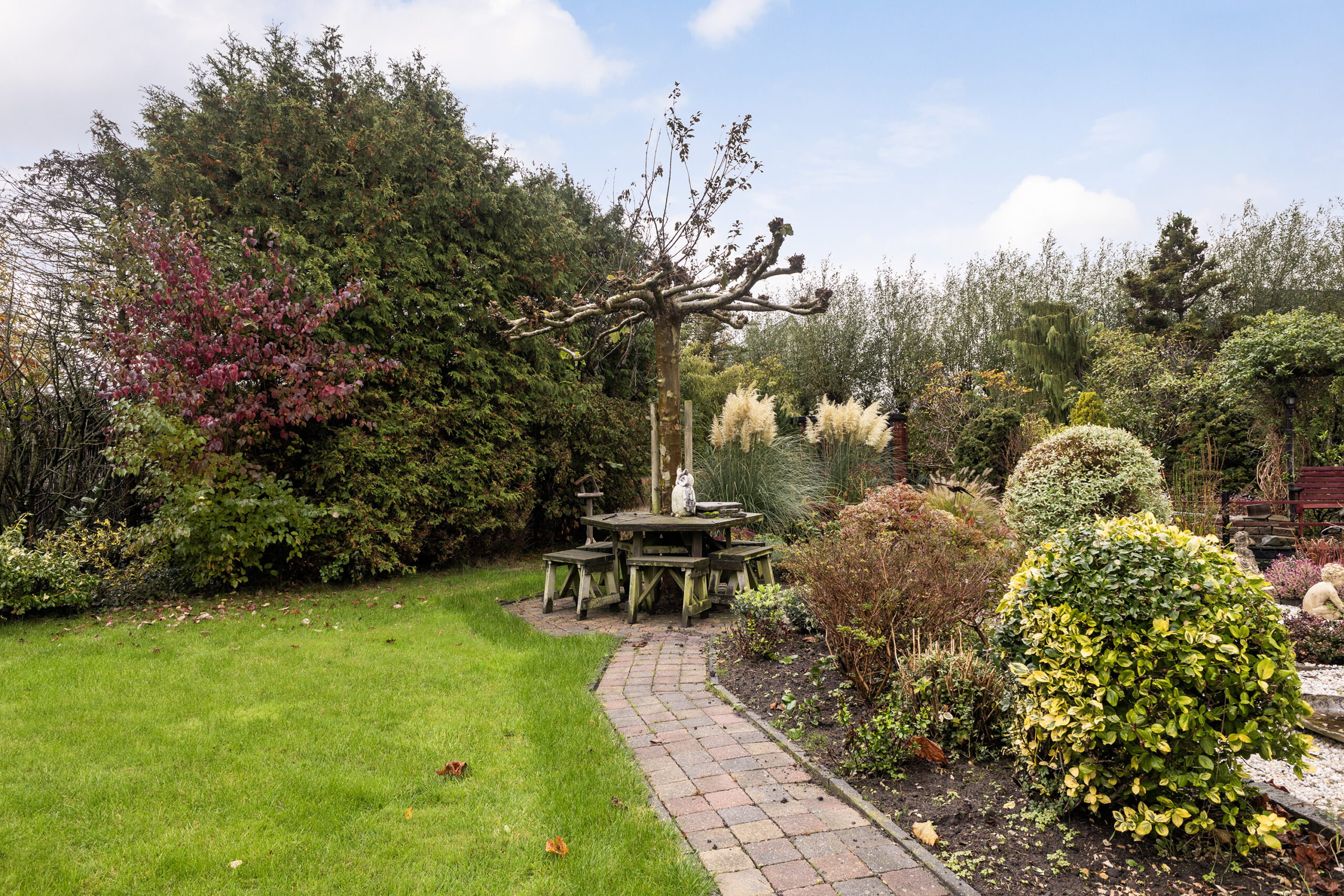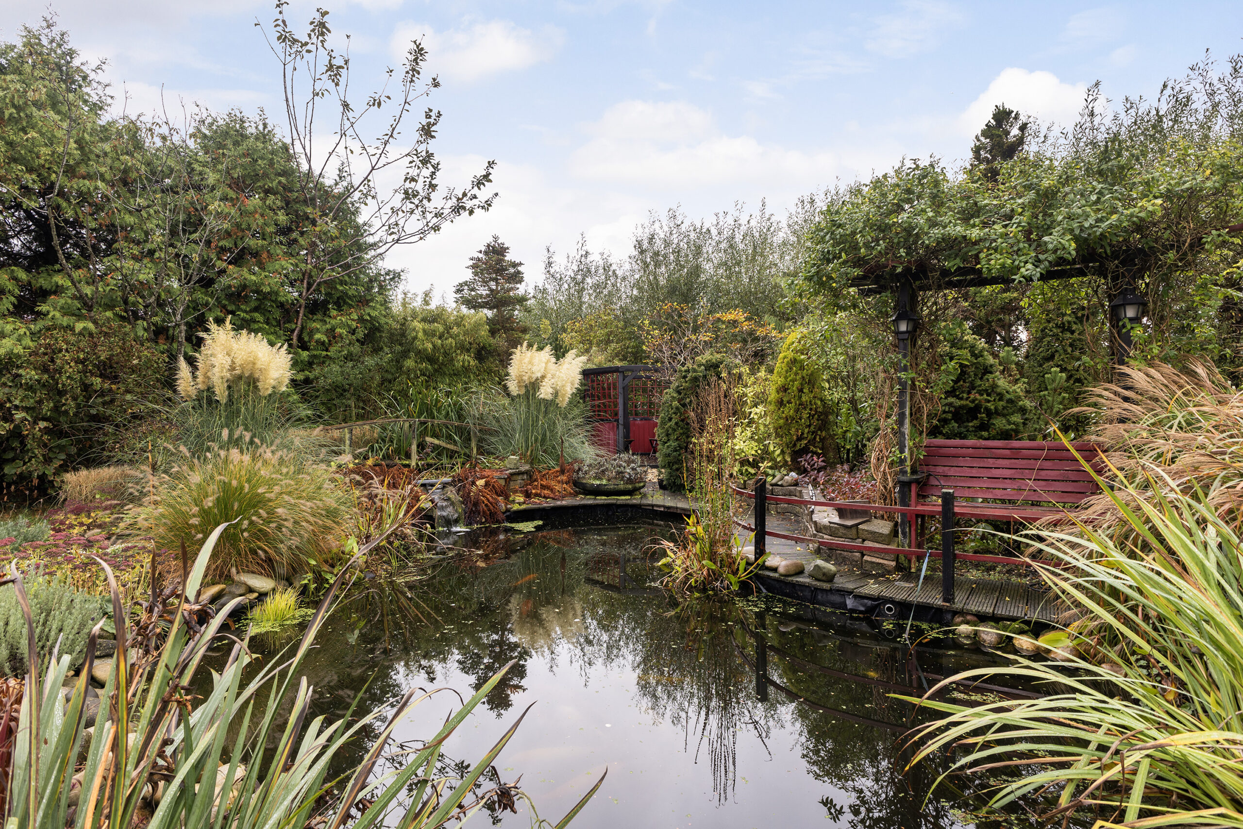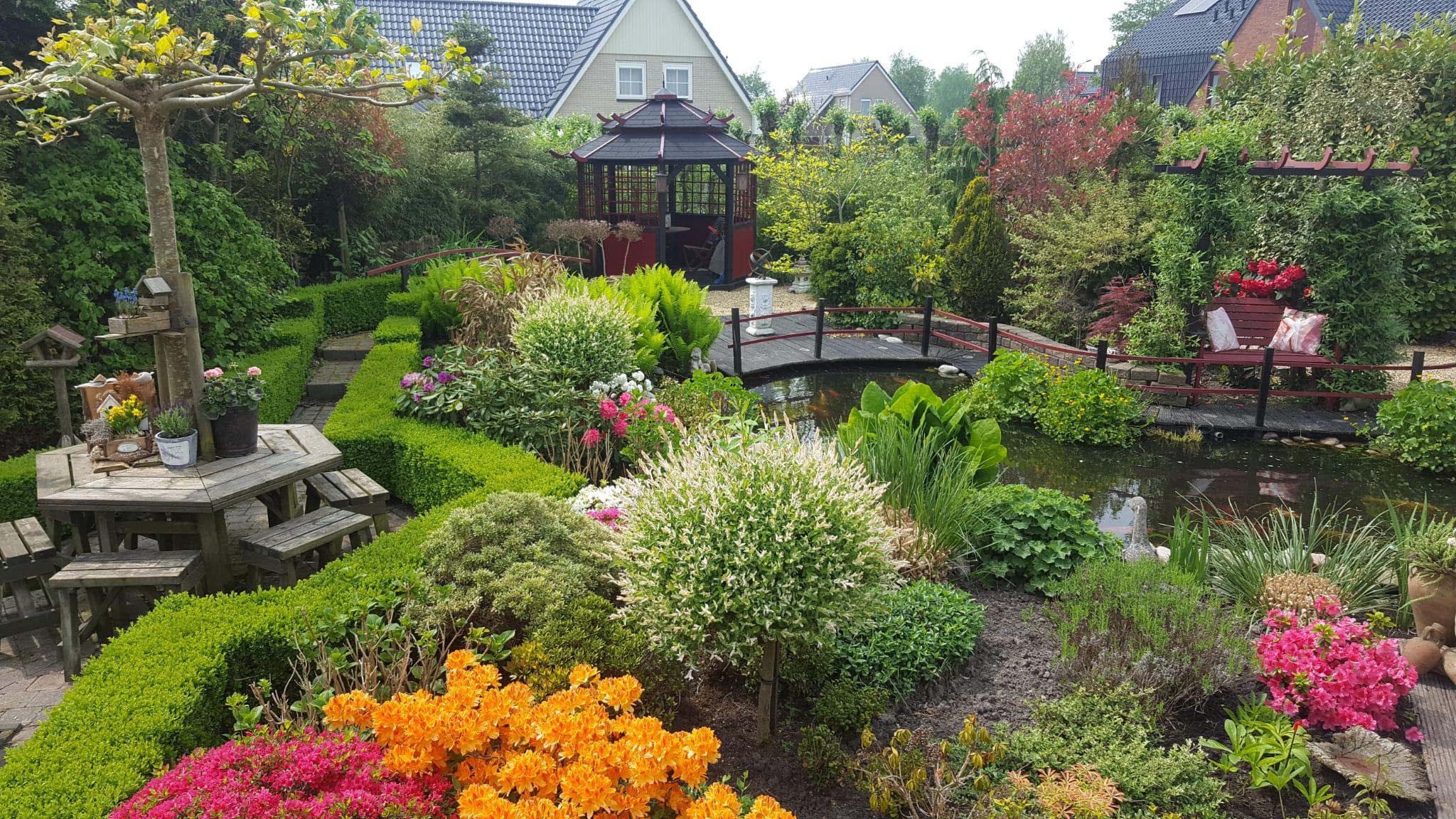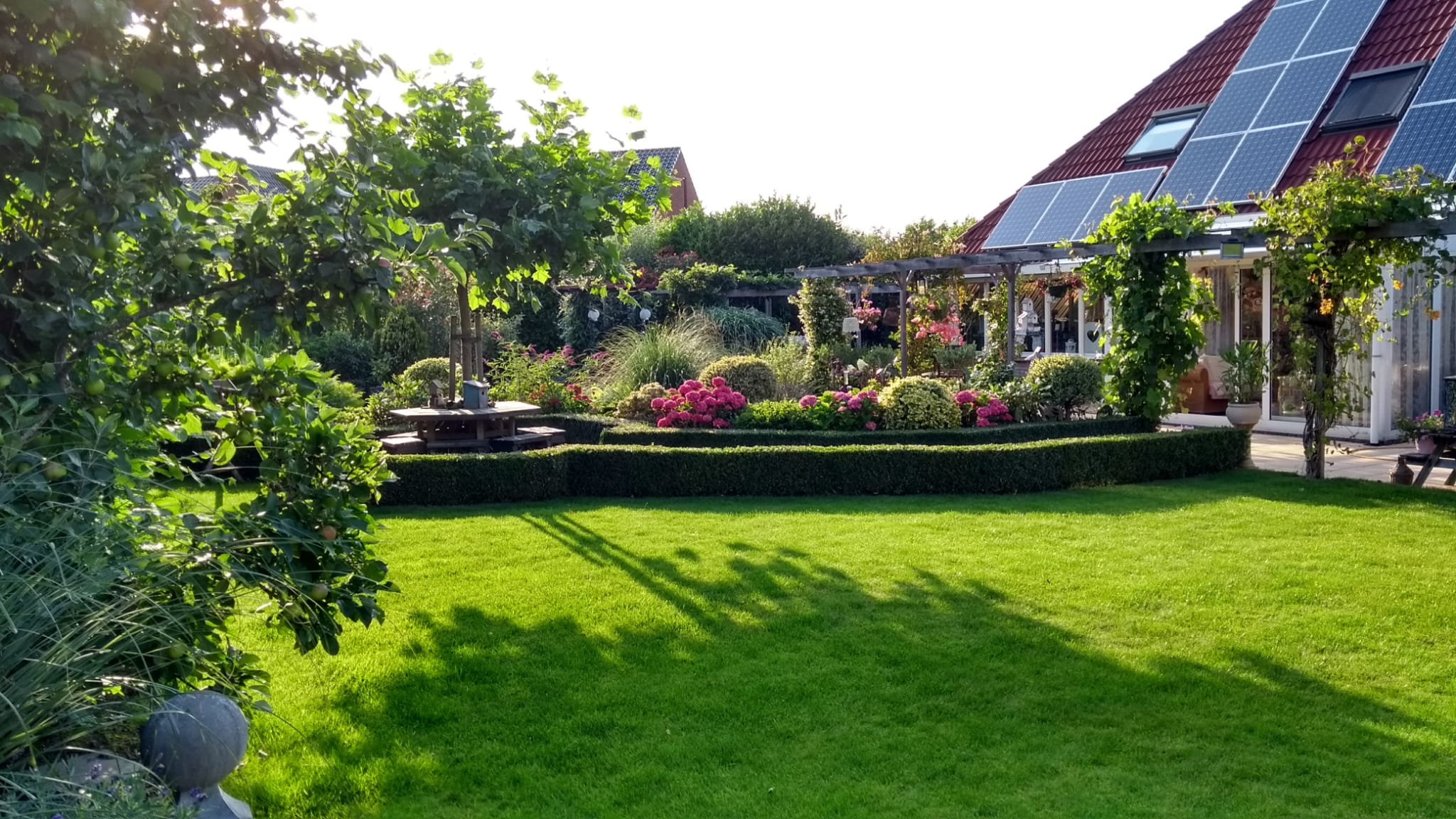 De royale, prachtig aangelegde biedt veel privacy en rust. De tuin is met zorg onderhouden en is sfeervol en speels ingericht met bloemen, planten en een mooie vijver, wat zorgt voor een ontspannen en uitnodigende sfeer. Er zijn meerdere terrassen, overkappingen en een zonnescherm aanwezig, waardoor je op elk moment van de dag een heerlijke plek vindt om te zitten, te eten of te genieten van een goed boek. Daarnaast is er een geïsoleerde berging, voor het opbergen van bijvoorbeeld tuingereedschap. Aan de voorzijde heb je op de oprit voldoende parkeergelegenheid en aan linkerzijde naast de garage heb je onder de carport extra plaats voor een auto, motor of aanhangwagen.