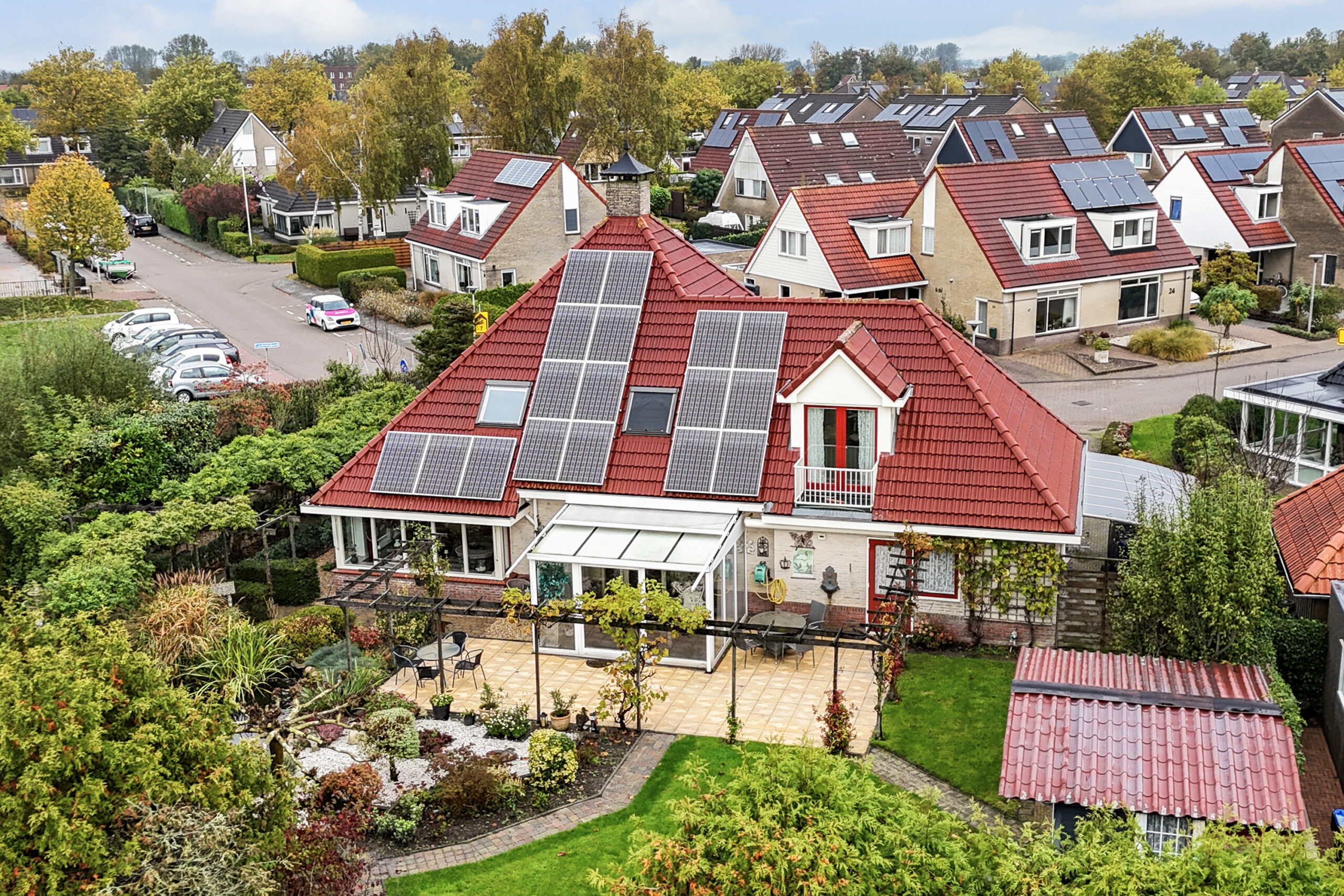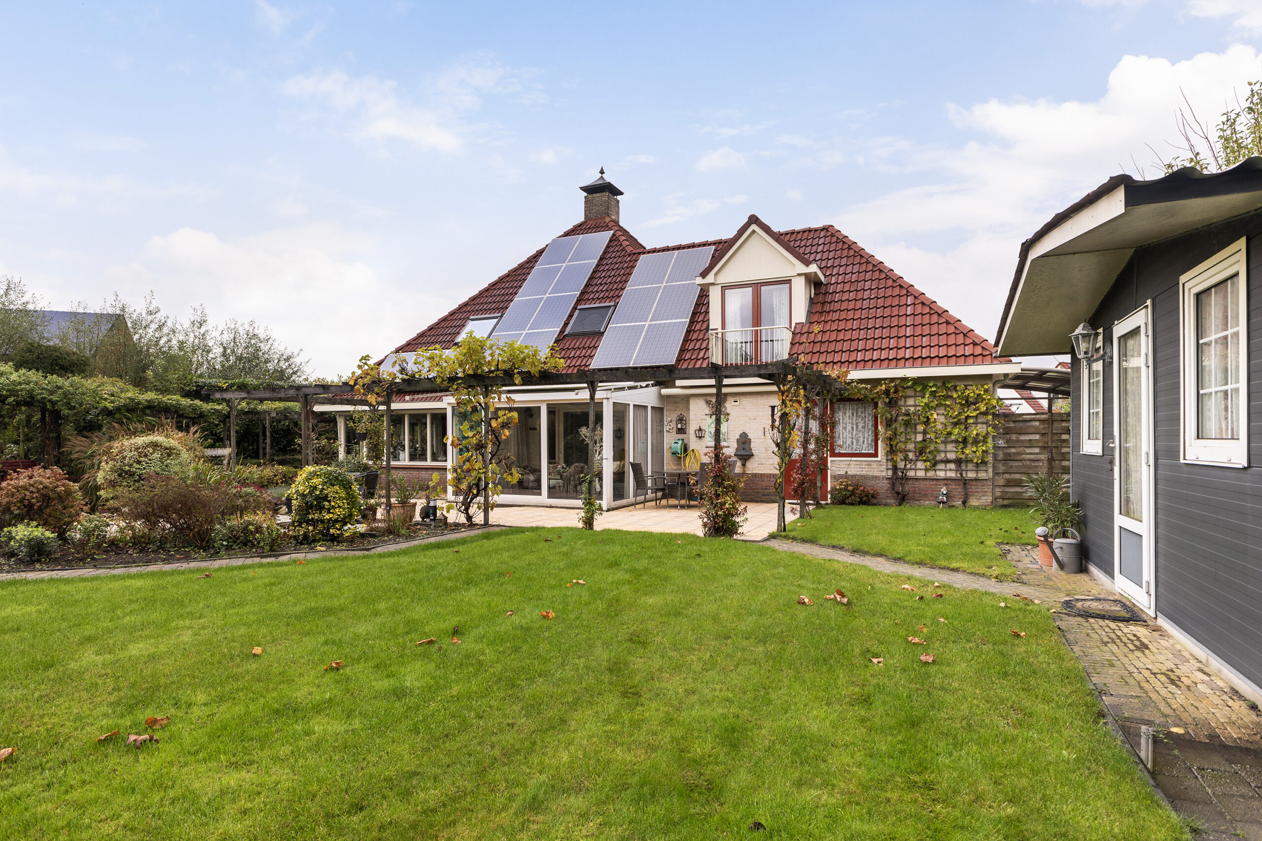 Deze royale, energiezuinige, uitgebouwde piramide-woning is een unieke kans voor wie op zoek is naar veel leefruimte met optimaal licht, ruimte en comfort. Bij binnenkomst ervaar je direct de ruimte en het comfort van deze woning. De lichte woonkamer met erker en serre biedt prachtig uitzicht op de fraai aangelegde tuin, terwijl de aparte keuken aansluit op de praktische bijkeuken en ruime garage. Bovendien vind je een slaap-/werkkamer op de begane grond. Op de verdieping zijn vier royale slaapkamers en een moderne badkamer, en er is extra bergruimte op zolder. De sfeervolle tuin met meerdere zitplekken en vijver zorgt voor rust en privacy. Met energielabel A, 17 zonnepanelen en een warmtepomp woon je hier comfortabel én duurzaam. Indeling: Begane grond: Binnenkomst in een ruime hal binnen met garderobe-nis, trapopgang, een apart toilet en toegang tot een slaap-/werkkamer en de woonkamer. De grote woonkamer met erker met buitenzonwering biedt veel licht en ruimte en uitzicht op de prachtige achtertuin. De aangebouwde serre is bereikbaar via de schuifpui en biedt een heerlijke…