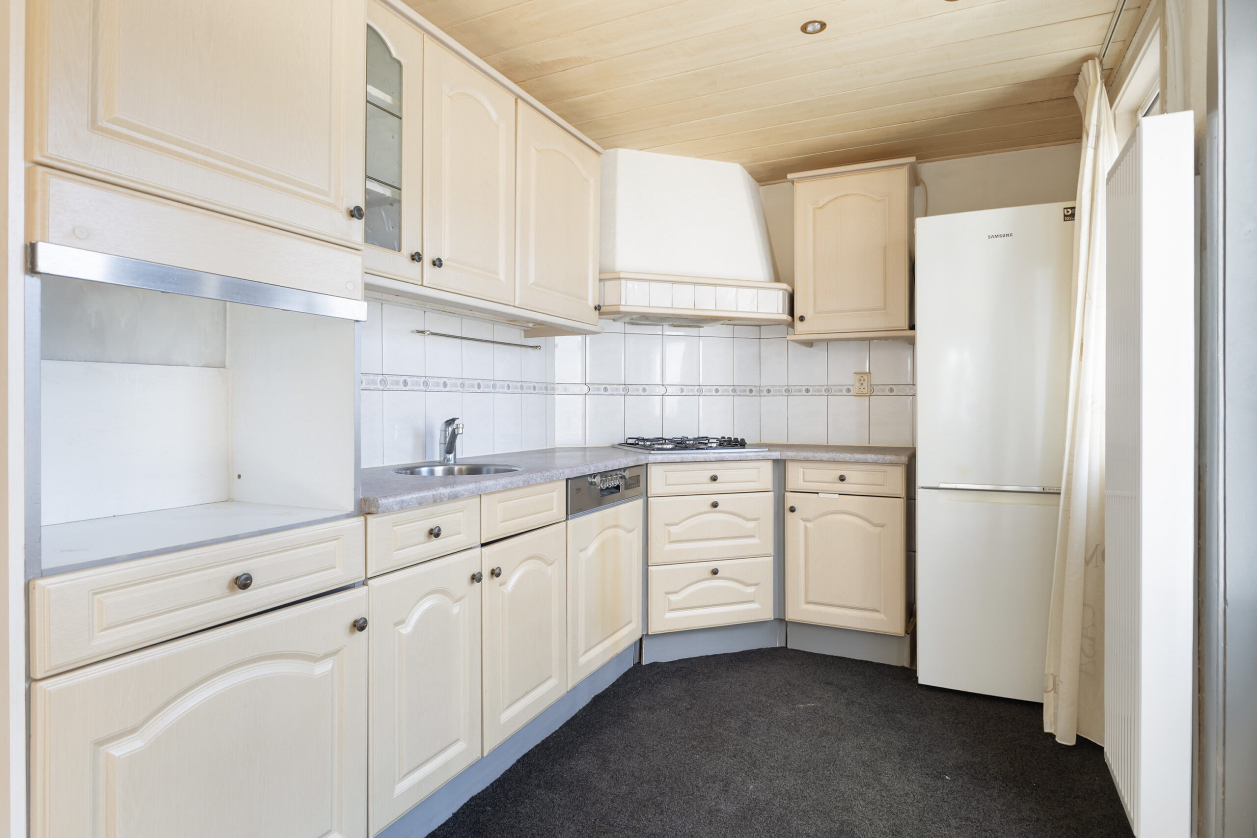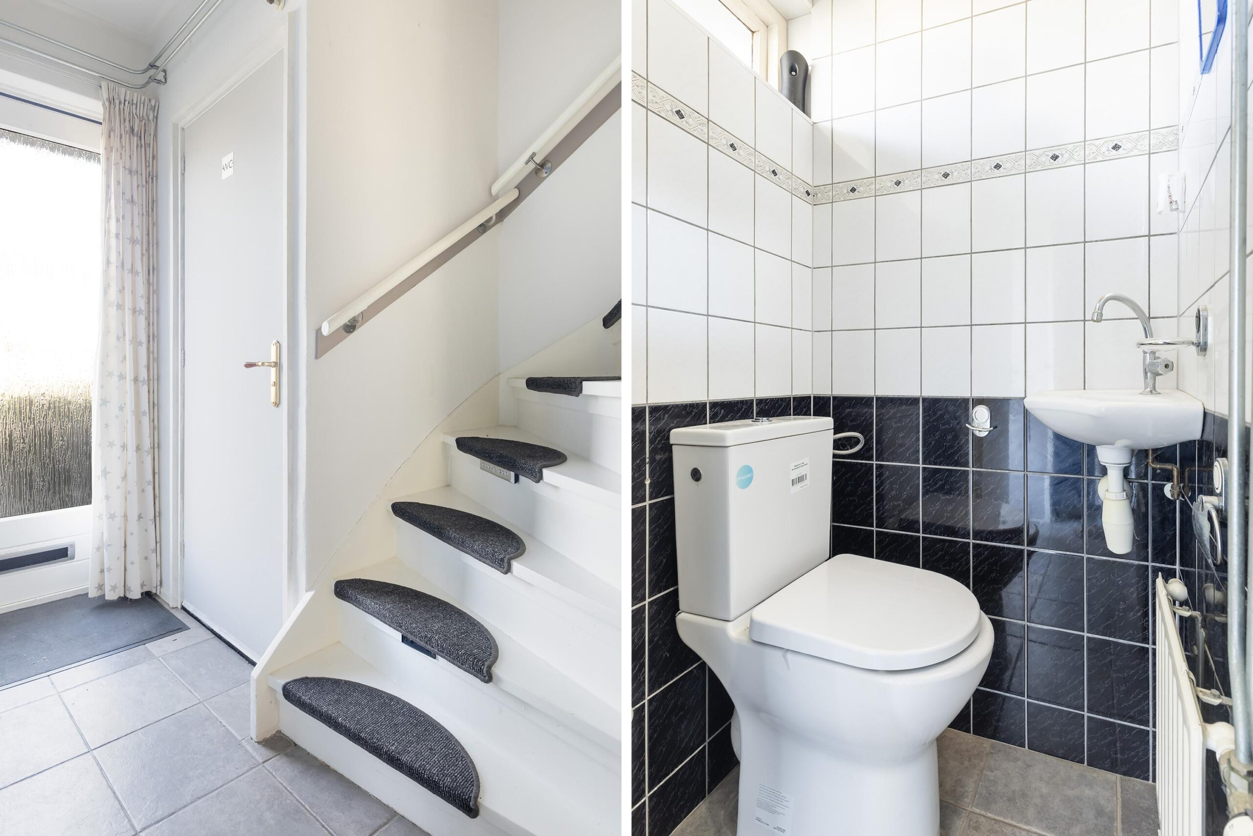 Via de entree/hal betreedt u de woning, waar u toegang heeft tot de meterkast en een separaat toilet. Vanuit de hal bereikt u de woonkamer, de trap naar de eerste verdieping en een praktische trapkast met voorraadplanken. De woonkamer is heerlijk licht dankzij de vele raampartijen en biedt voldoende ruimte voor een comfortabele zithoek en een gezellige eethoek. De indeling maakt het een fijne plek om te wonen en te ontspannen. De keuken is bereikbaar vanuit de woonkamer en geeft middels een achterdeur direct toegang tot de achtertuin. De keuken is functioneel ingericht en voorzien van diverse inbouwapparatuur, waaronder een vaatwasser, een 4-pits gaskookplaat, een afzuigkap en bovenkasten voor extra bergruimte.