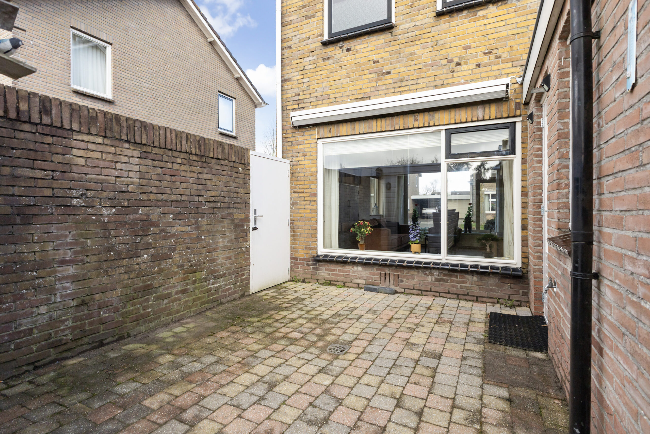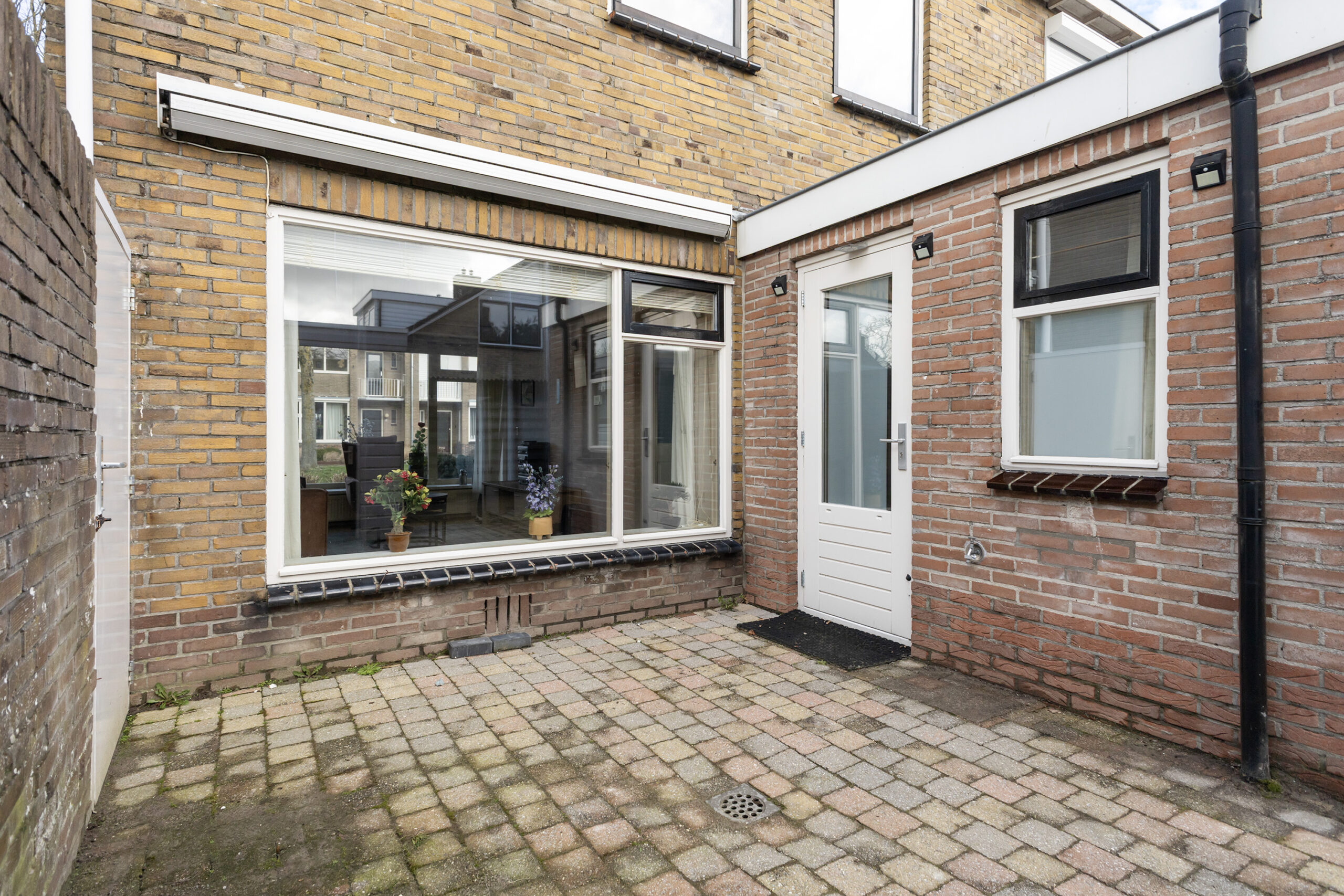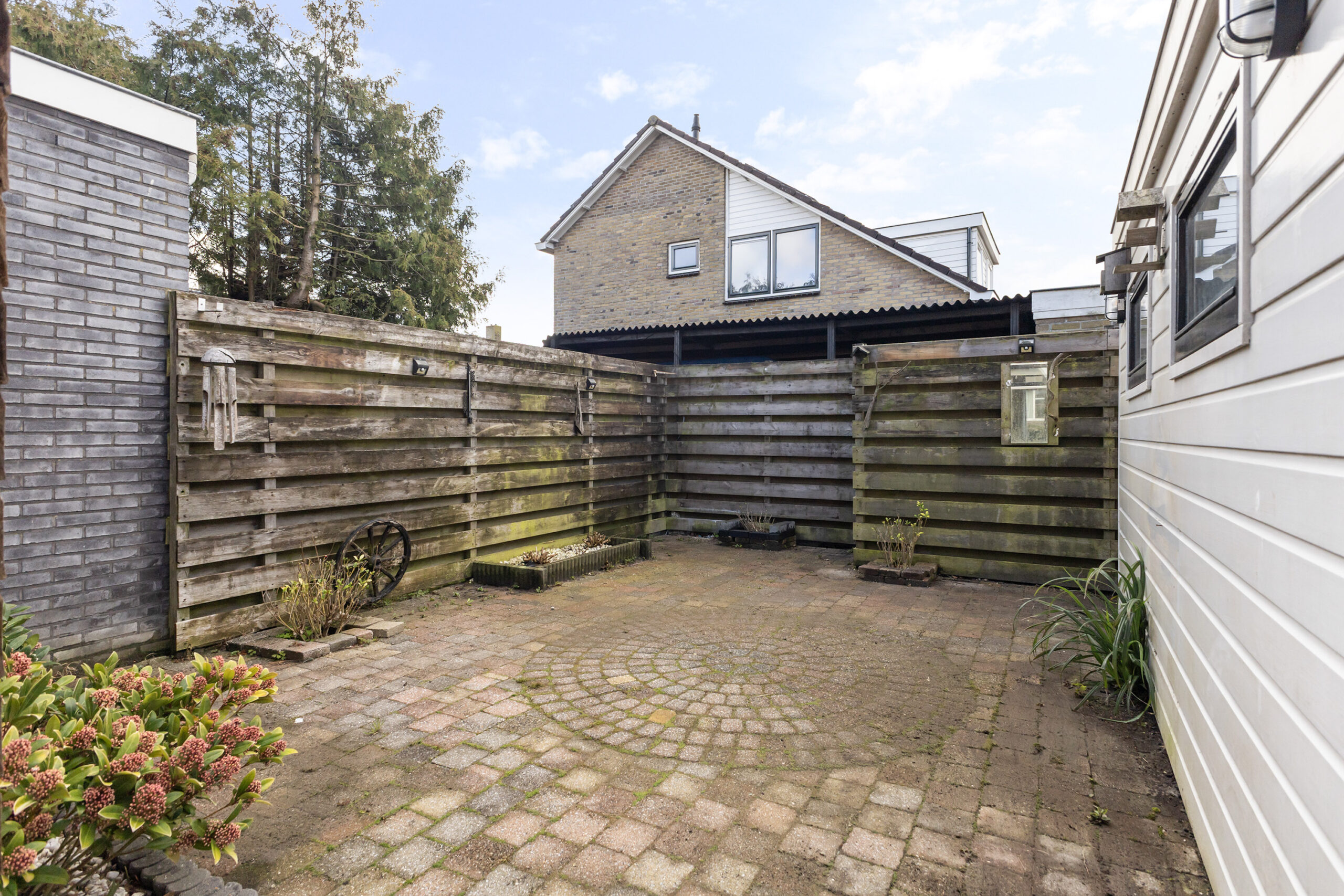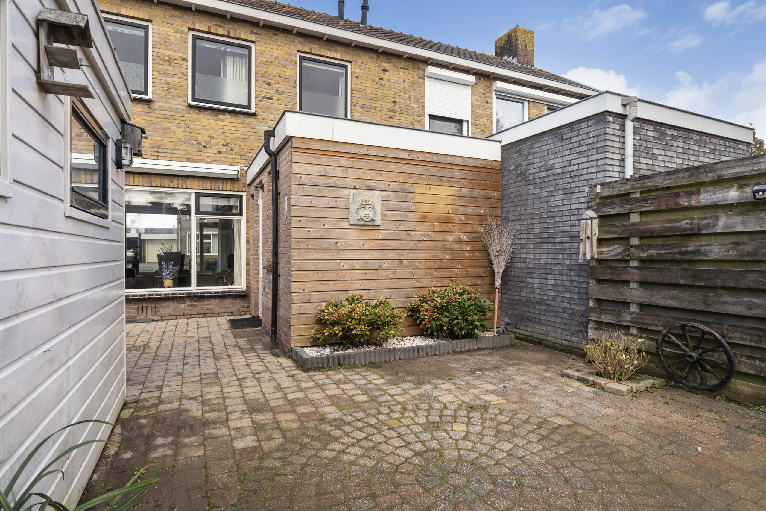 De achtertuin is gelegen op het zuiden en beschikt over een achterom. De tuin is volledig bestraat en biedt veel privacy dankzij houten schuttingen en een stenen tuinmuur. Daarnaast is de tuin voorzien van een buitenkraan en een elektrisch zonnescherm.