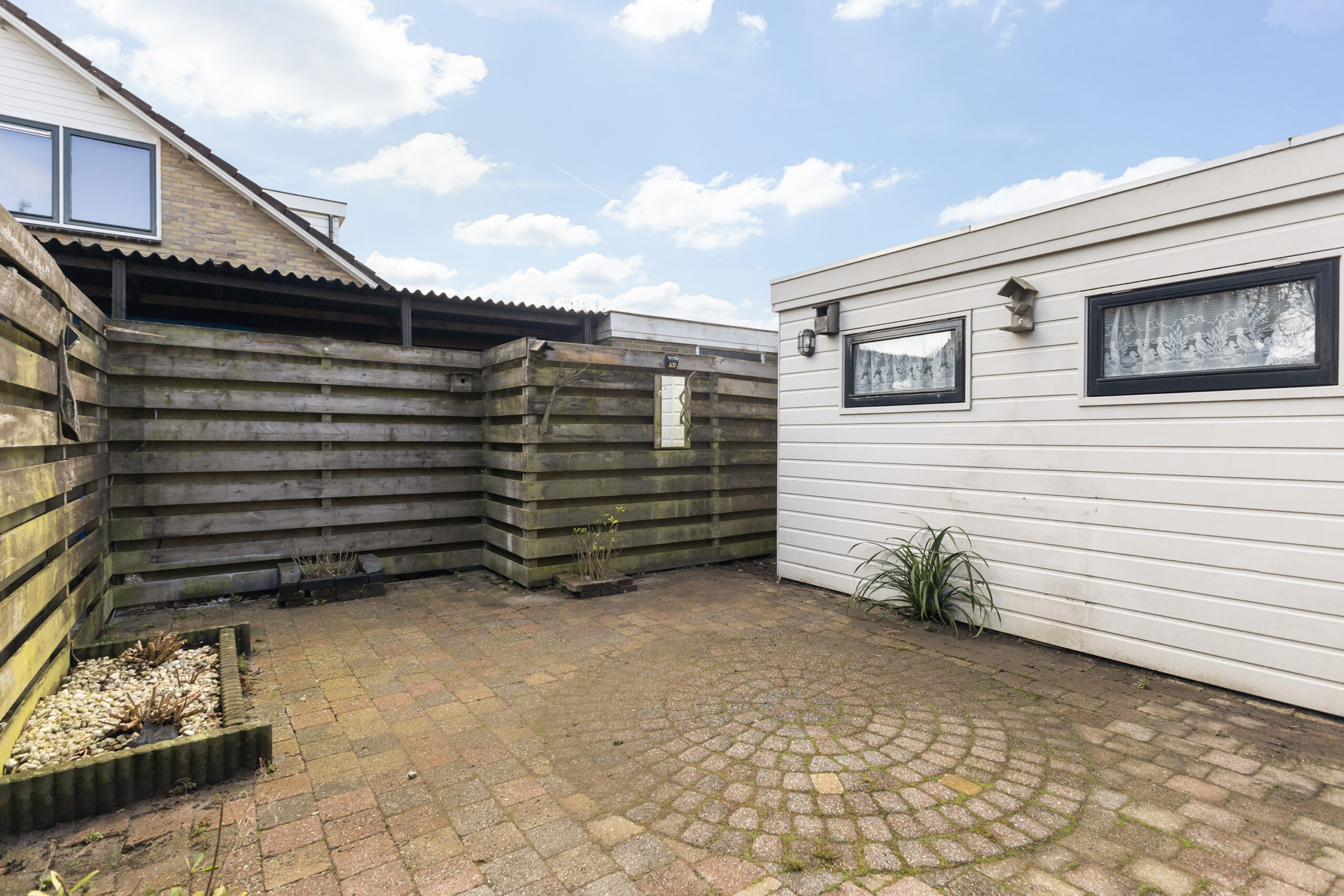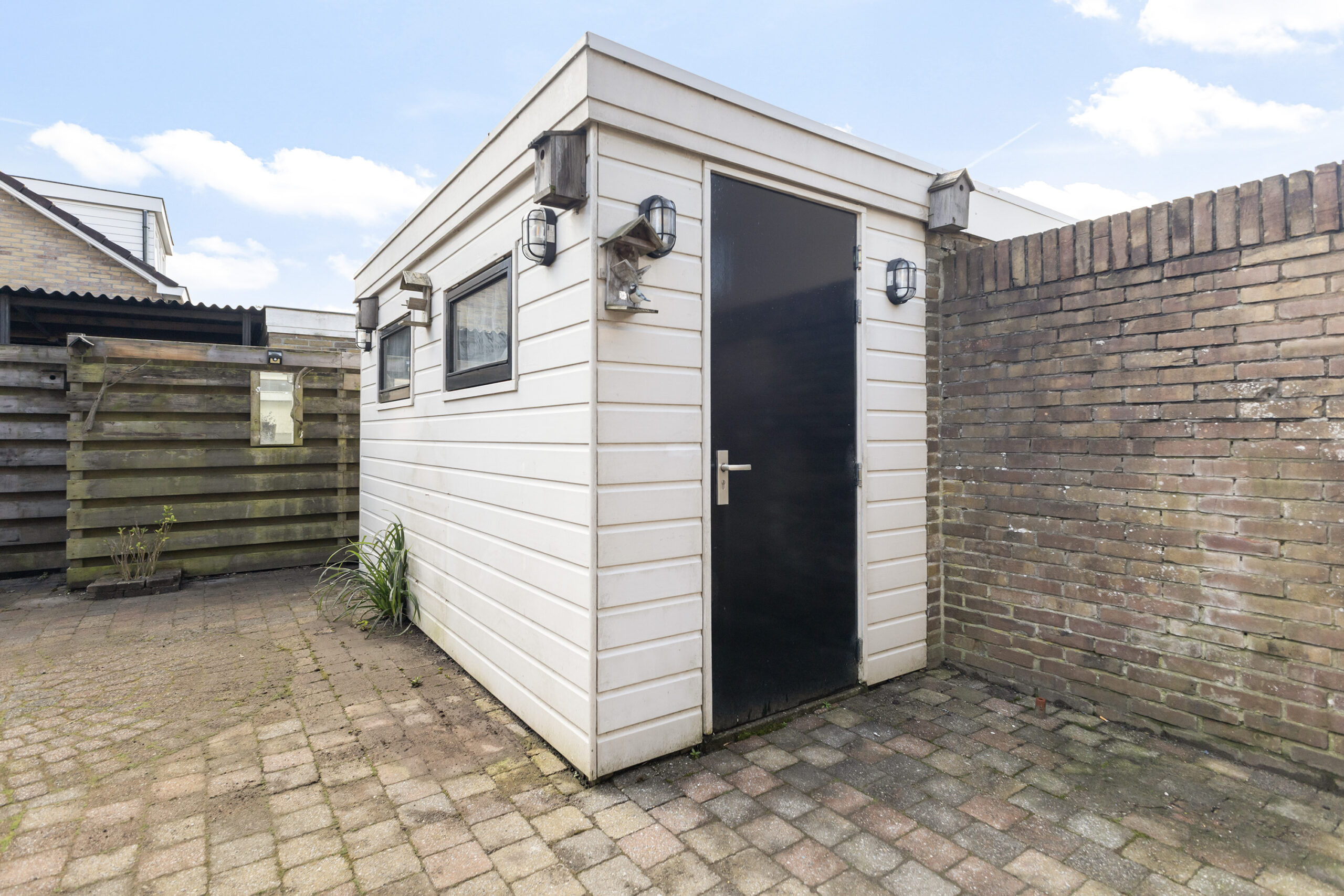 Achterin de tuin bevindt zich een schuur met betonnen vloer en elektra, voorzien van openslaande houten deuren. De woning beschikt tevens over een ruime oprit.
