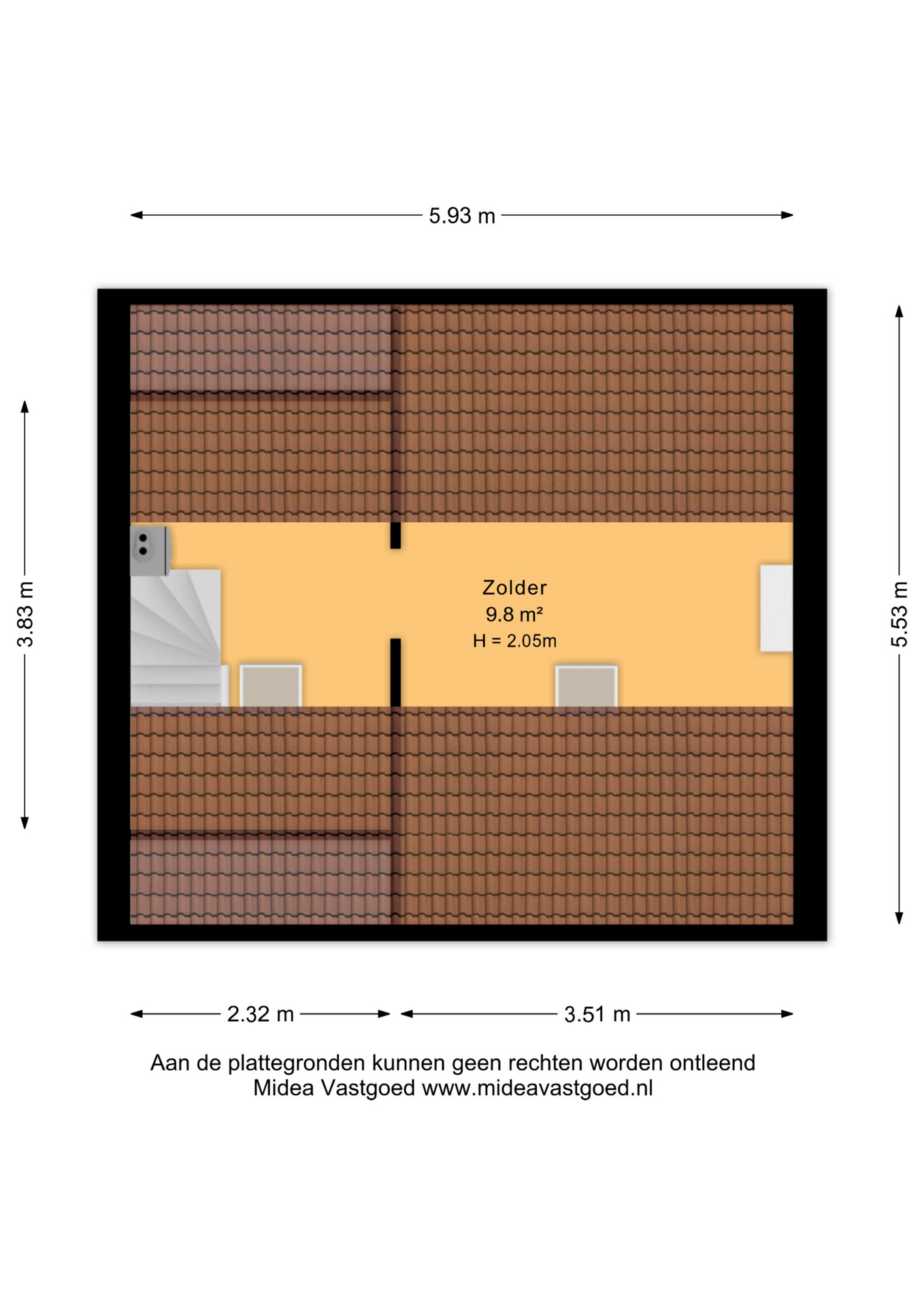 Deze informatie is door ons met de nodige zorgvuldigheid samengesteld. Onzerzijds wordt echter geen enkele aansprakelijkheid aanvaard voor enige onvolledigheid, onjuistheid of anderszins, dan wel de gevolgen daarvan. Alle opgegeven maten en oppervlakten zijn indicatief.