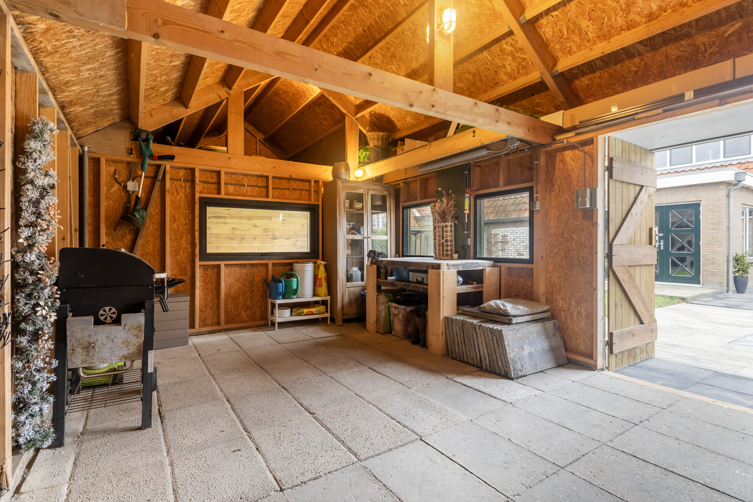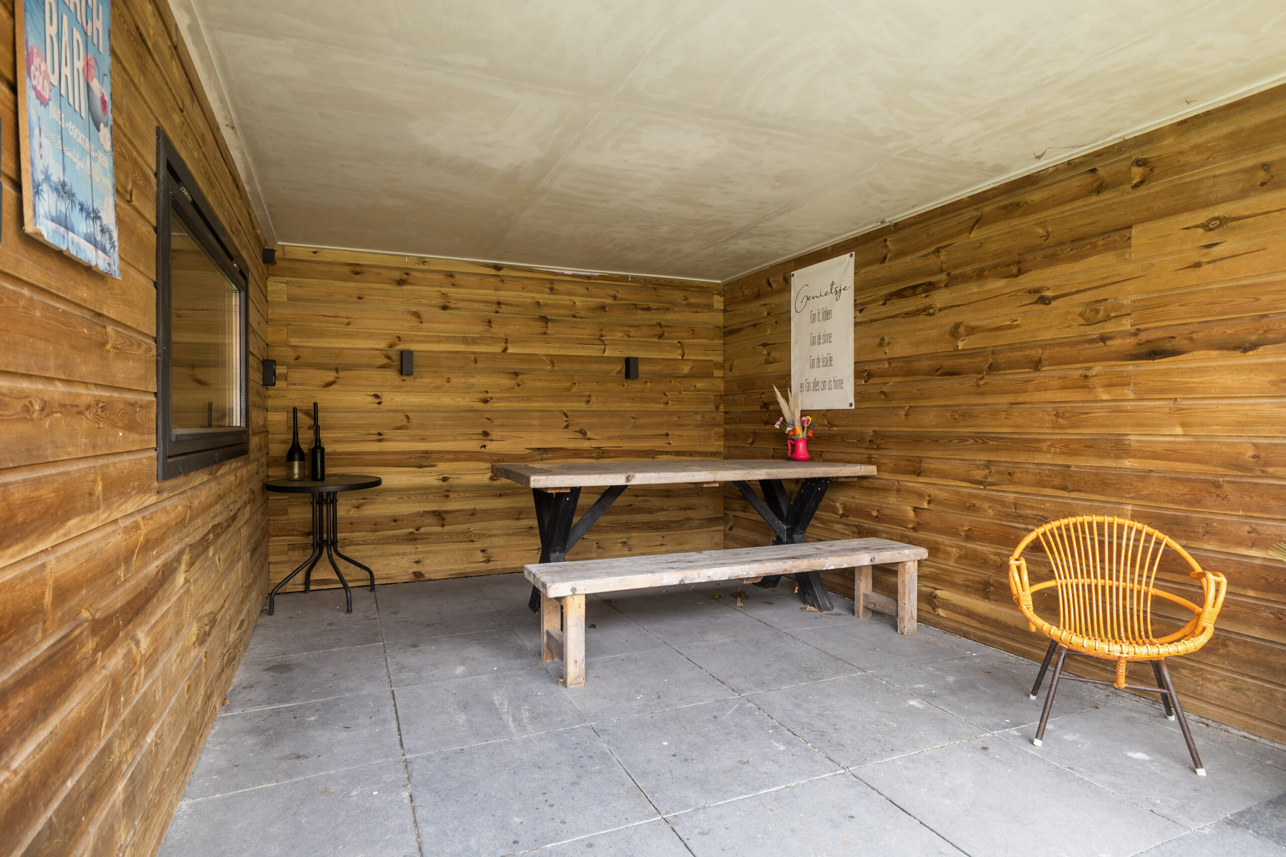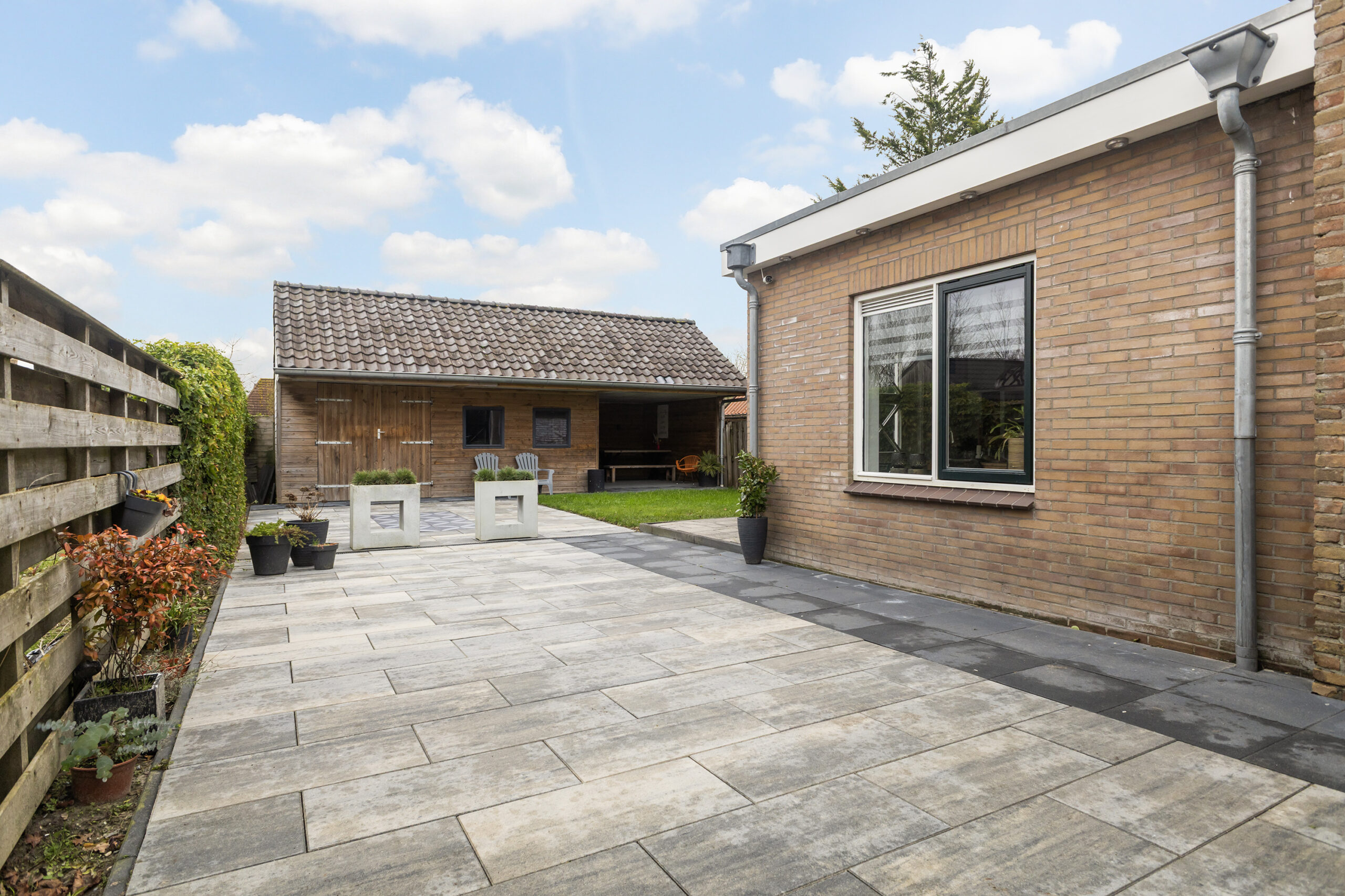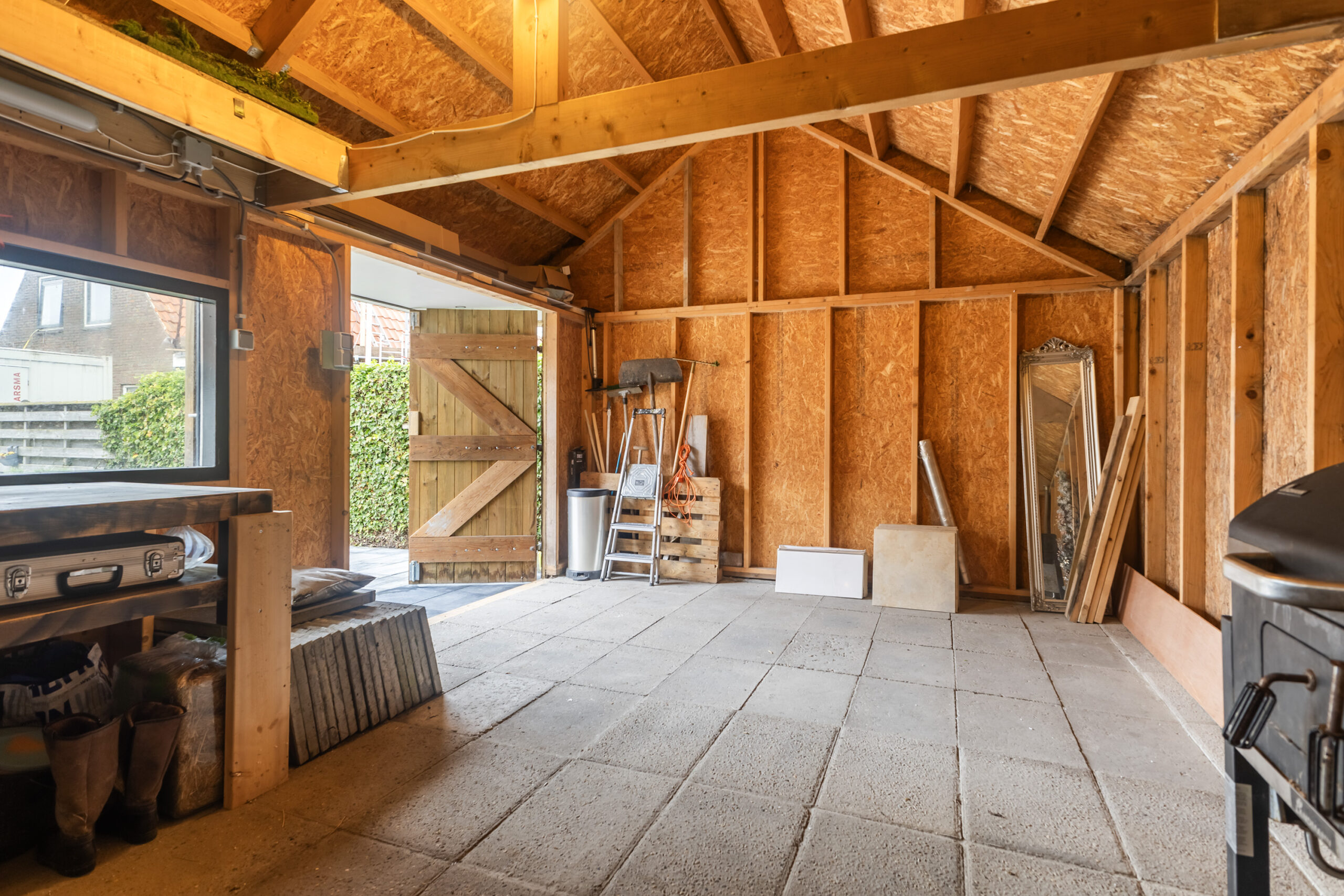De diepe en onderhoudsvriendelijke achtertuin biedt meerdere zitplekken, een fijn terras en een vrijstaande houten berging met overkapping. Dankzij de drainage blijft de tuin goed bruikbaar onder alle weersomstandigheden. Er is bovendien de mogelijkheid om een auto op eigen terrein te parkeren.