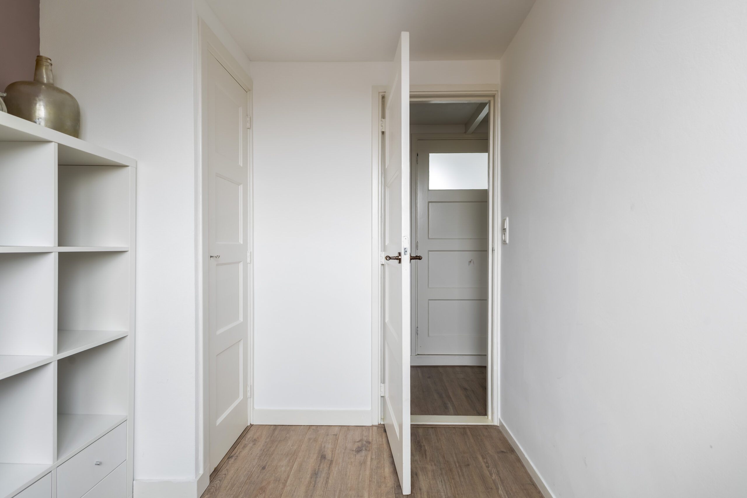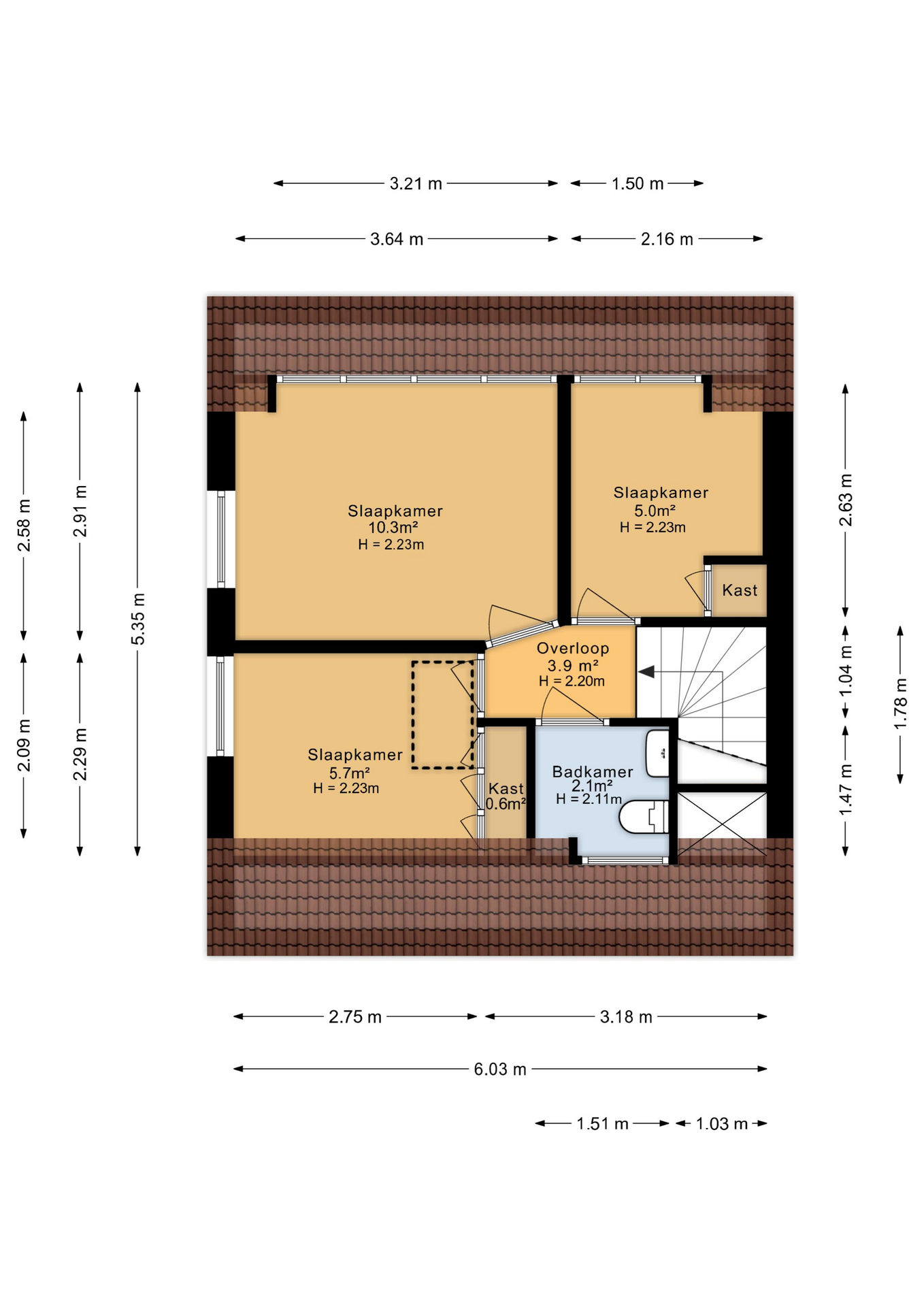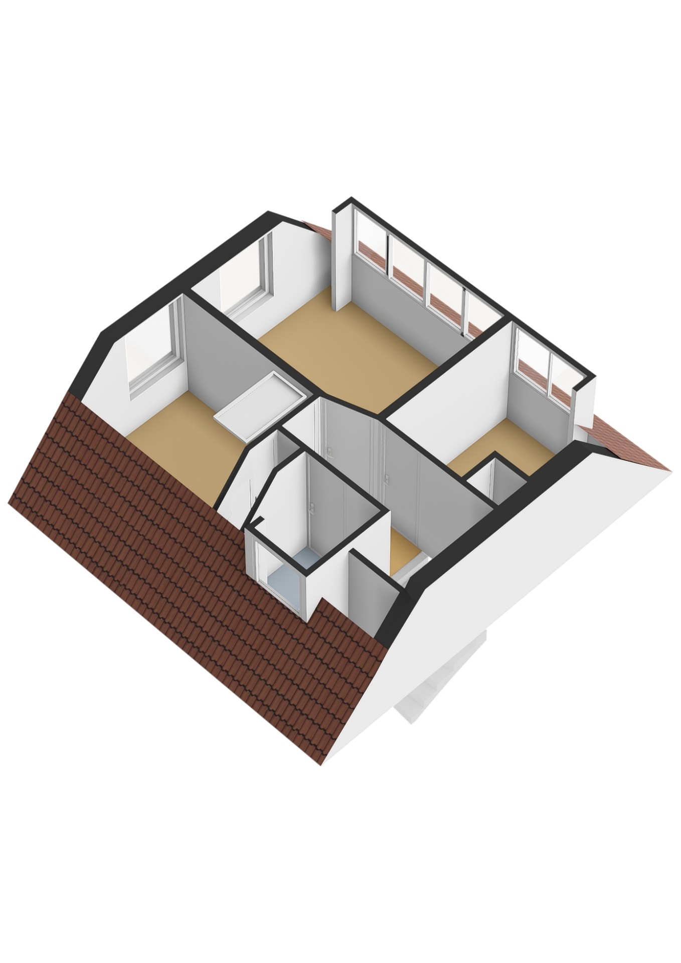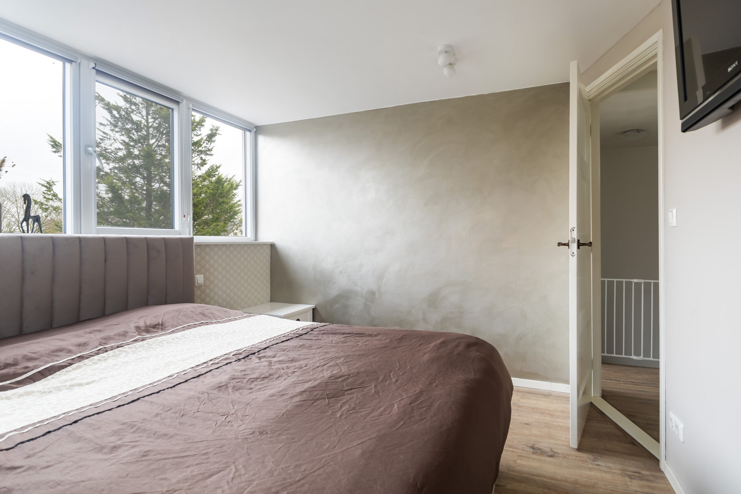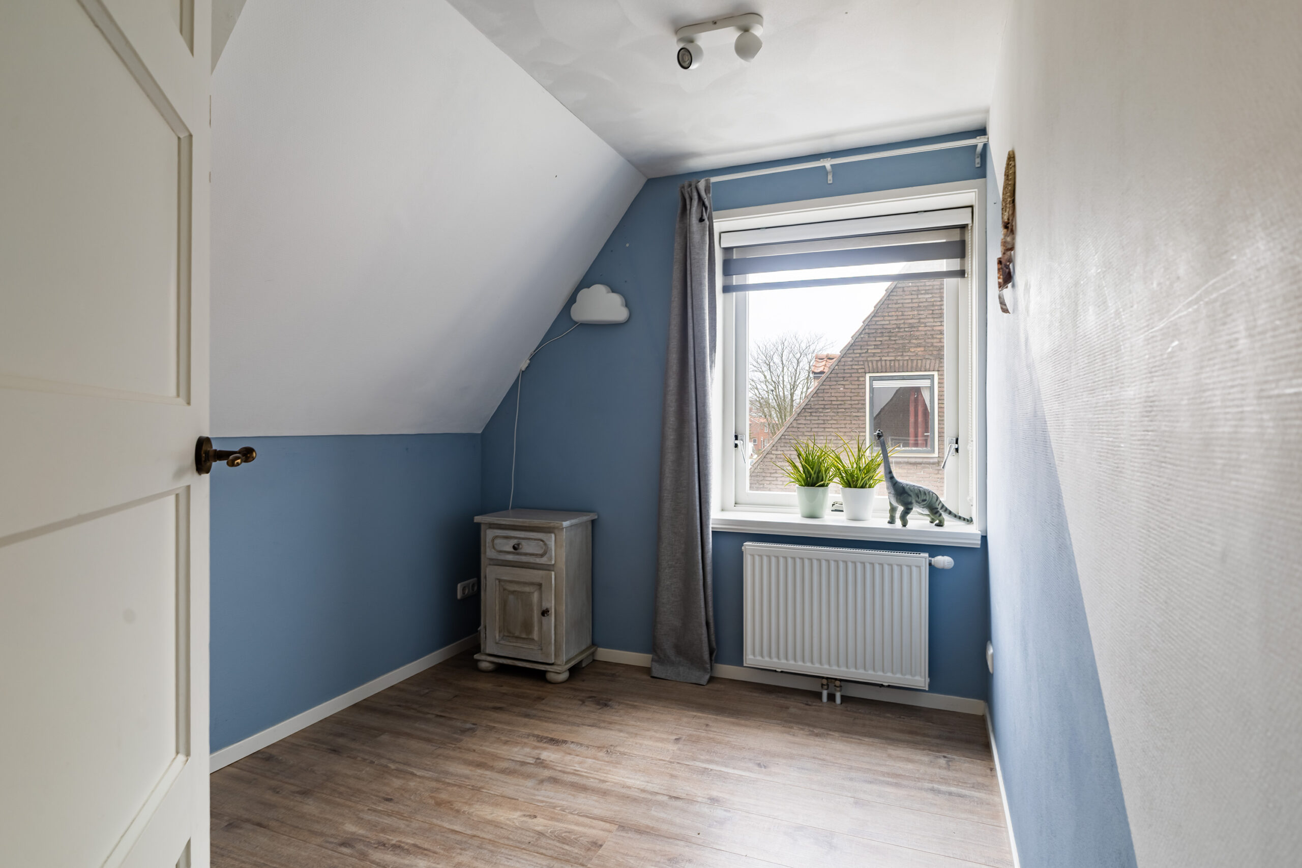 Vanaf de overloop heb je toegang tot de tweede badkamer, voorzien van een hangend toilet, wastafel en een dakkapel die voor extra licht zorgt. Op deze verdieping bevinden zich drie comfortabele slaapkamers. Twee slaapkamers beschikken over een dakkapel, wat een mooie lichtinval en extra ruimte geeft. De derde slaapkamer is uitgerust met een praktische inbouwkast en biedt bovendien toegang tot de vliering.