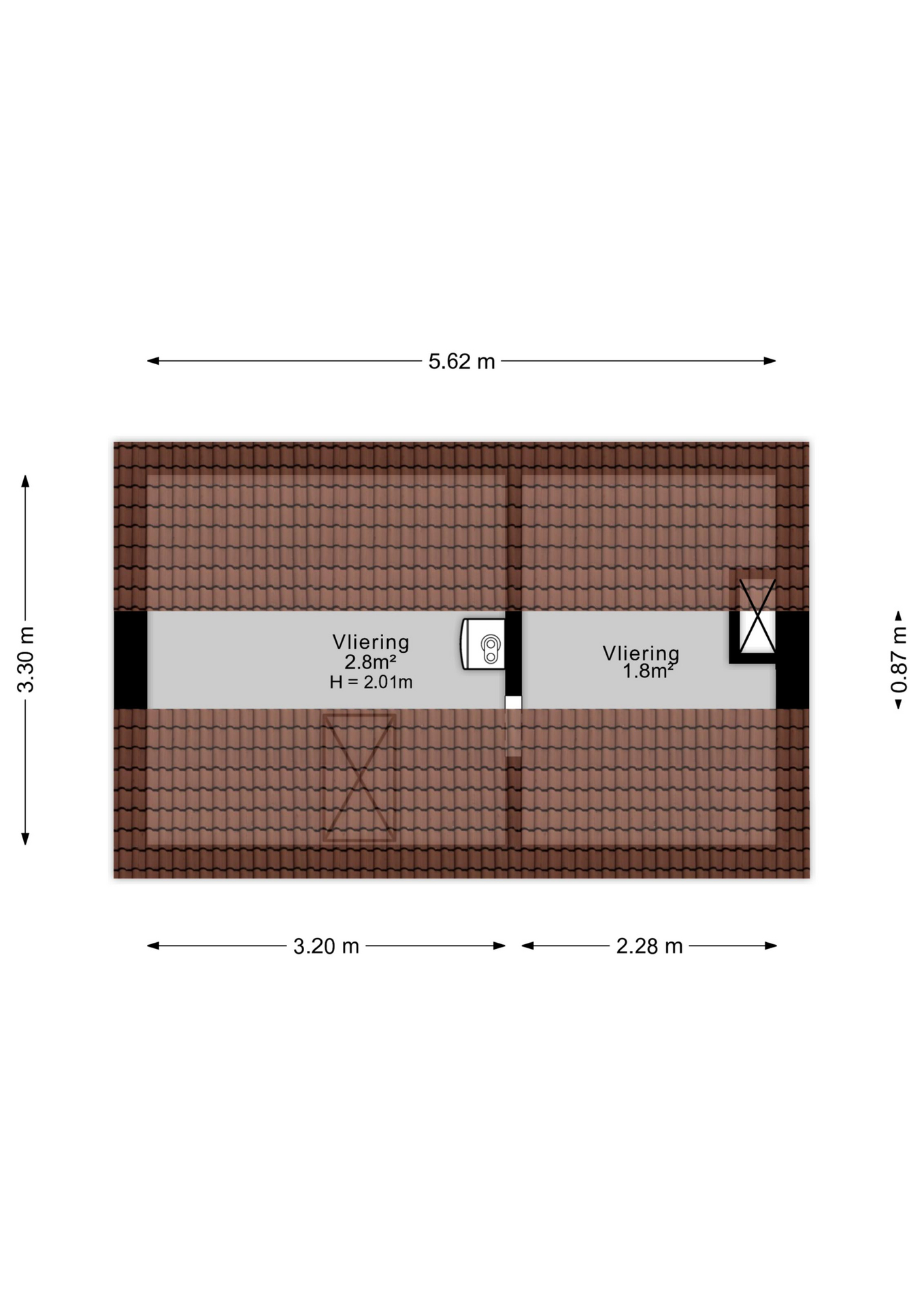 Handige vliering, bereikbaar vanuit de slaapkamer, ideaal voor extra opbergruimte.