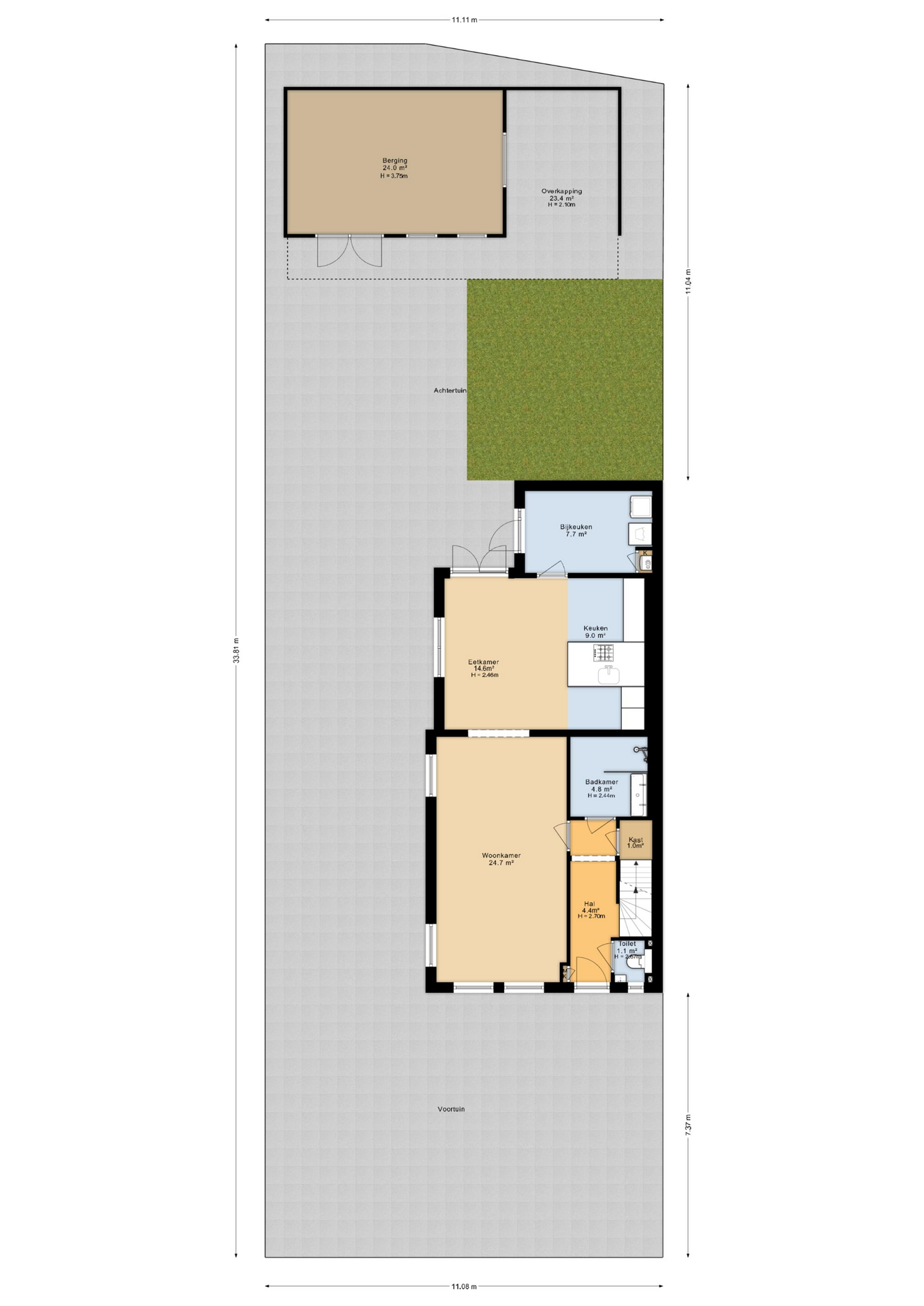 – ruime achtertuin met parkeermogelijkheid op eigen terrein.