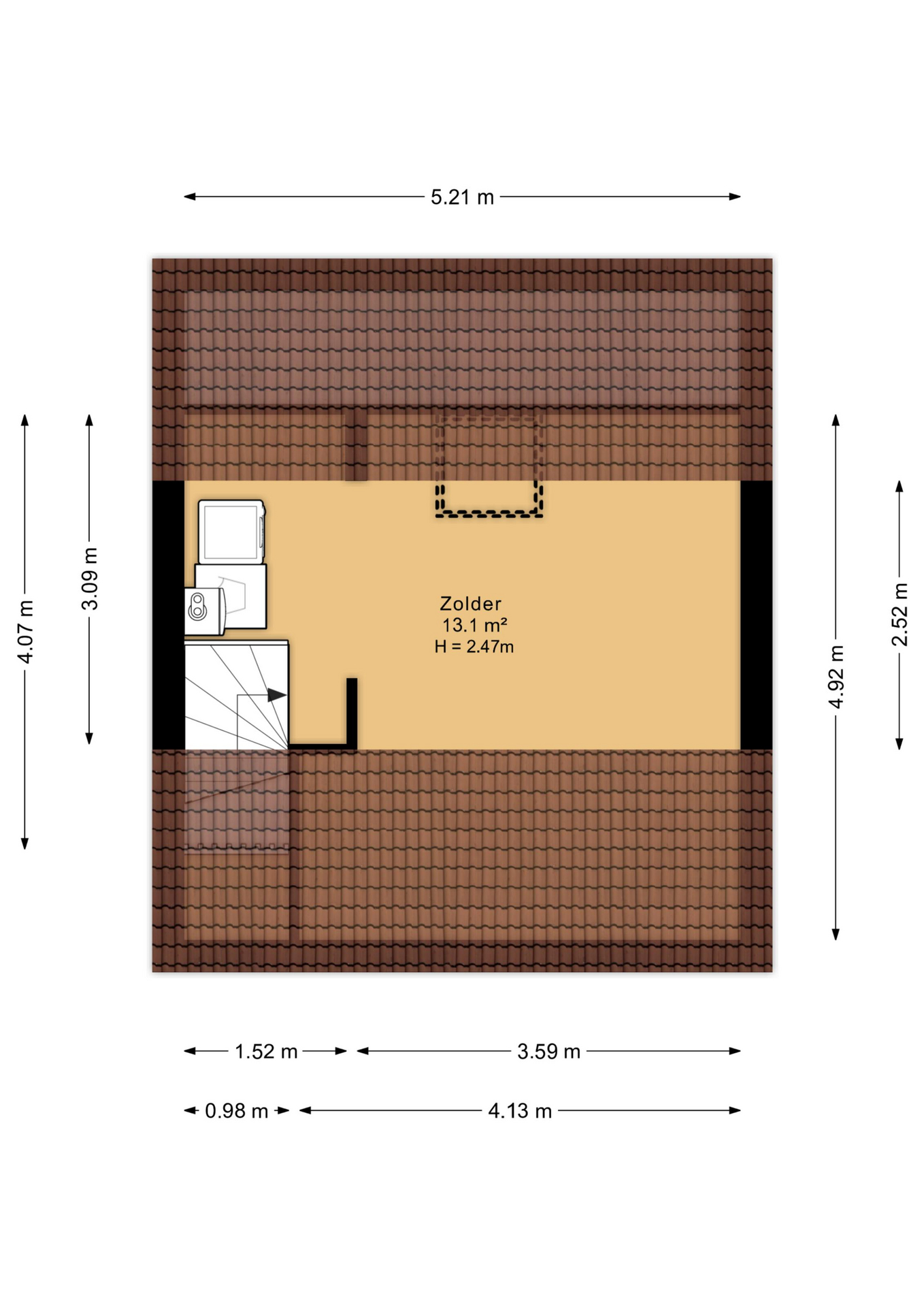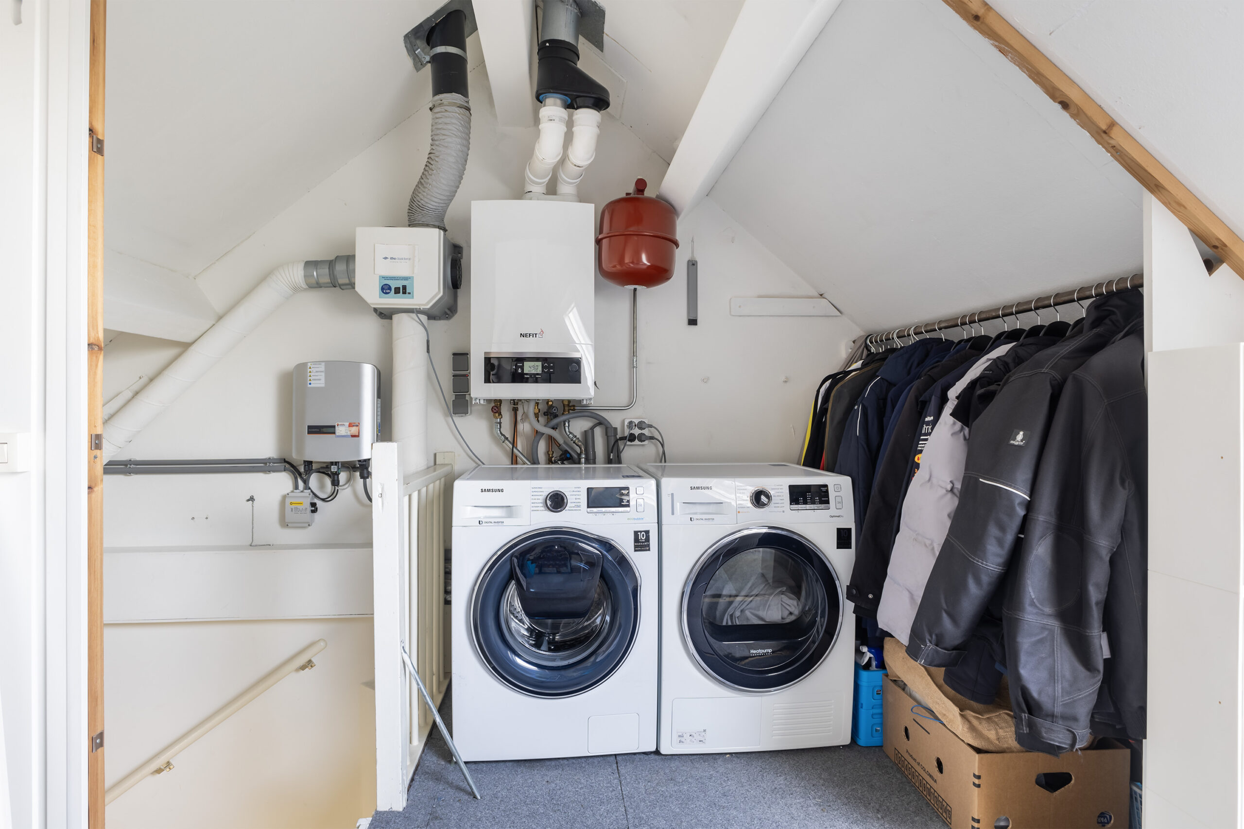 De zolder biedt volop mogelijkheden om in te delen zoals je zelf wilt, en is ook waar je de opstelplaats voor de cv-ketel vindt en de omvormer van de zonnepanelen. Tevens vind je hier de witgoedaansluitingen.