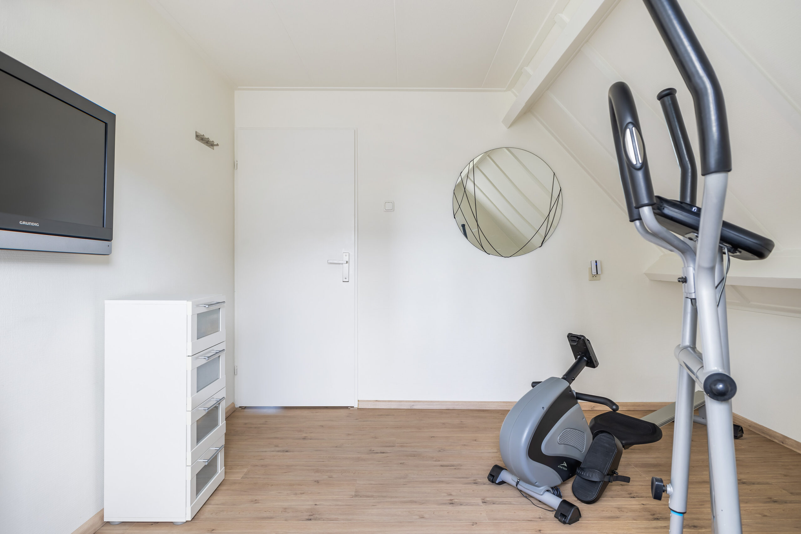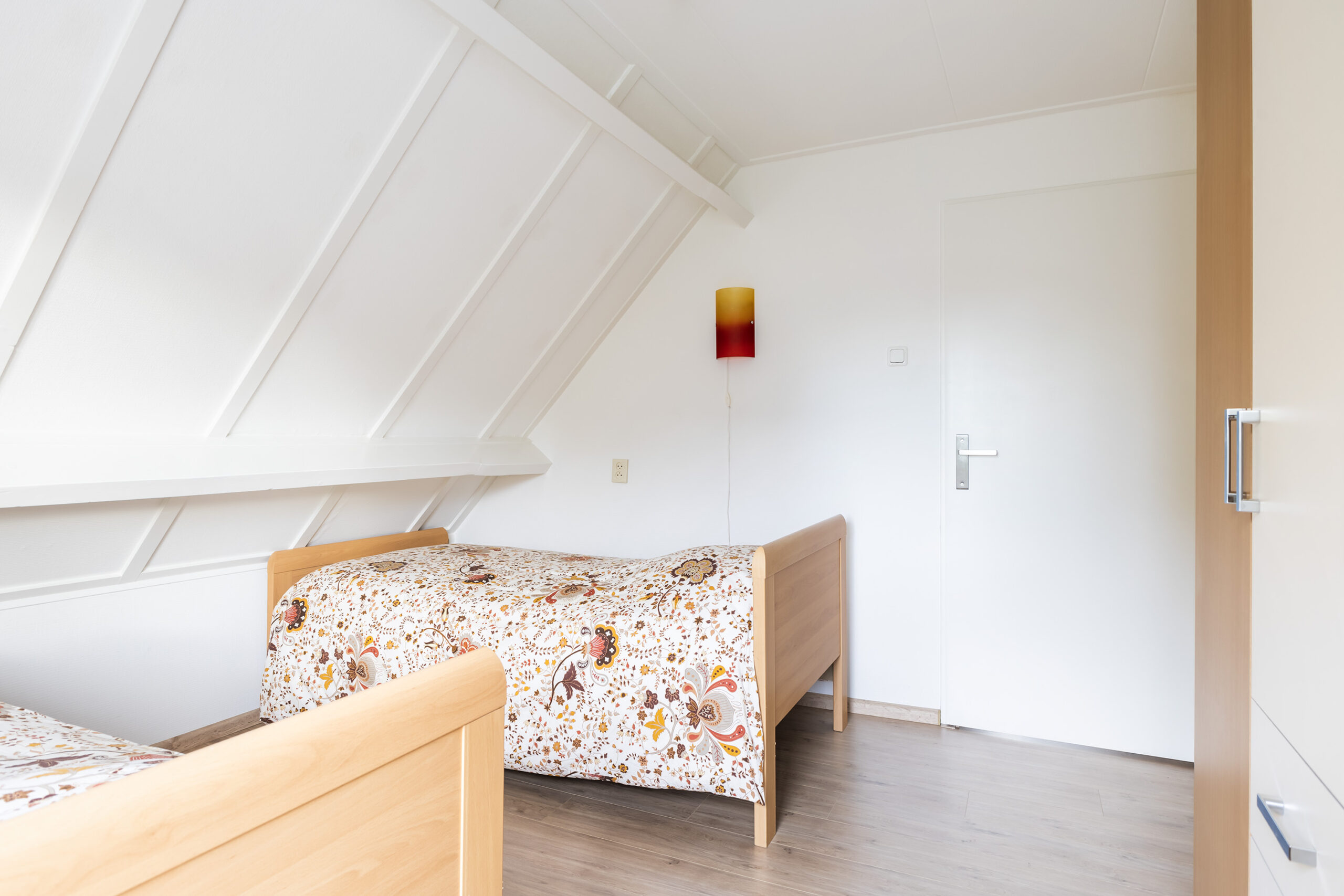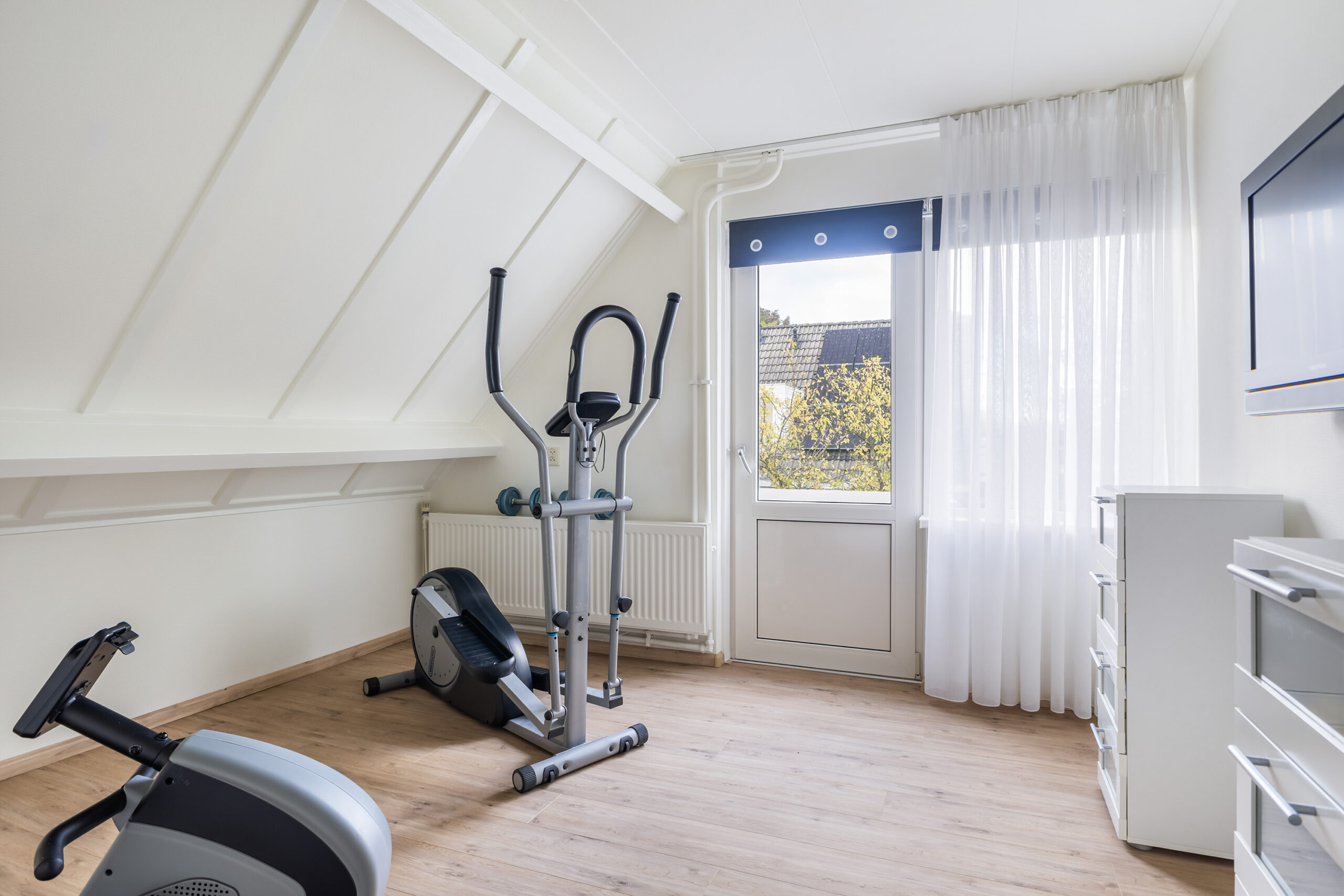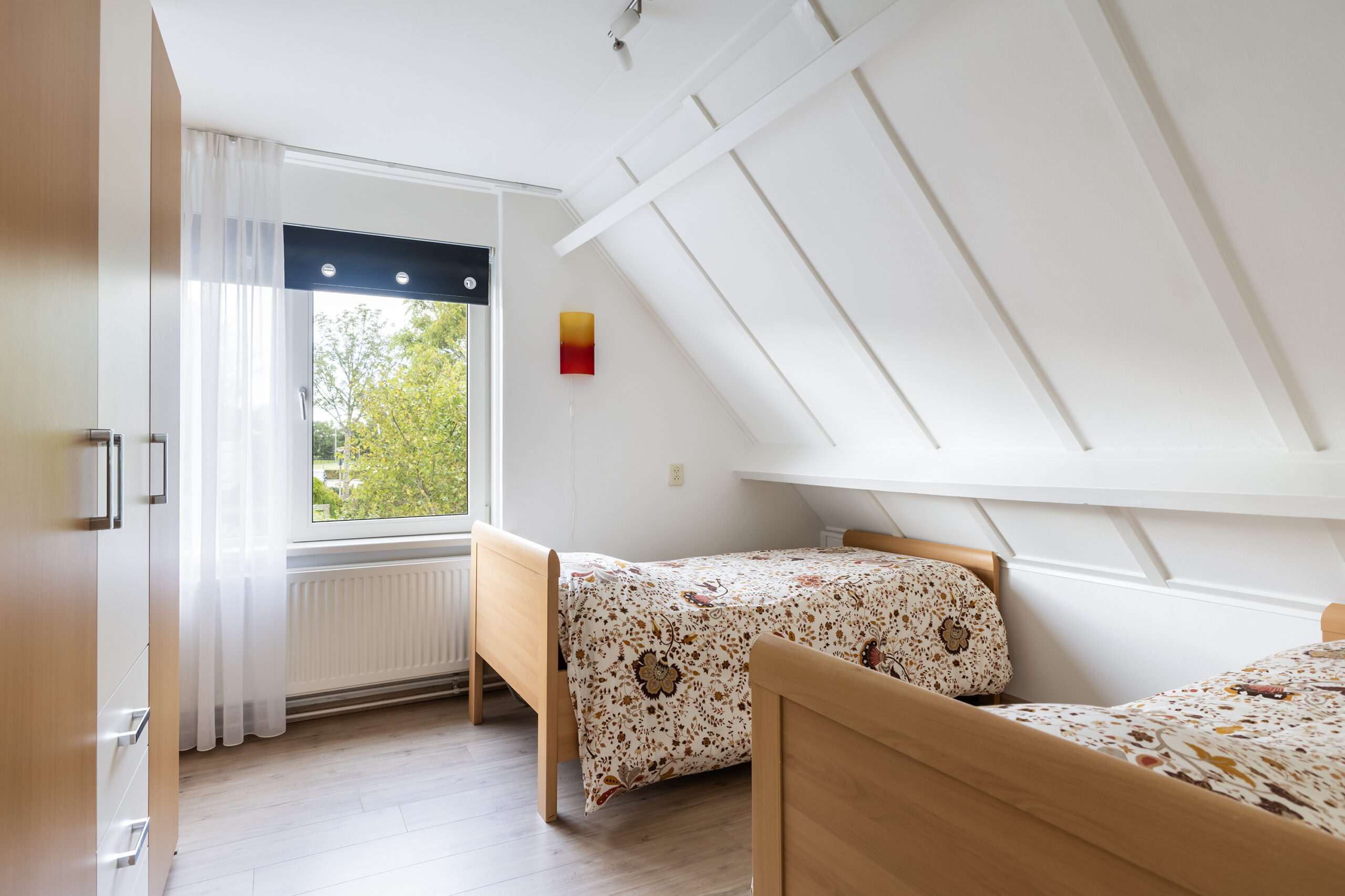Via de vaste trap kom je op een royale overloop met vide. Vanaf de overloop zijn maar liefst vier ruime slaapkamers bereikbaar, allemaal verwarmd met radiatoren. Eén van de slaapkamers beschikt over een loopdeur naar het platte dak – handig voor extra ventilatie en licht. De moderne en royale badkamer is voorzien van een dakkapel voor extra ruimte en daglicht. Hier vind je alle comfort: een ligbad, inloopdouche, hangend toilet, dubbele wastafelmeubel en een designradiator. Via de overloop bereik je met een vlizotrap de bergzolder, ideaal voor het opbergen van seizoensspullen of andere zaken die je uit het zicht wilt houden.
