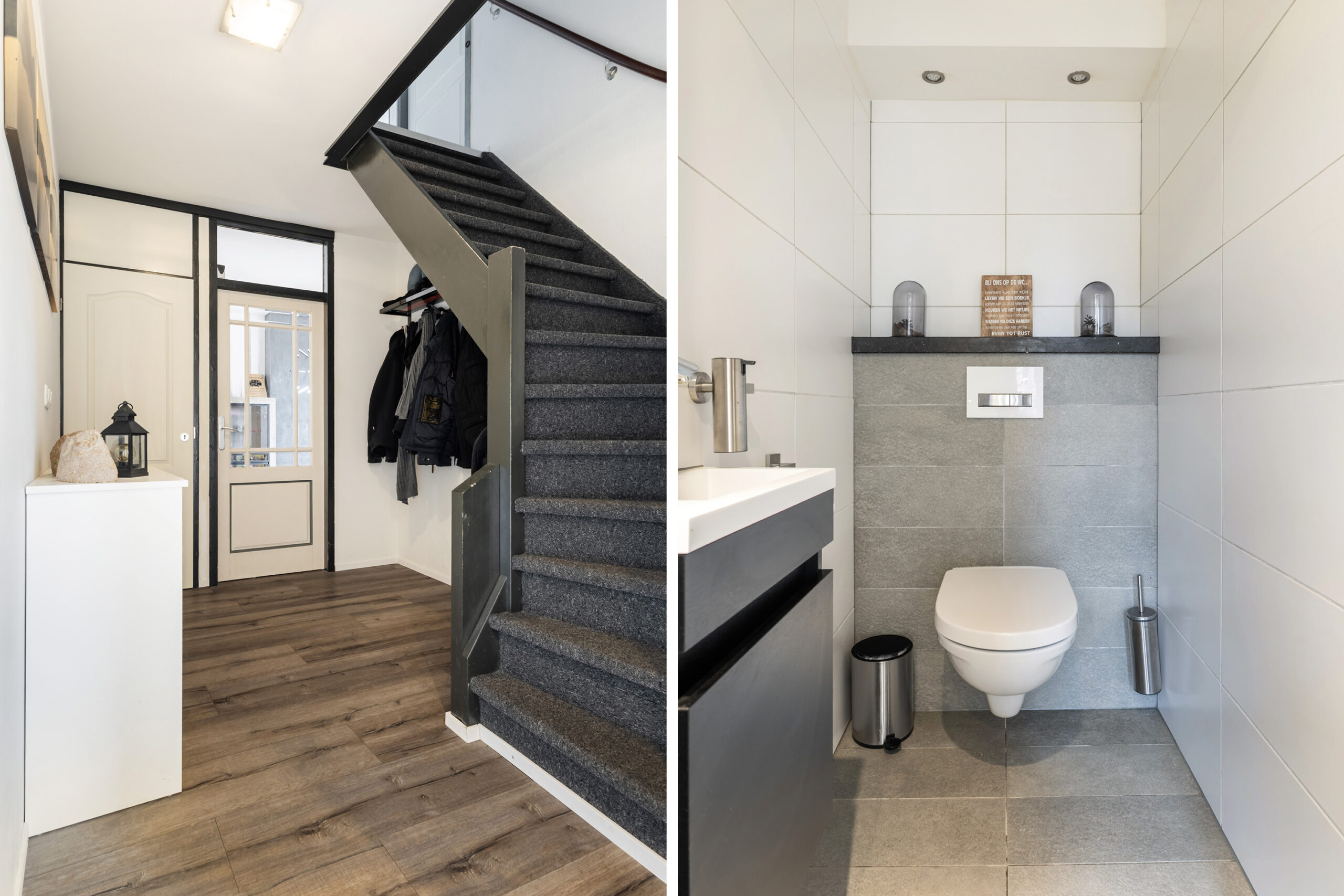 Welkom in deze verzorgde en verrassend ruime woning waar comfort en functionaliteit perfect samenkomen. Met een moderne open keuken, drie slaapkamers, een complete badkamer en een fraai aangelegde tuin met overkapping is dit een huis waar je je direct thuis zult voelen. Een instapklare woning op een fijne plek. Indeling: Begane grond: Via de entreehal met meterkast, trapopgang en sfeervolle inbouwspotjes betreed je de woning. De toiletruimte is modern uitgevoerd met een hangend toilet, wastafelmeubel, mechanische ventilatie en spotverlichting. De woonkamer is licht en strak afgewerkt en voorzien van spotjes langs de wanden, wat zorgt voor een prettige sfeer. De open keuken is compleet uitgerust met een 4-pits inductiekookplaat, afzuigkap, combimagnetron, koelkast, vriezer, vaatwasser (op hoogte), ingebouwd koffiezetapparaat, veel kastruimte en een praktische draaicarrousel. Ook hier zijn spotjes aanwezig en via de deur heb je direct toegang tot de achtertuin. Aansluitend bevindt zich de bijkeuken met spotverlichting, vaste kastenwanden waarin de wasmachine en droger op comfortabele werkhoogte zijn geplaatst en een praktische gootsteen. Vanuit de bijkeuken is er toegang tot…