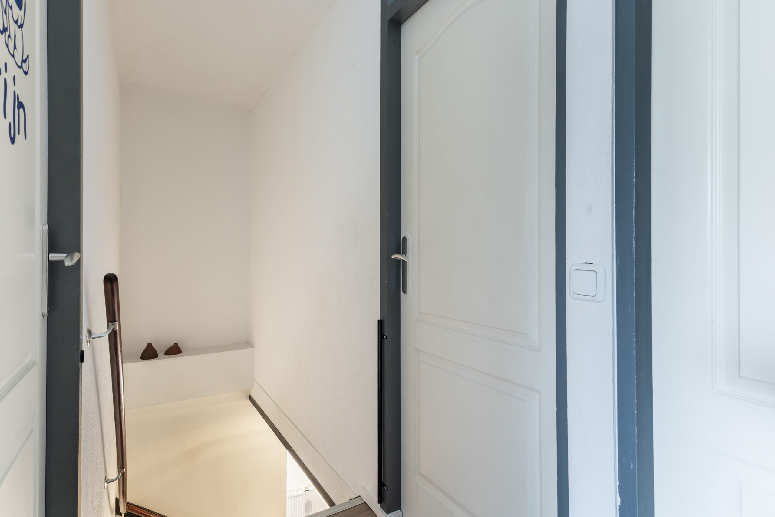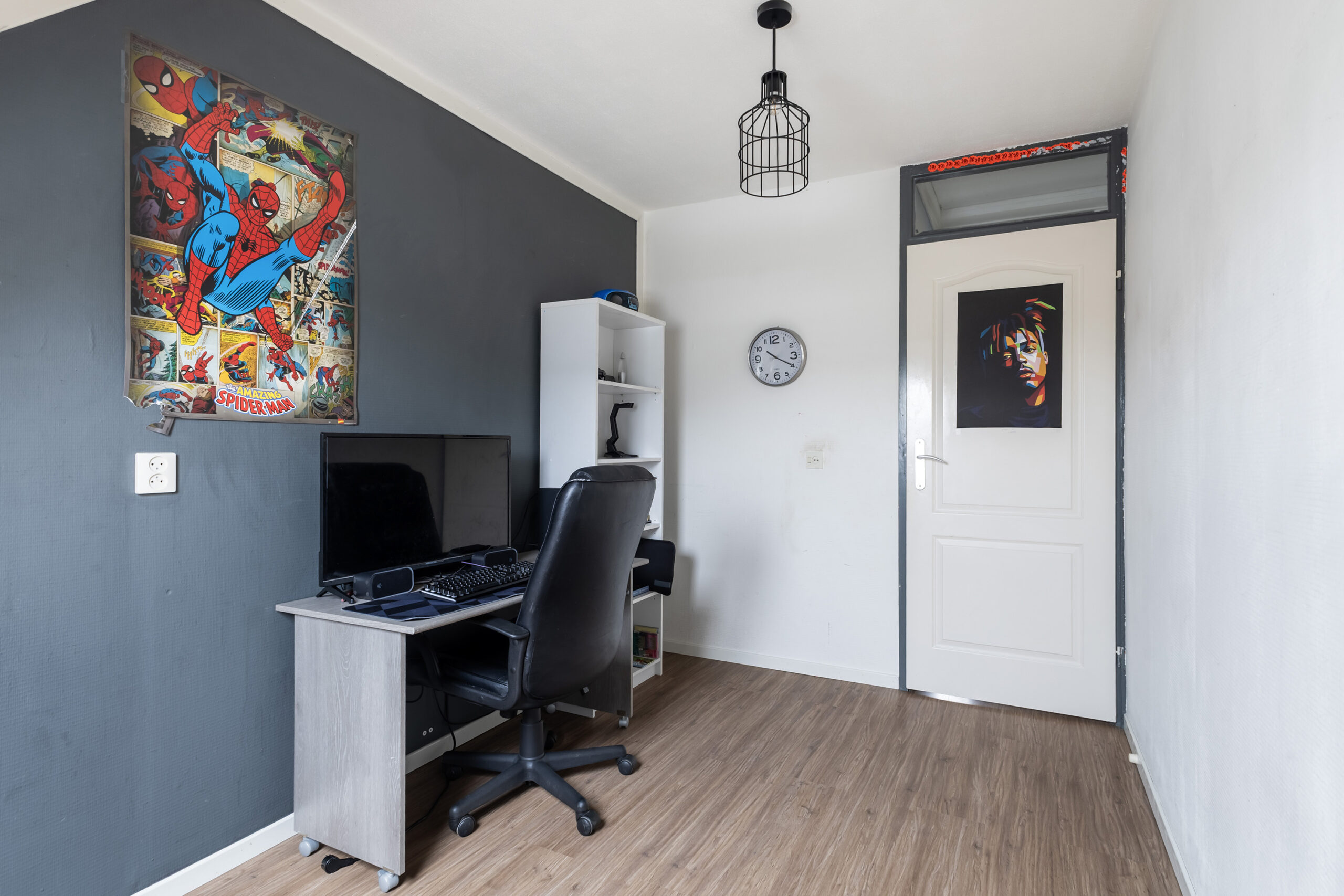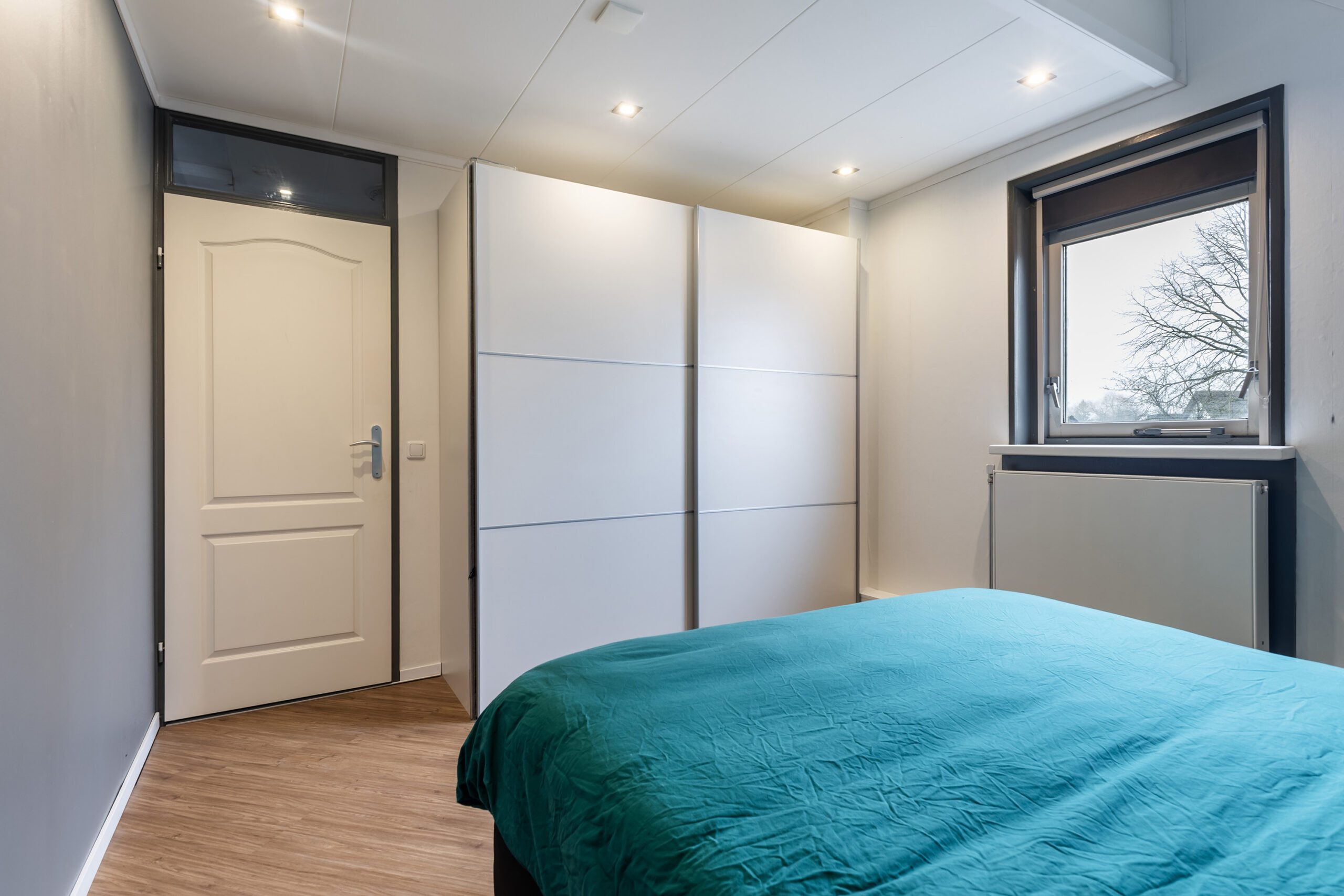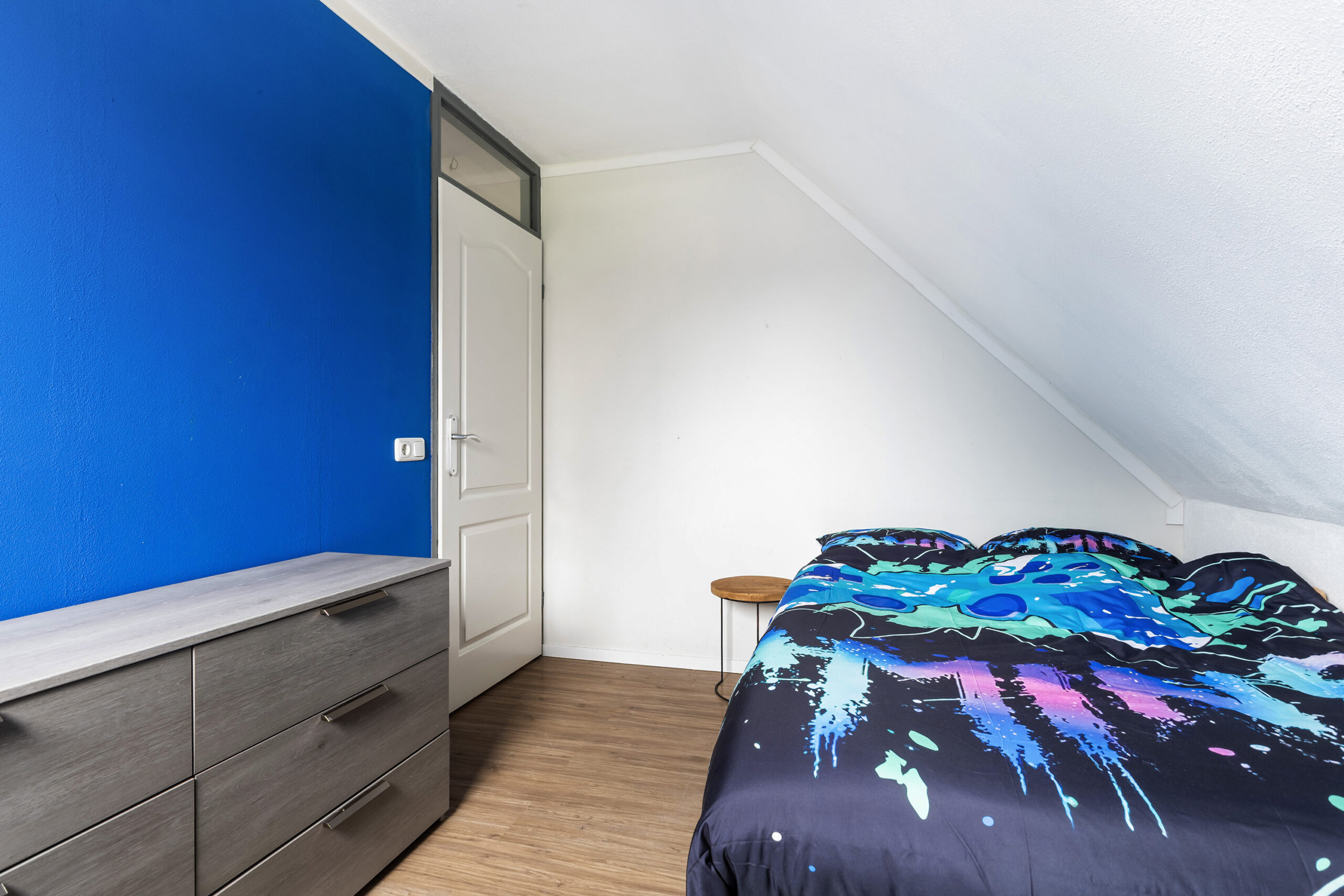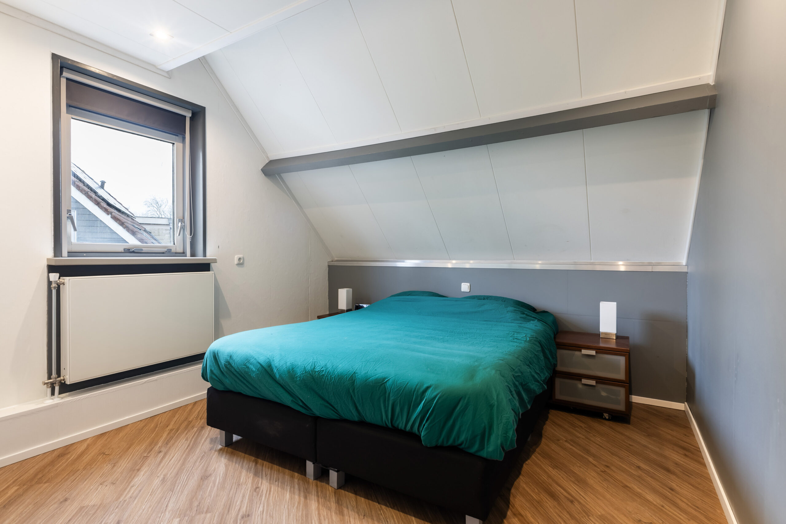 De overloop biedt toegang tot de zolder en drie slaapkamers. Twee slaapkamers hebben een gevelraam en de derde slaapkamer heeft een dakraam. De badkamer is compleet en modern uitgevoerd met een douchecabine, wastafelmeubel, spiegel met verlichting, hangend toilet, designradiator, dakraam en inbouwspotjes.