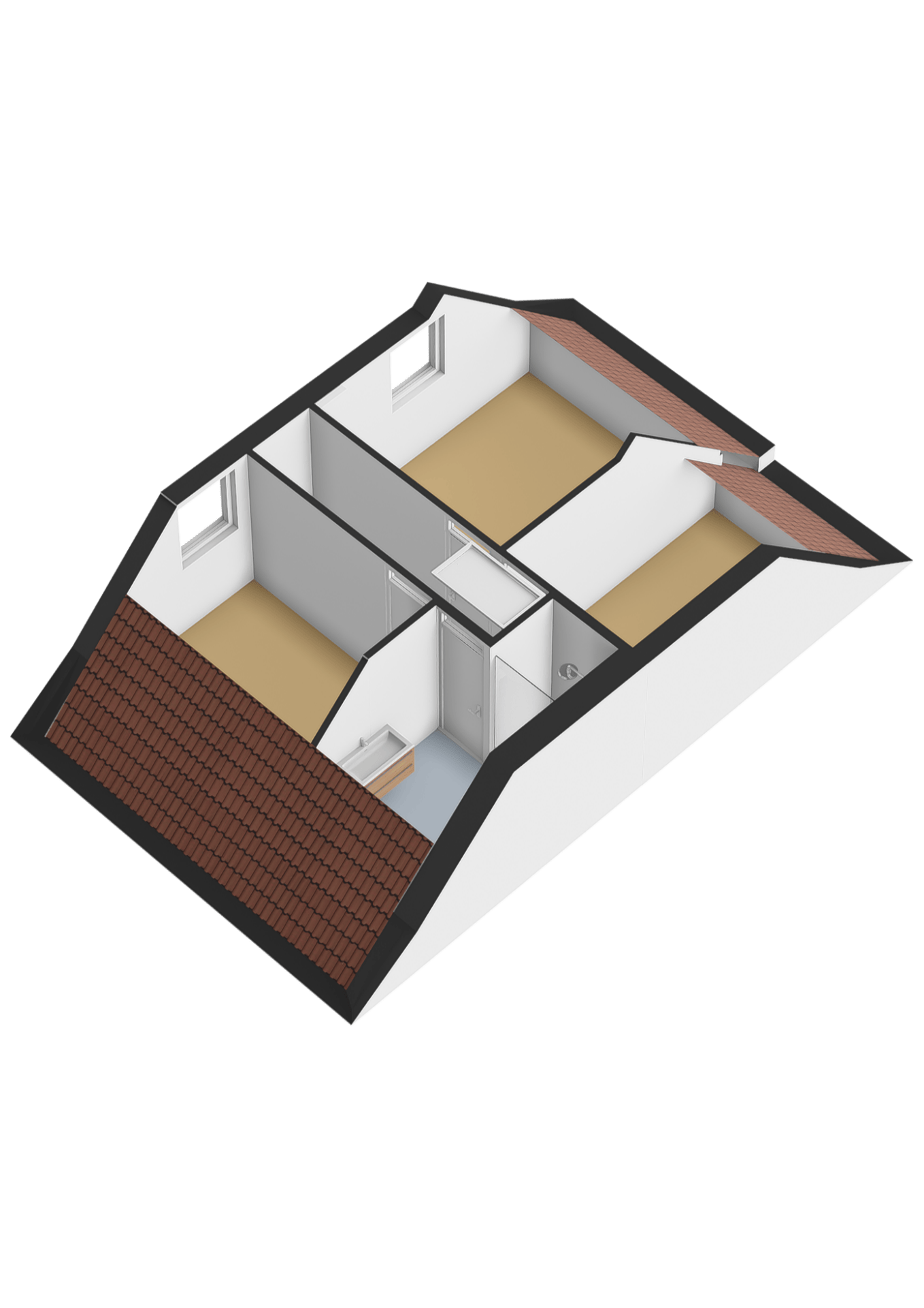 De tweede verdieping bestaat uit een praktische ruime bergzolder met dakraam, ideaal voor extra opslagruimte.