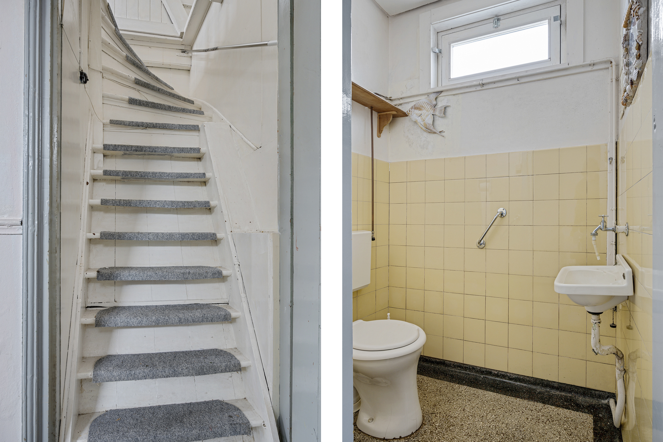 Via de entreehal met stoppenkast bereik je de centrale hal, die toegang biedt tot de verschillende vertrekken en naar de eerste verdieping. De badkamer is uitgerust met een wastafelmeubel en een zitbad met douche. Daarnaast is er een aparte toiletruimte met staand toilet en fonteintje. De gezellige woonkamer beschikt over een gashaard met schouw en een praktische inbouwkast. De aangrenzende keuken is voorzien van inbouwapparatuur, waaronder een 4-pits gasstel, en beschikt over een wasmachineaansluiting, geiser en elektrische radiator. Op de begane grond bevindt zich tevens een slaapkamer met inbouwkast en elektrische radiator.