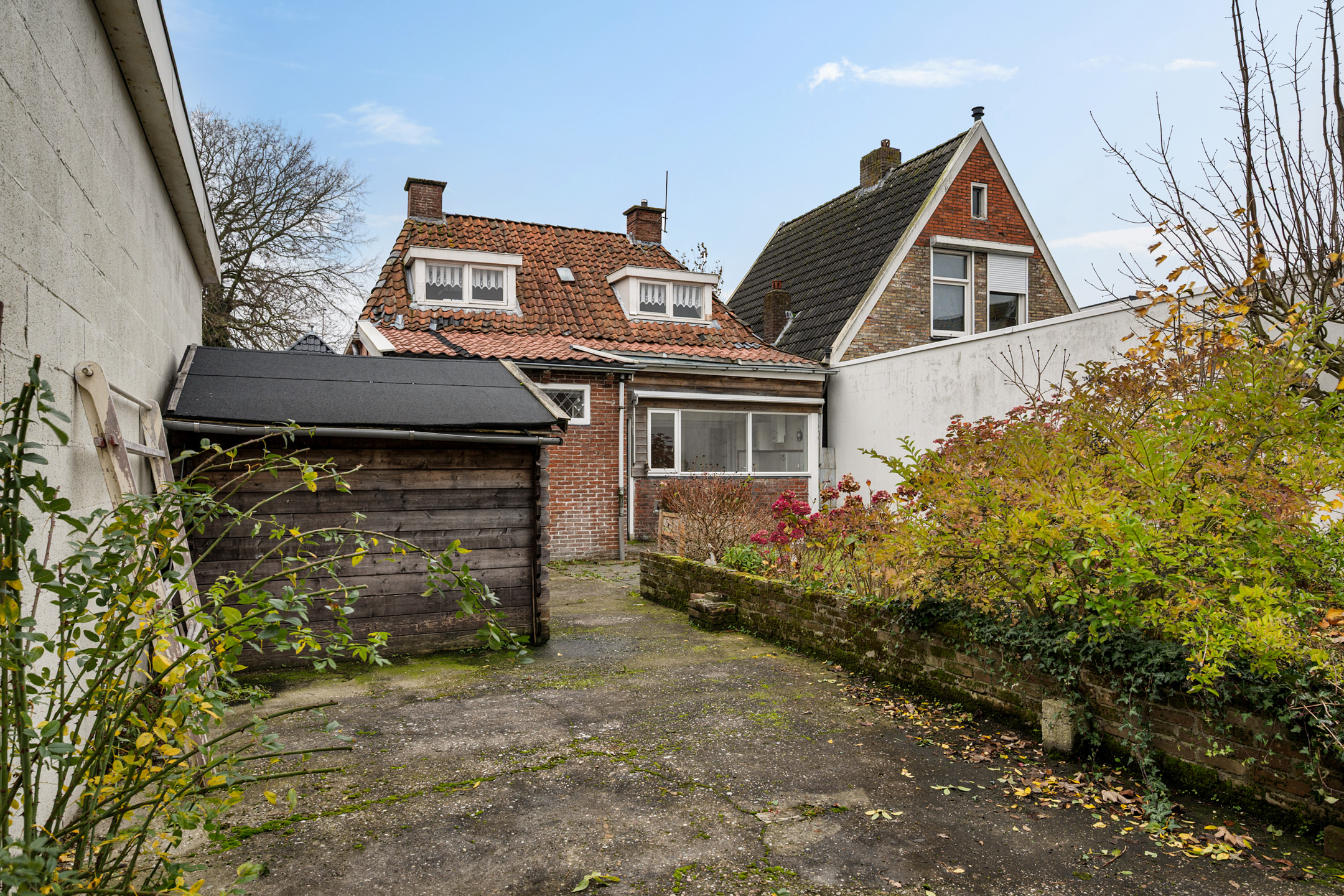 De ruime achtertuin biedt volop mogelijkheden voor tuinliefhebbers en beschikt over een achterom en een vrijstaande houten berging.
